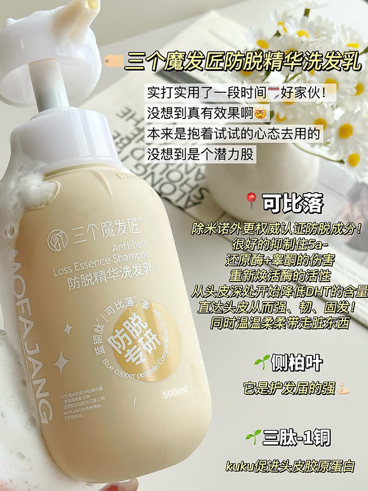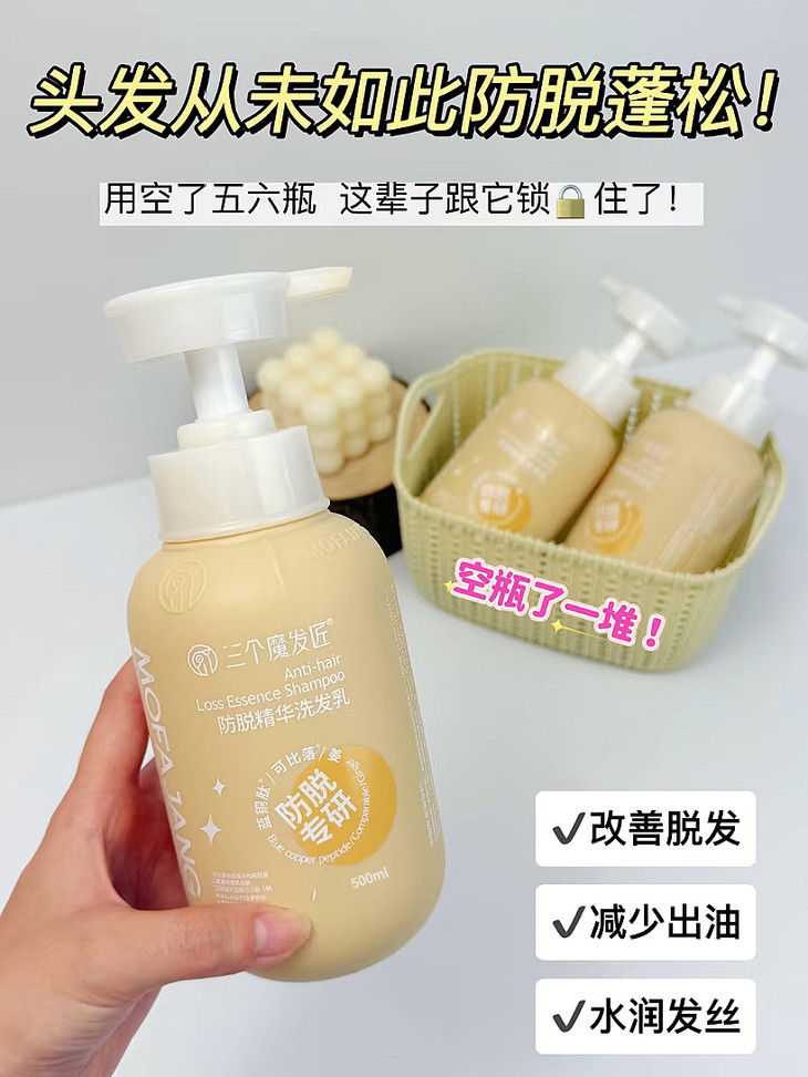 【三个魔发匠】防脱洗发水,简直是黑科技防脱王炸💥 ✅可比落:精准狙击脱发!给毛囊注入活力,实测掉发量真的会减少 ✅三肽 - 1 铜:给发根上「加固锁」!强韧发丝,扎高马尾也不怕扯断