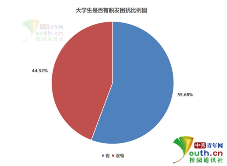 我们当代年轻人,现在不是在保工作的路上就是在保头发! 如今各大网络上都能看到很多年轻人发出的的脱发难题🤷🏻学生党也不能幸免,尽管他们年轻 每天洗头的时候头发一抓一大把的掉🤦🏻 中国青年网校园通讯社对全国643所高校的大学生进行问卷调查,55.68%的大学生有脱发困扰 特别是在临近期末,脱发现象会更严重 有专家说明,精神压力大、熬夜,长此以往都会导致我们脱发。 但是现在不论是上班族还是学生党 熬夜加班、熬夜赶作业、论文......熬夜好像成了常态