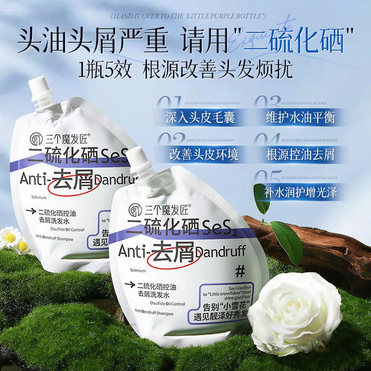 【三个魔发匠二硫化硒控油去屑洗发水 (180ml补充装)
