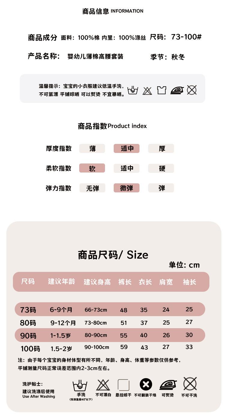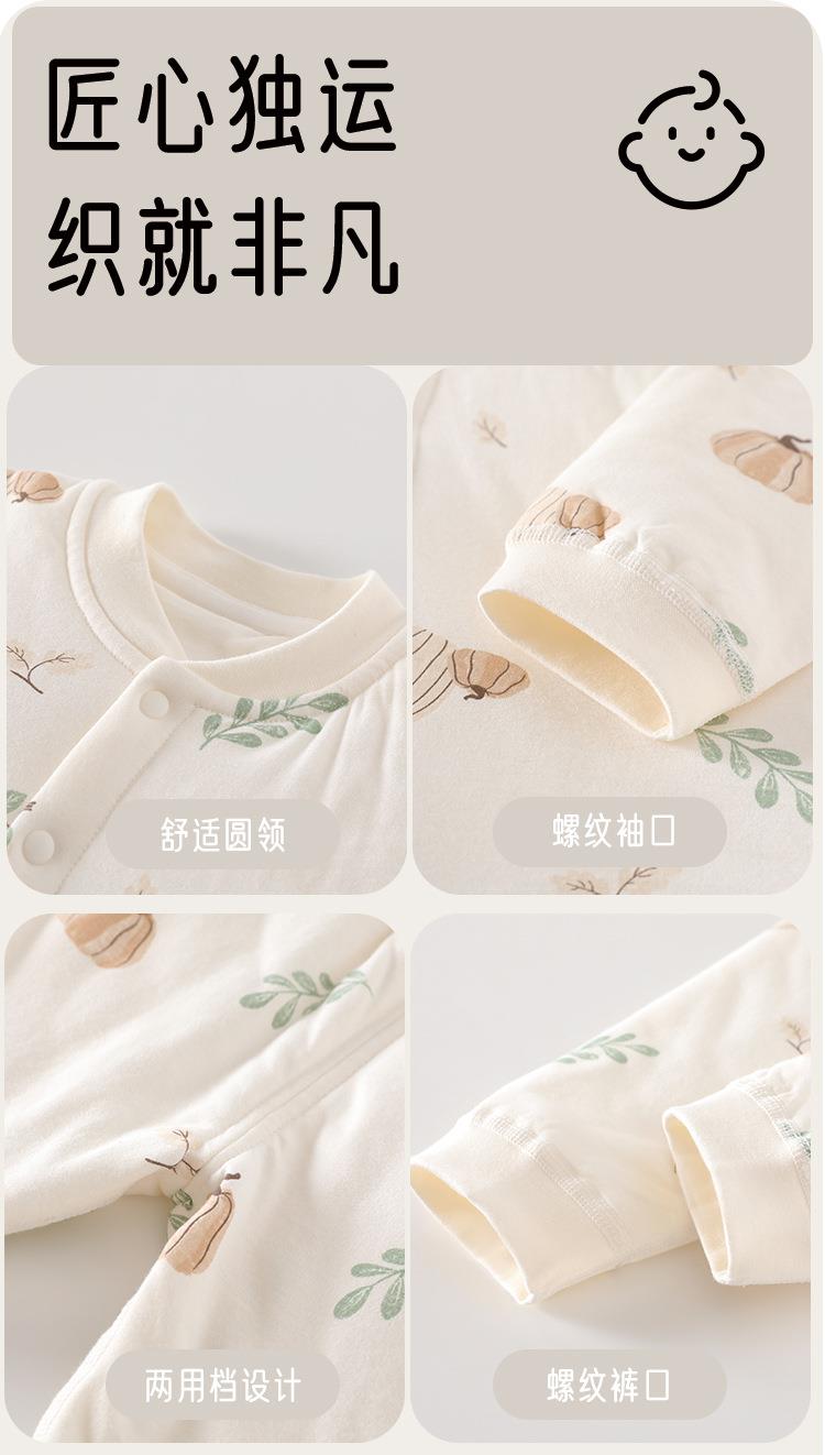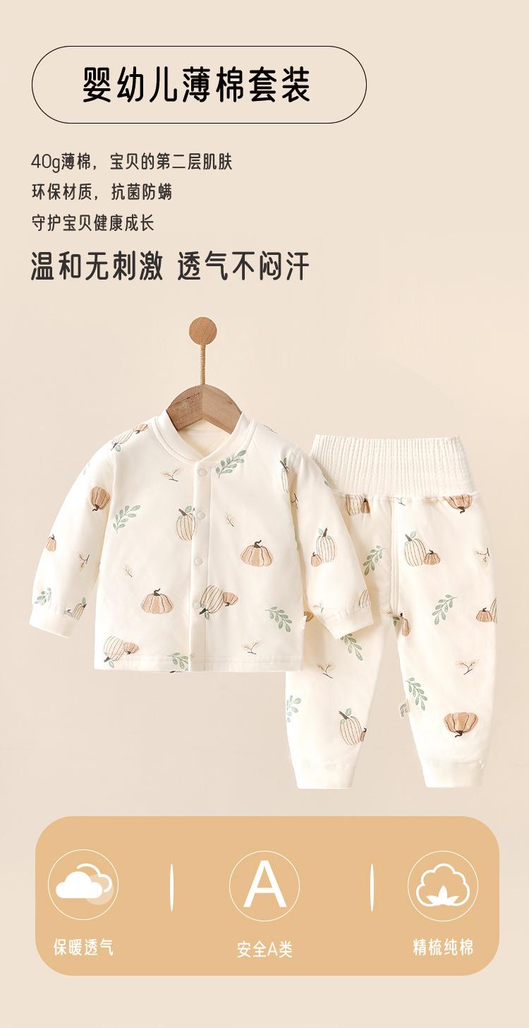 婴幼儿薄棉套装宝宝纯棉无骨分体二件套家居衣服保暖高腰秋衣秋裤