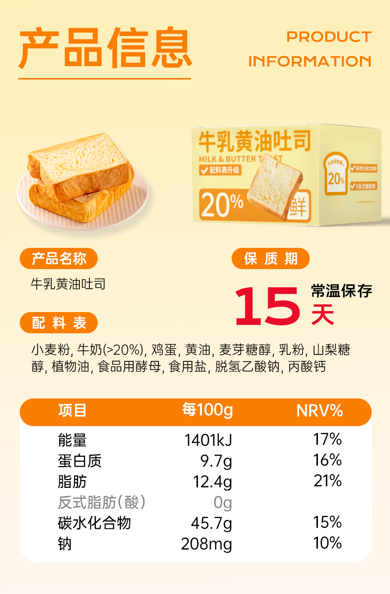 七年五季厚切牛乳黄油切片吐司面包整箱早餐三明治