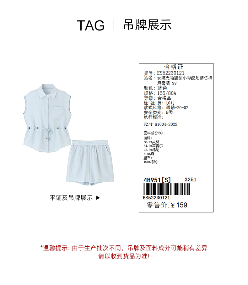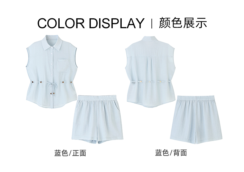 女装无袖翻领小衫配短裤仿棉麻套装-98S5223012