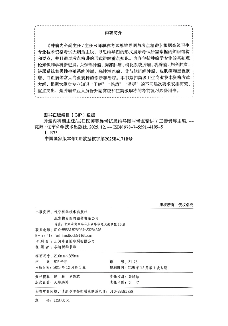 书名:肿瘤内科副主任主任医师职称考试