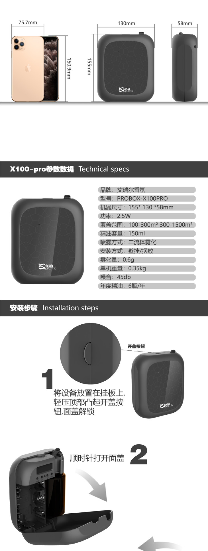艾瑞尔香氛 酒店香氛机扩香机楼层洗手间外置壁挂电池版香薰机精油