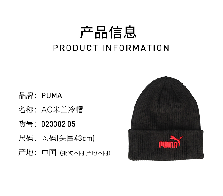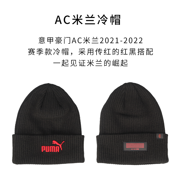 正品PUMA/彪马AC米兰足球运动休闲百搭绒线帽男023382-05