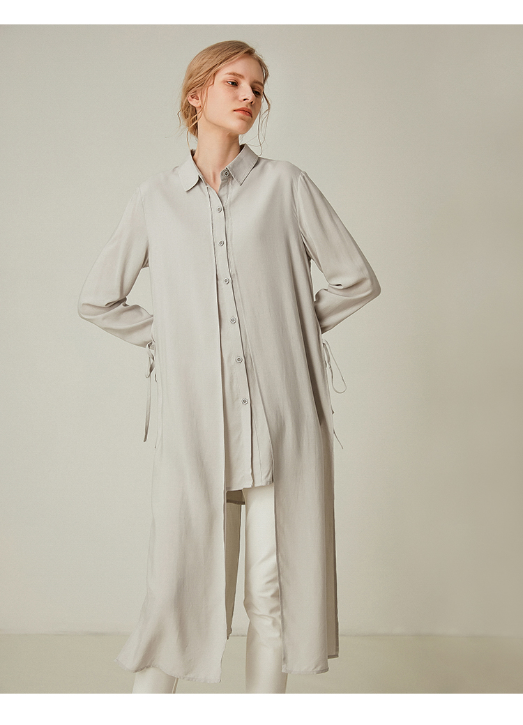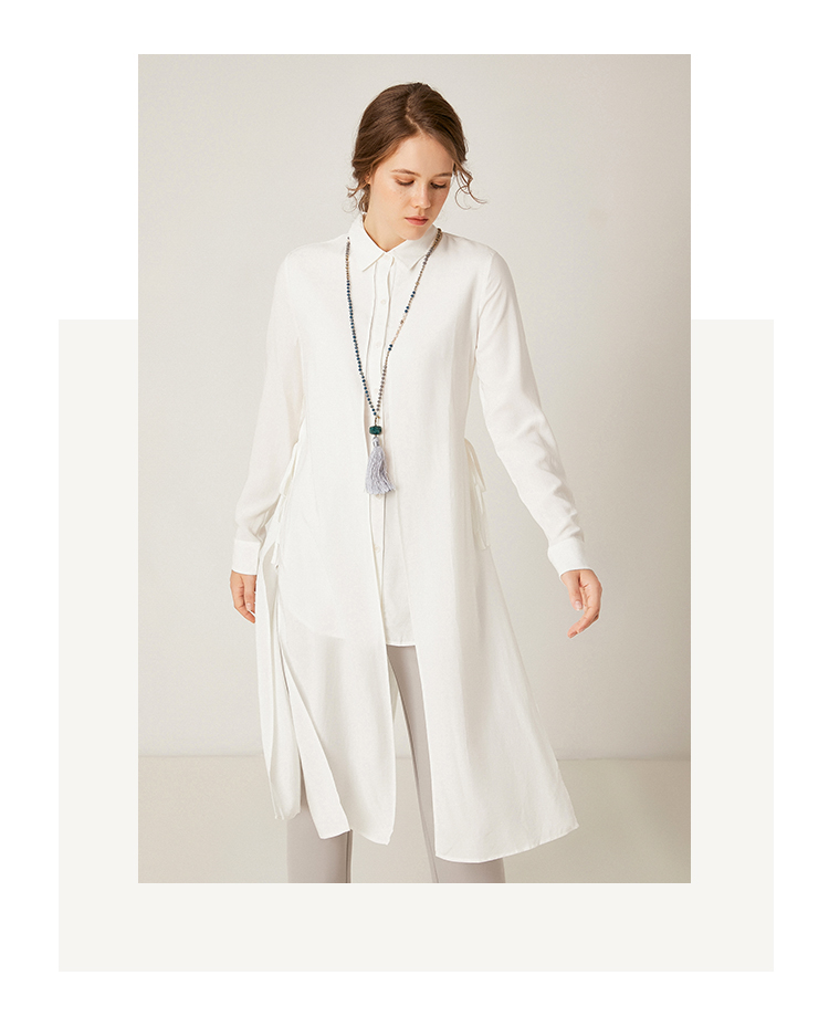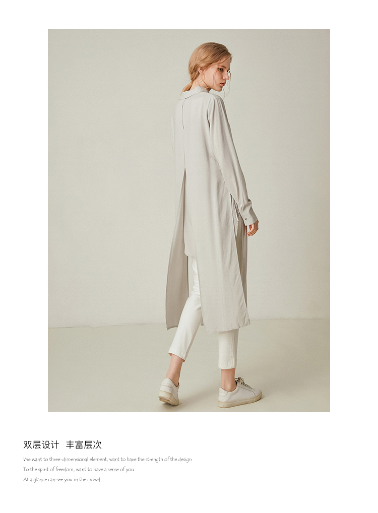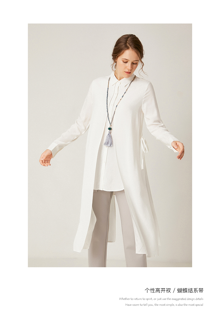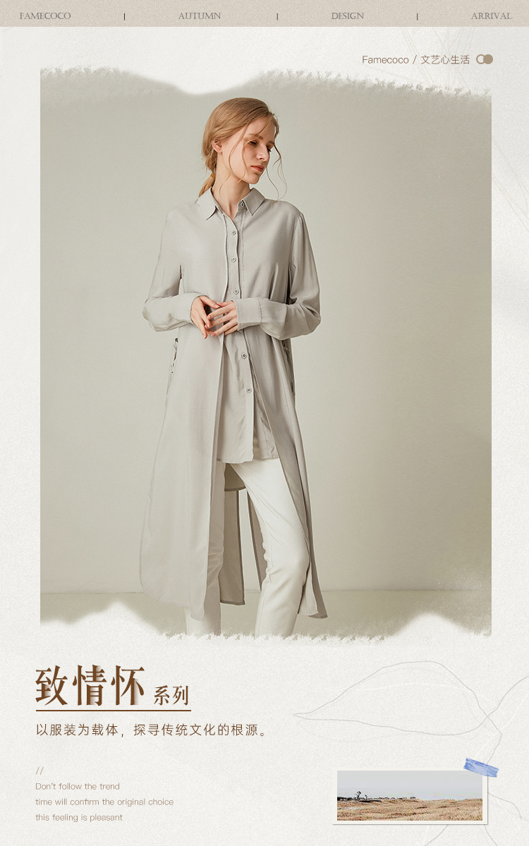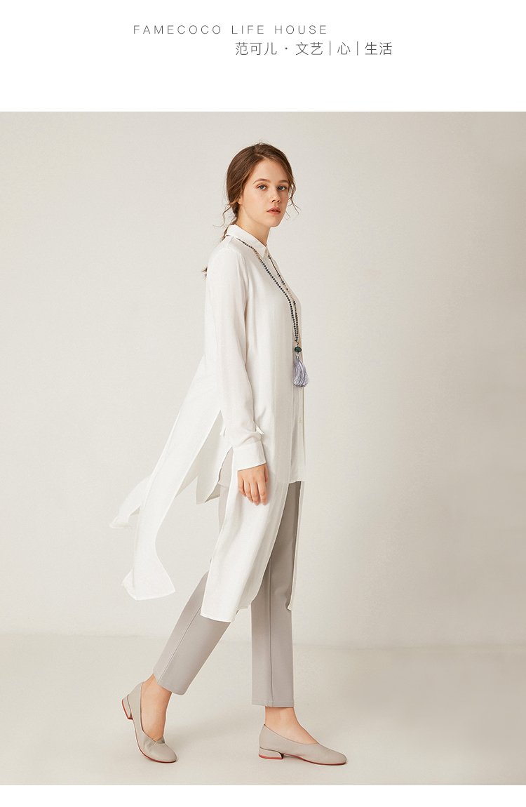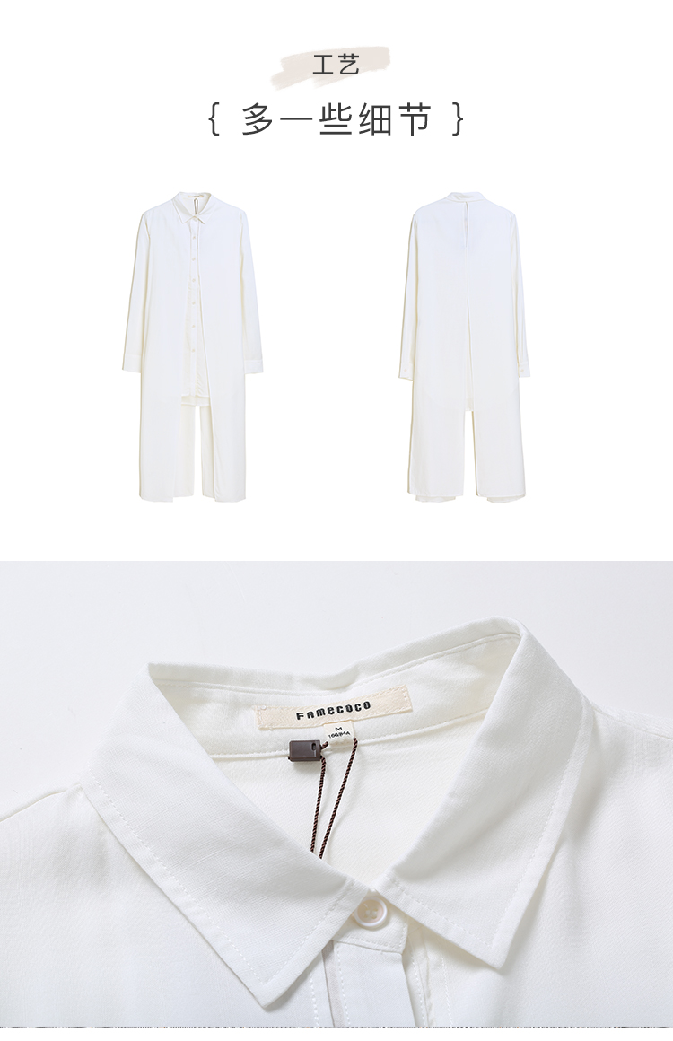 famecoco范可儿设计感休闲假两件不规则中长款长袖衬衫F195BA018