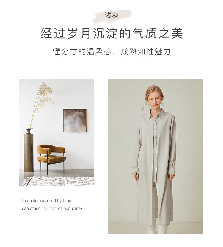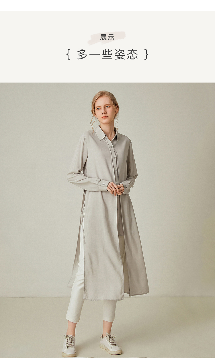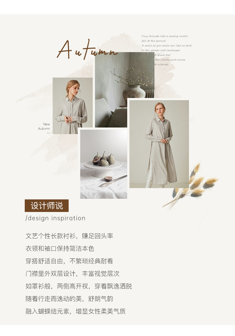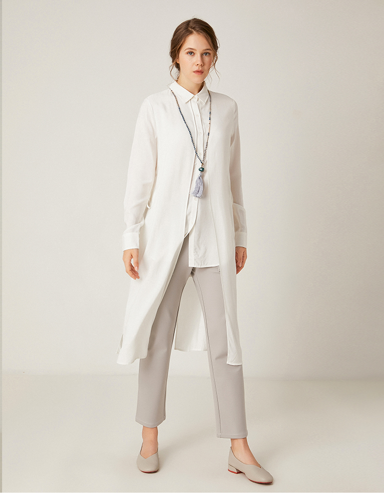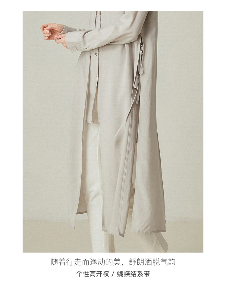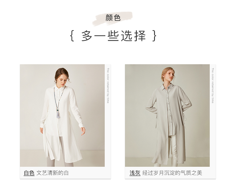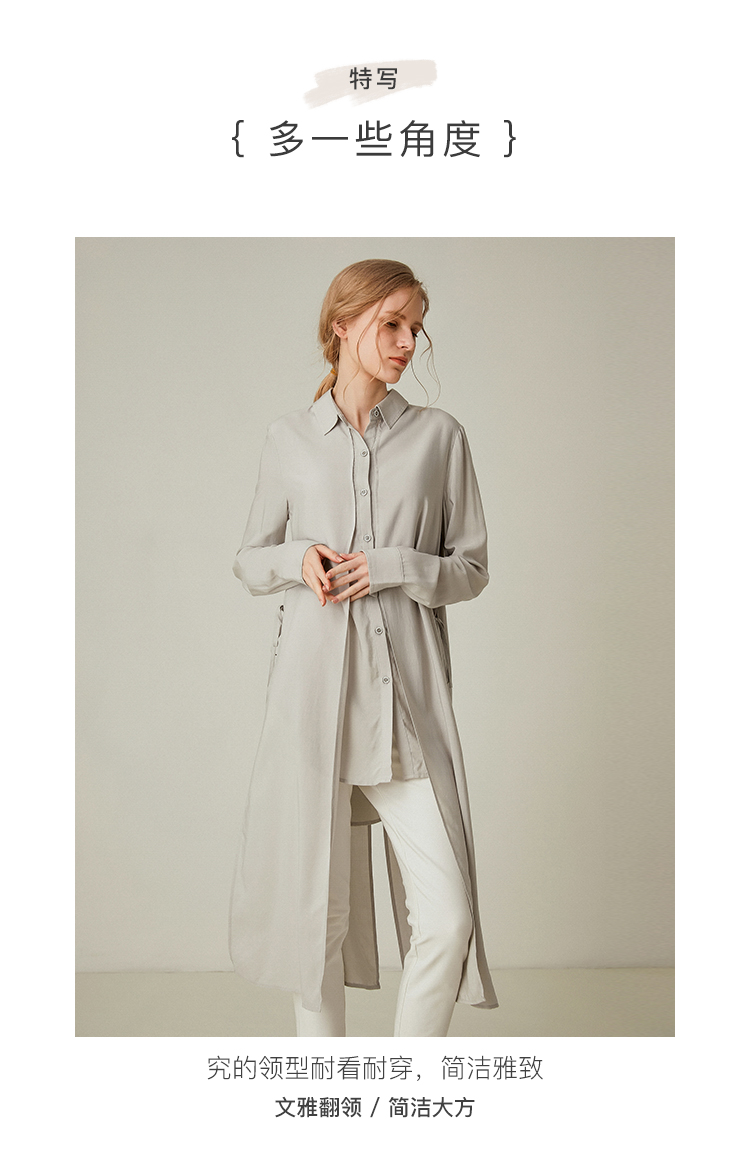 famecoco范可儿设计感休闲假两件不规则中长款长袖衬衫F195BA018