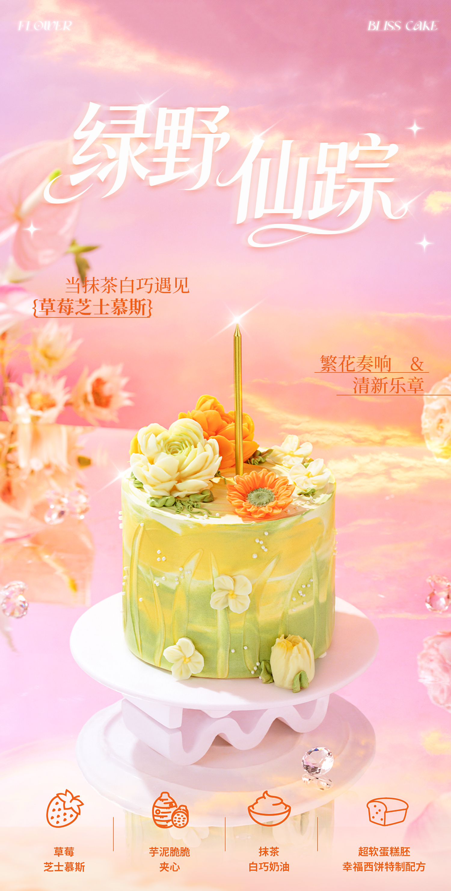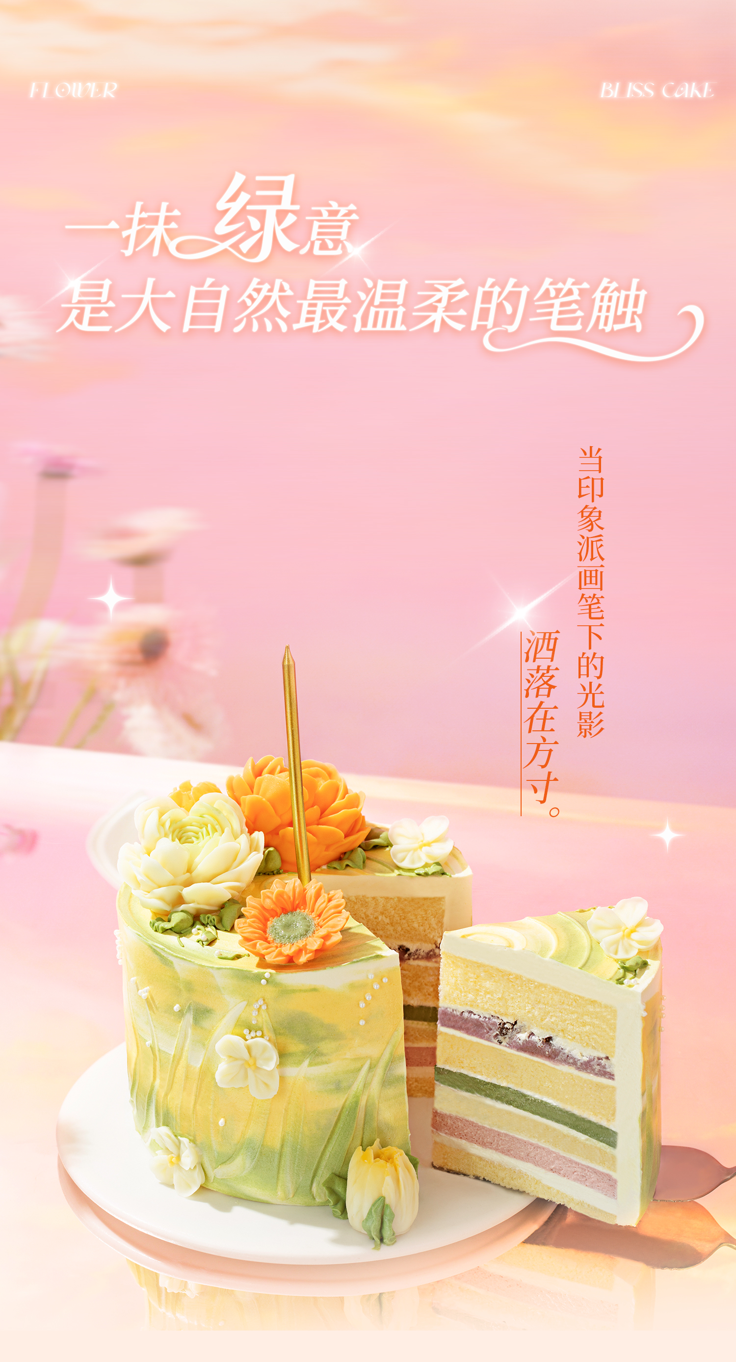 【绿野仙踪】治愈系油画风小蛋糕,花朵簇拥清新浪漫。拍照C位担当,3层夹心一次尝鲜!每一口都藏着自然的清新与治愈