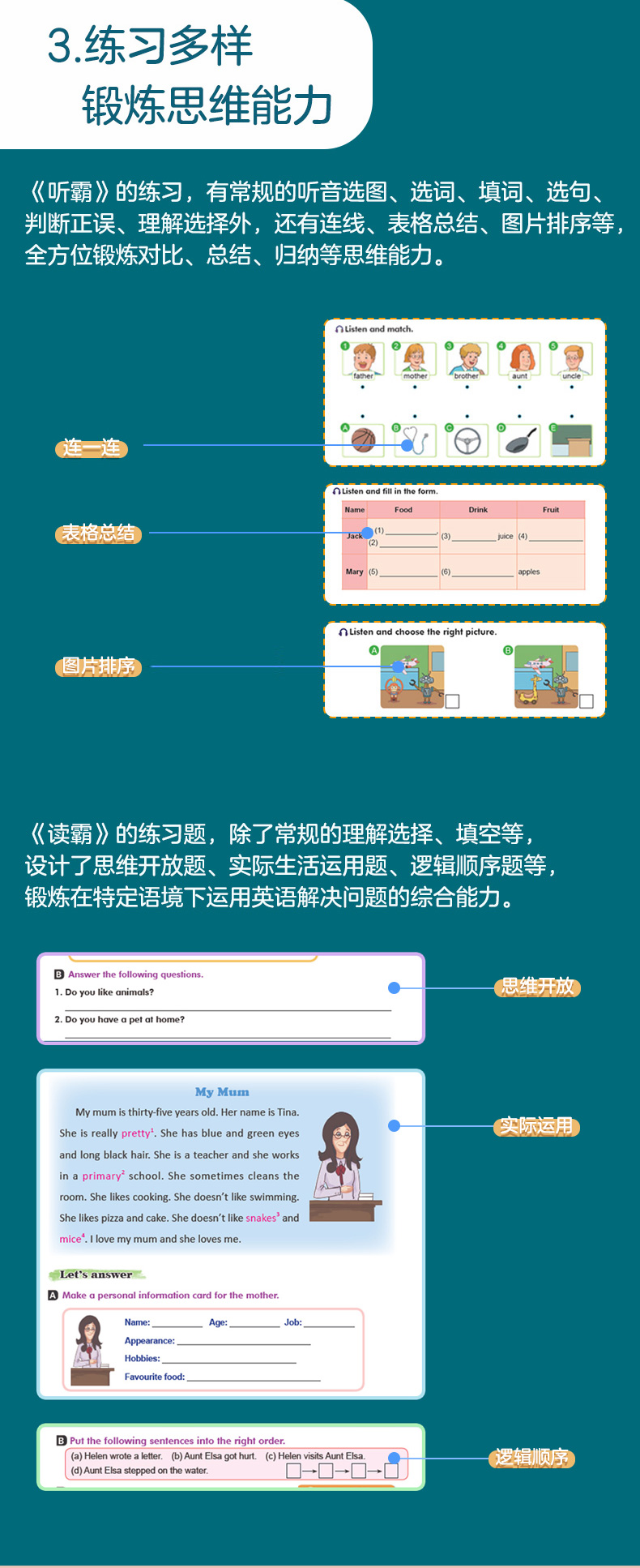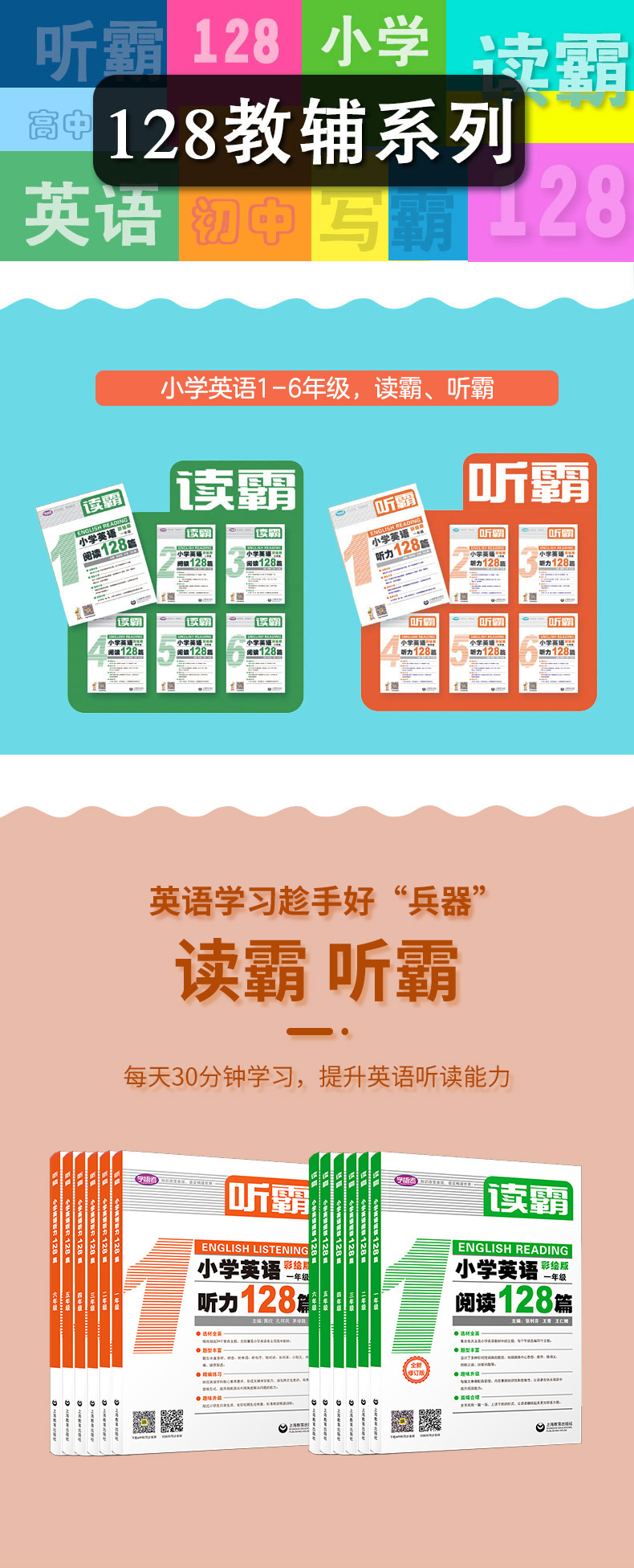 3本套装 小学英语128篇,英语写霸听霸读霸彩绘版--英语学习趁手好“兵器”