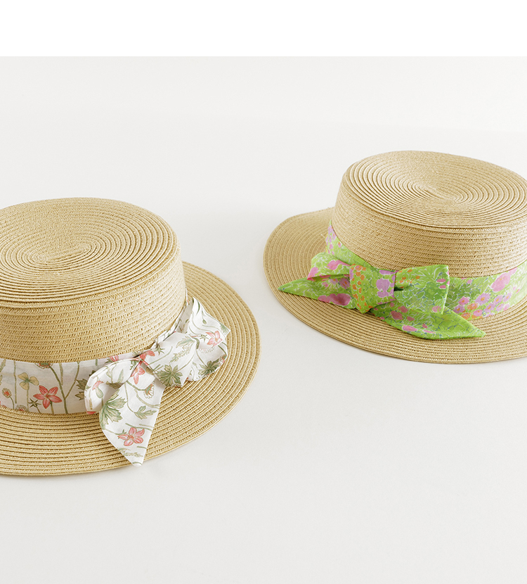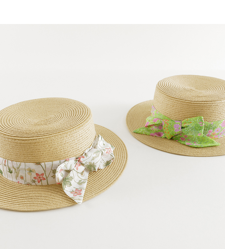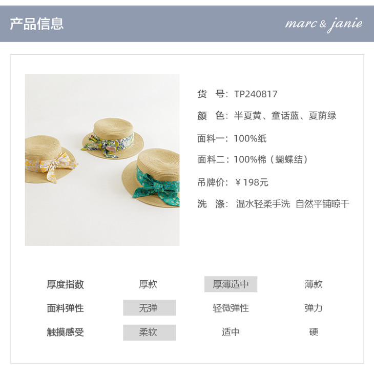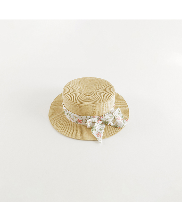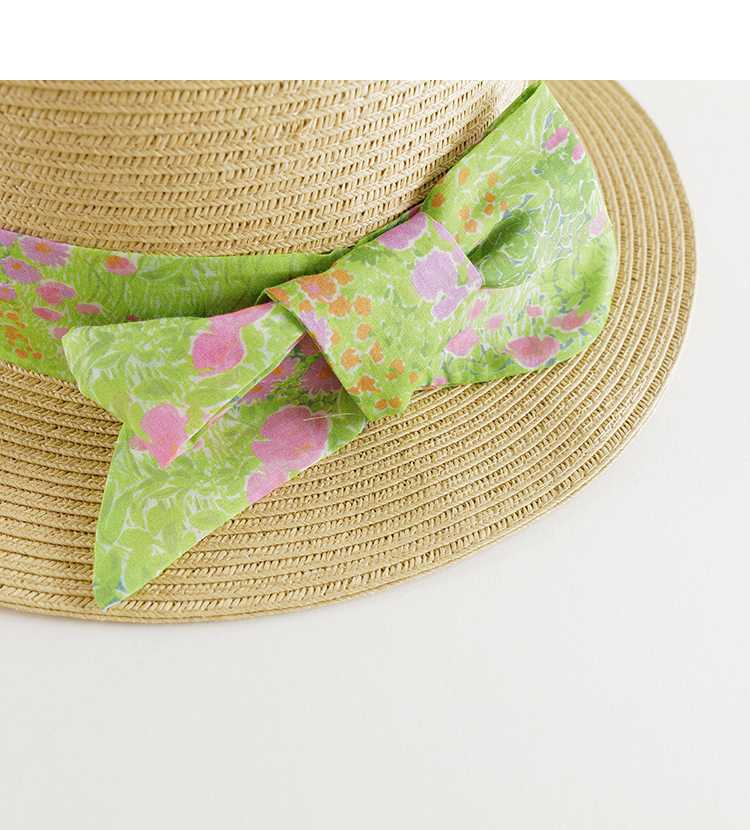 马克珍妮女童碎花蝴蝶结编织遮阳帽儿童草帽2025年夏装新款550950