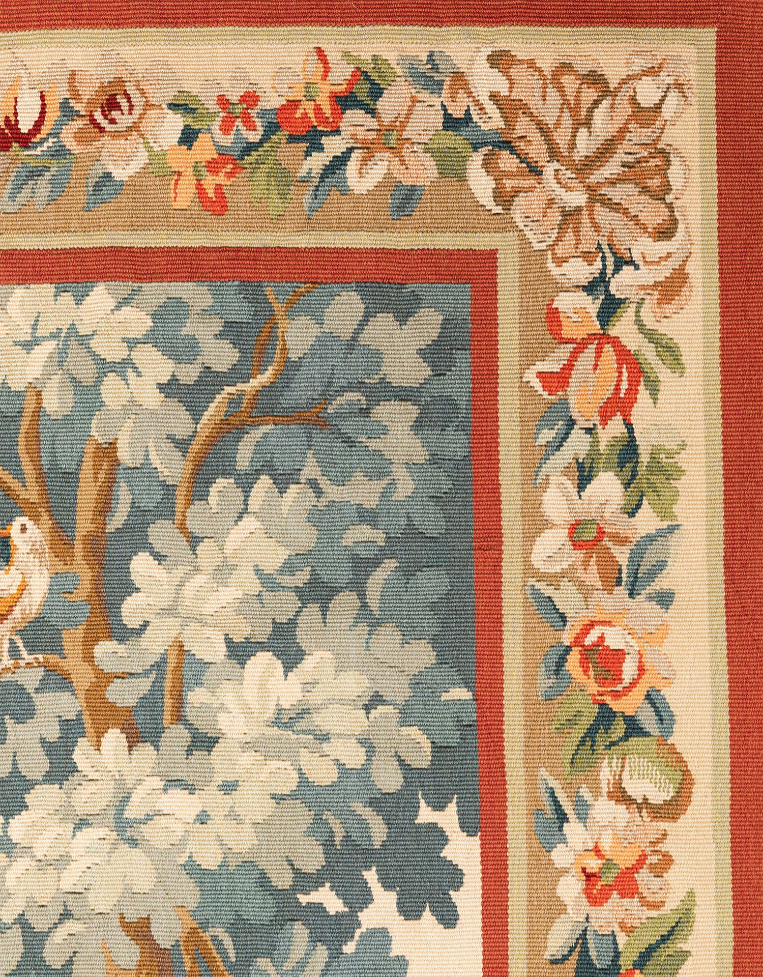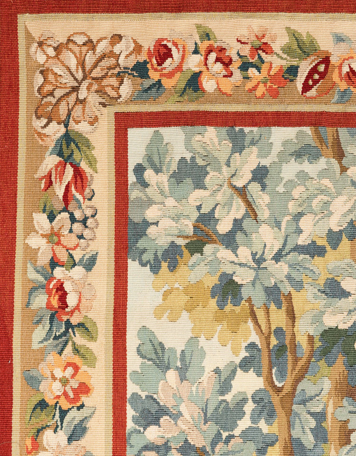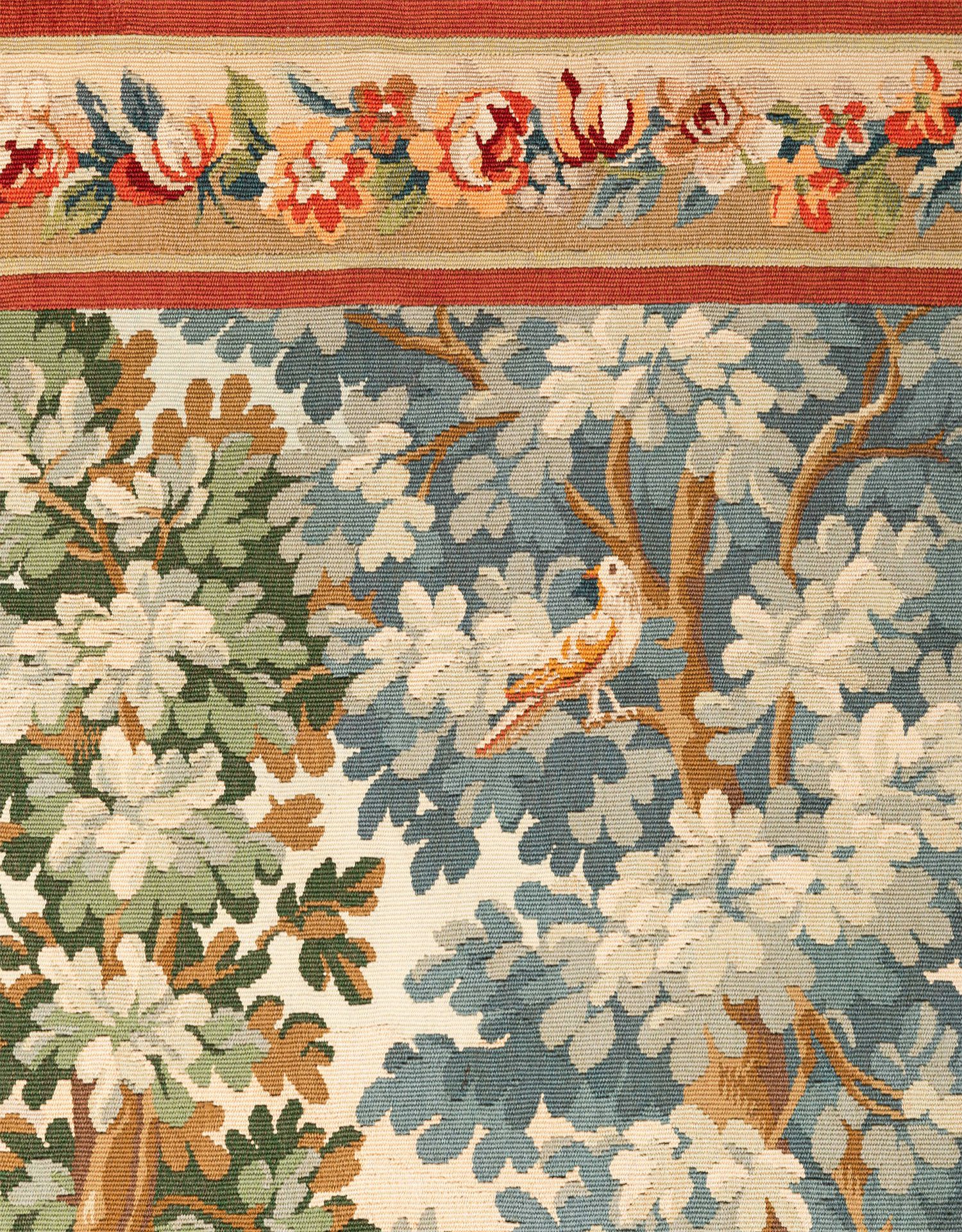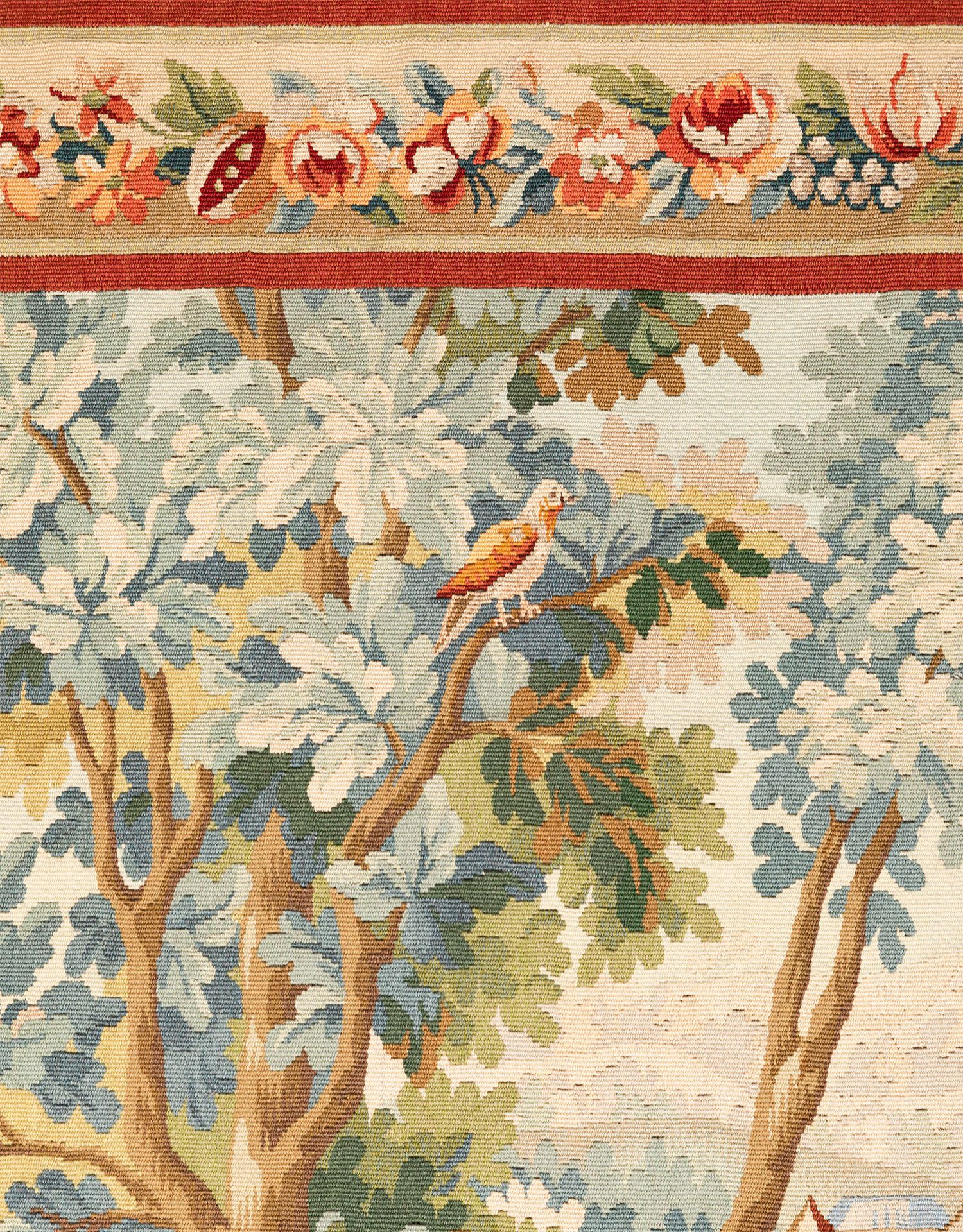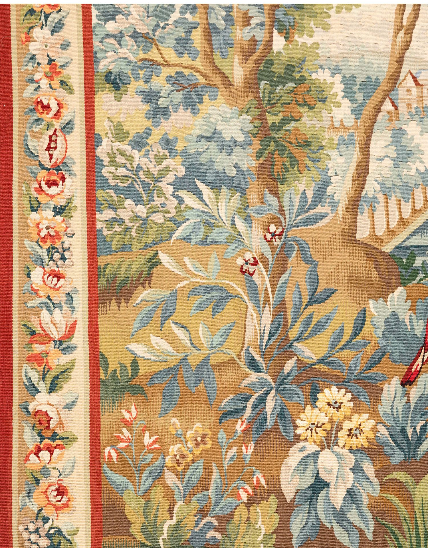 独角鹿西洋古董20世纪法国Aubusson郊林瑞鹤主题羊毛丝绸挂毯