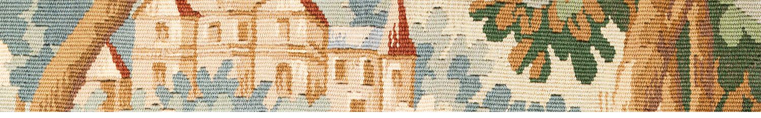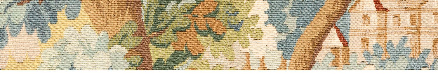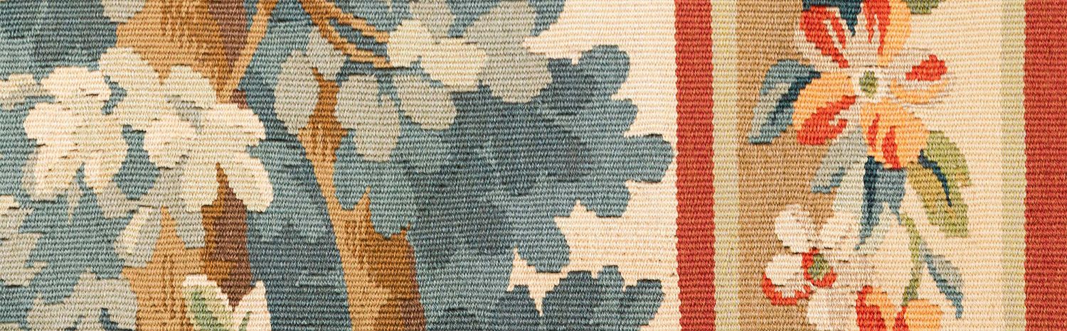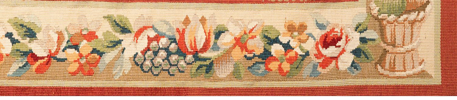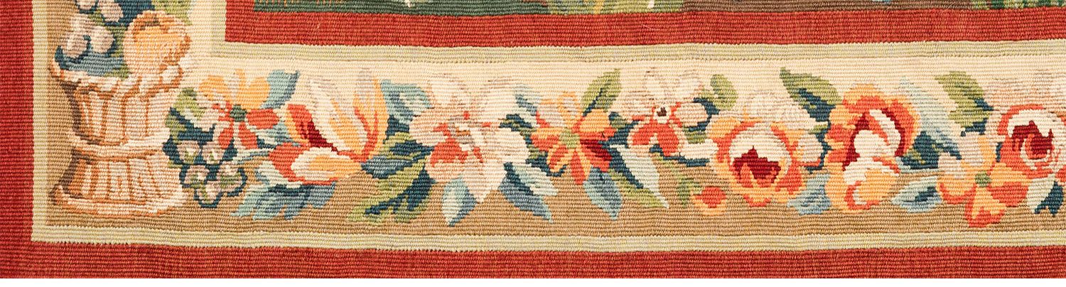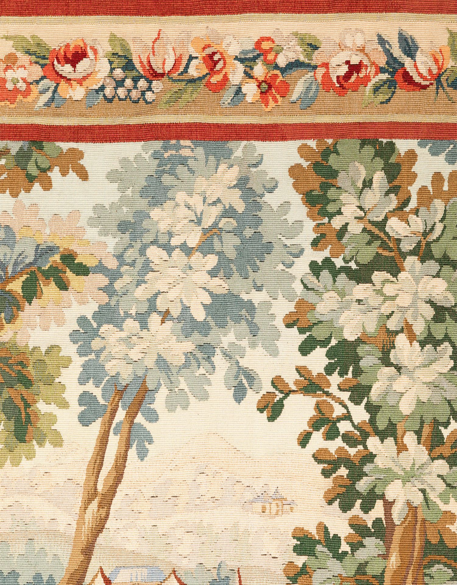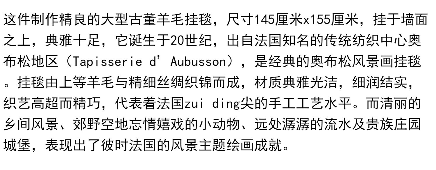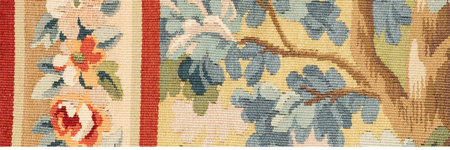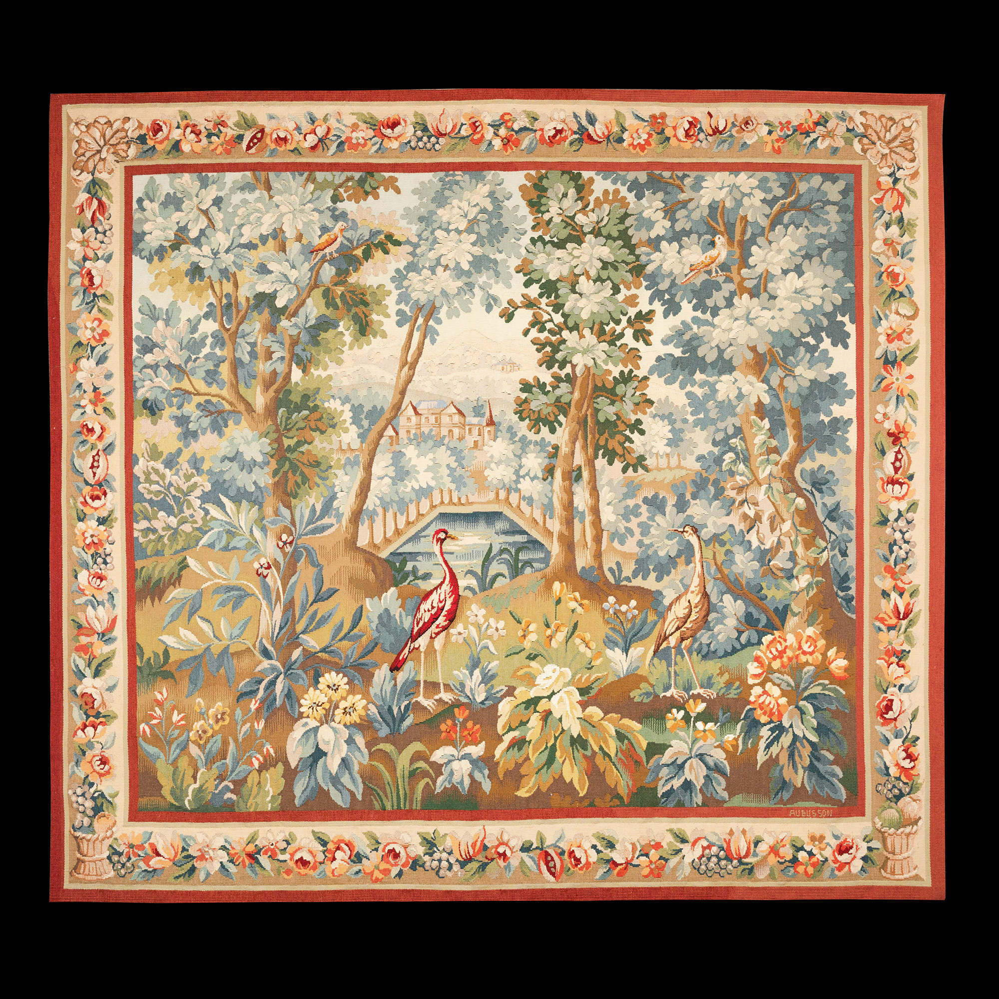 独角鹿西洋古董20世纪法国Aubusson郊林瑞鹤主题羊毛丝绸挂毯