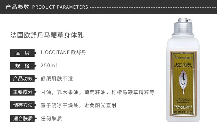 【中欧班列精选】L'OCCITANE/欧舒丹 马鞭草身体乳 250ML 1bf
