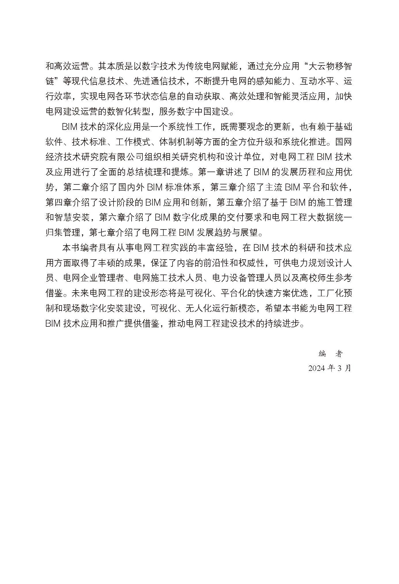 本书内容具有一定的前沿性和权威性,可为电网工程管理者和技术人员提供系统的指导,也可为开展电网工程全寿命周期BIM技术研究与应用提供有益参考和借鉴。