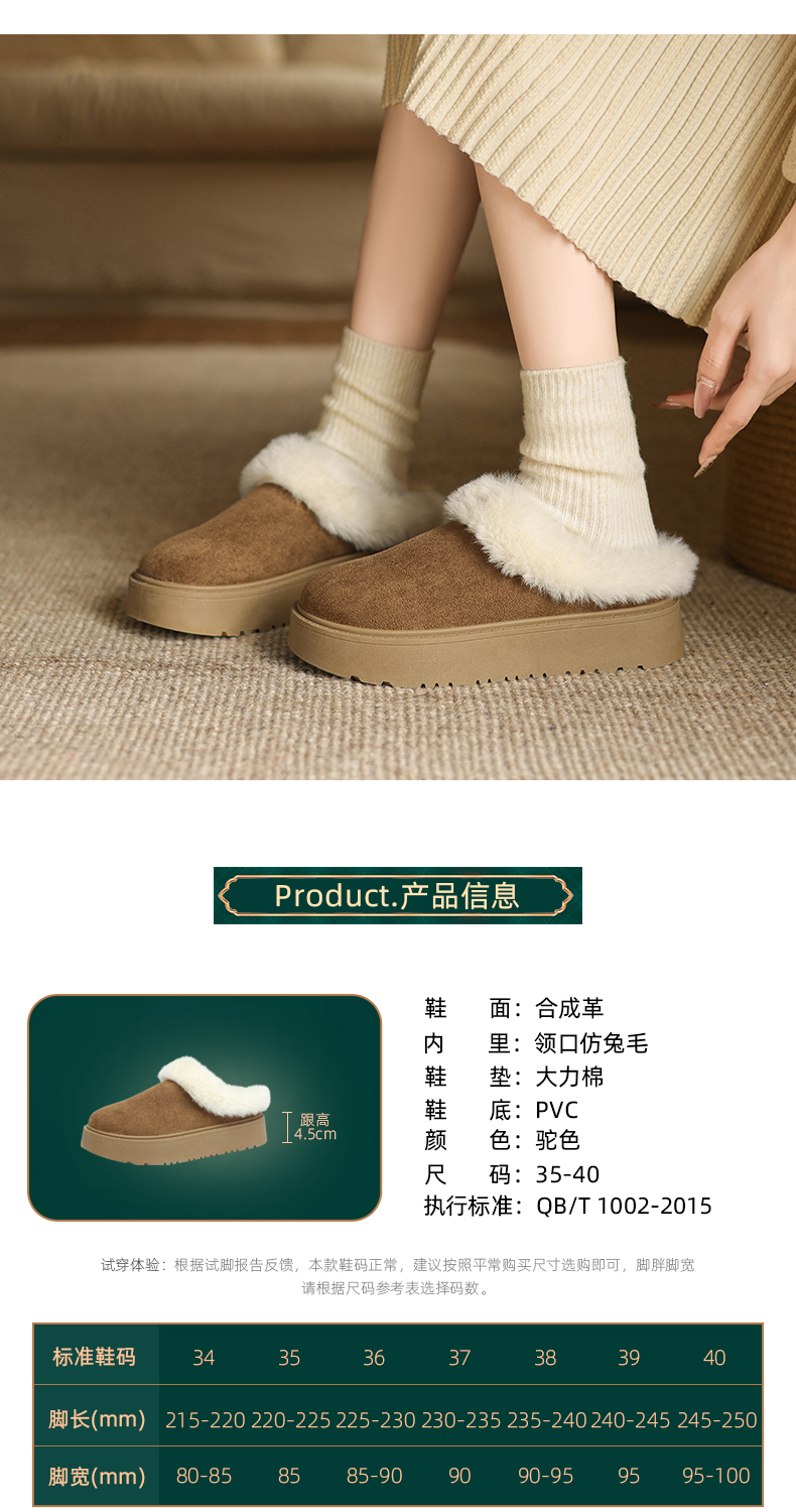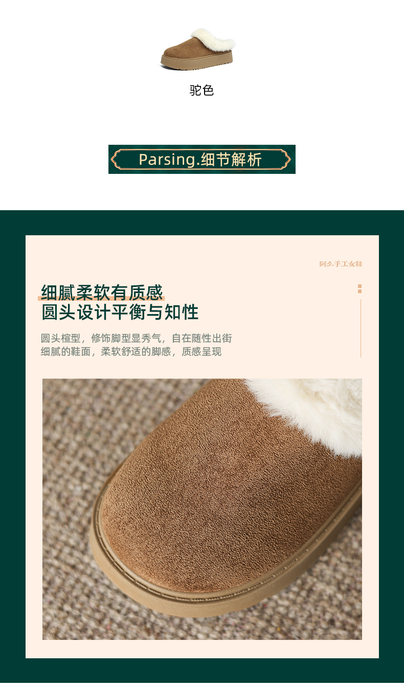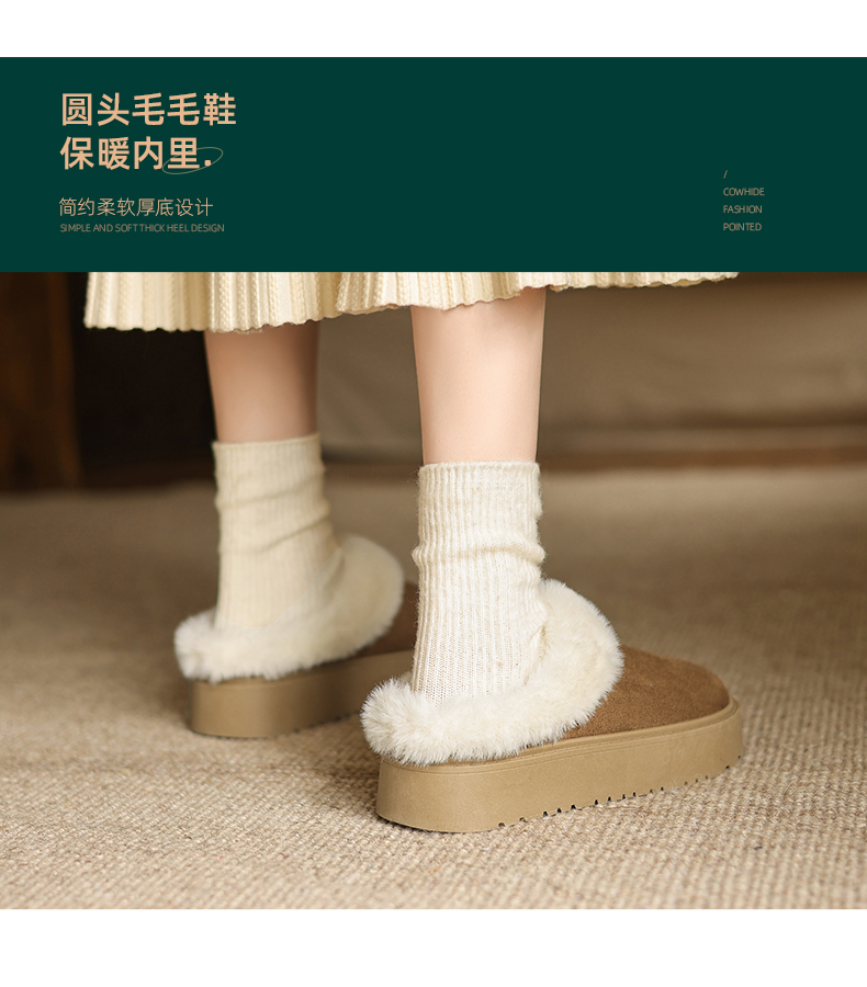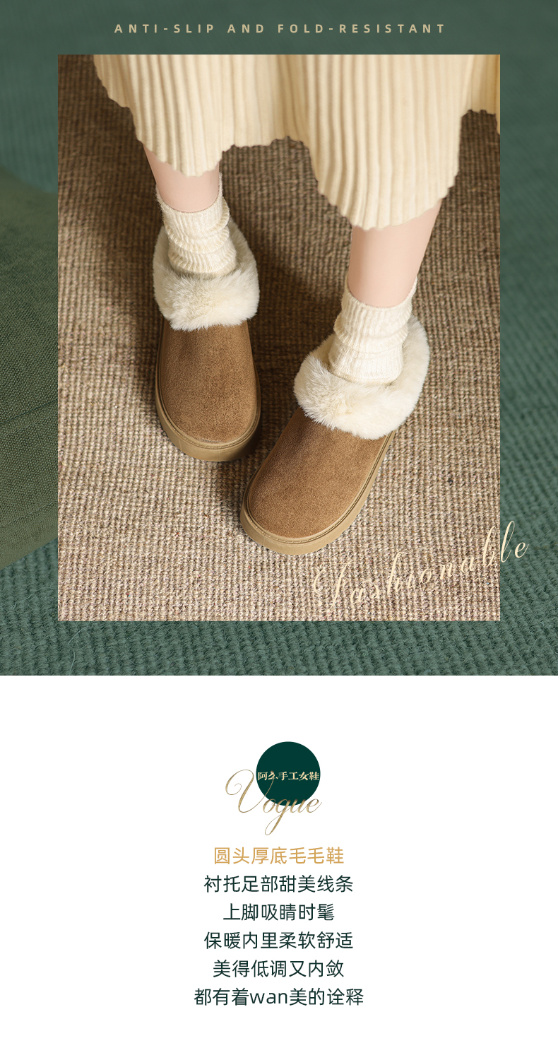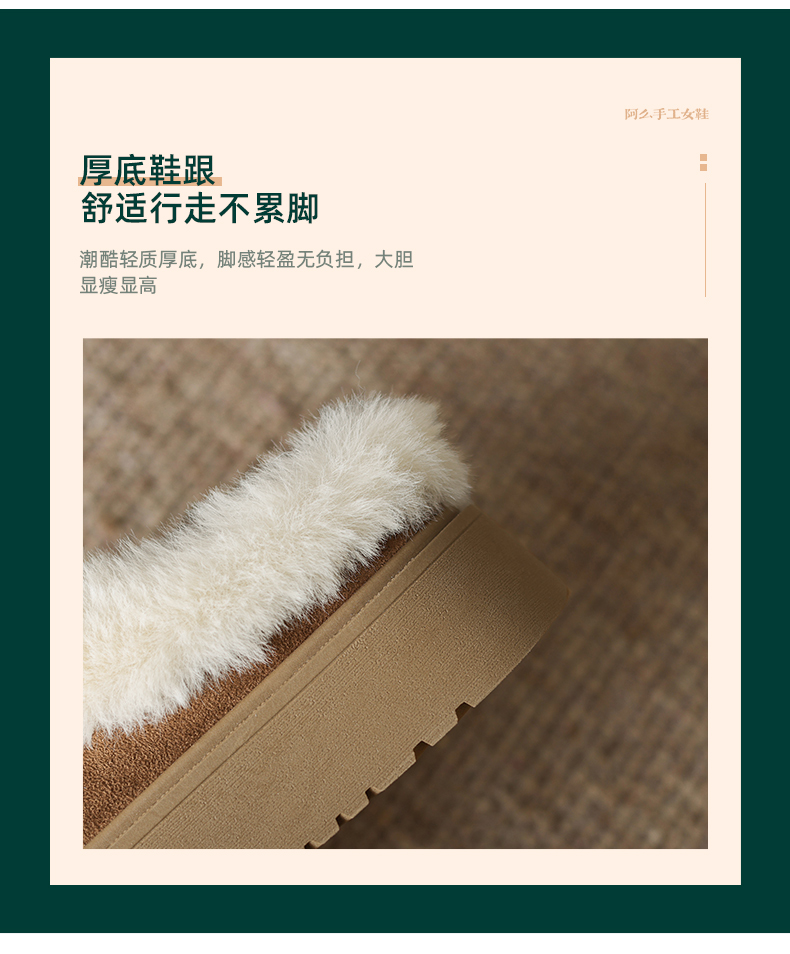 阿么手工女鞋厚底毛毛拖鞋女款秋冬防滑不累脚保暖雪地靴子4.5CM