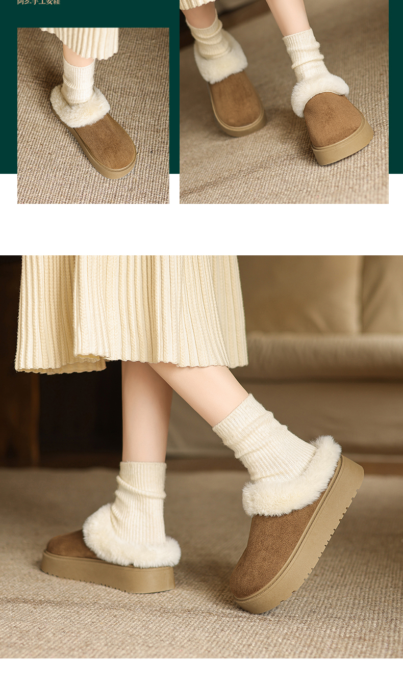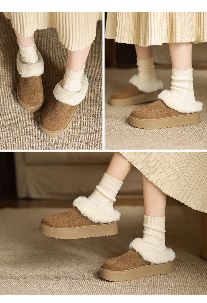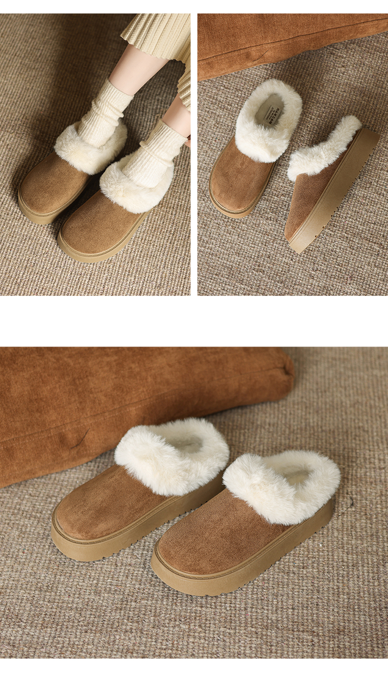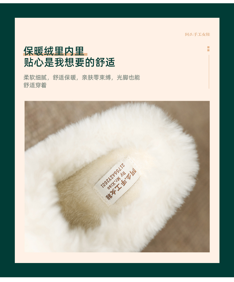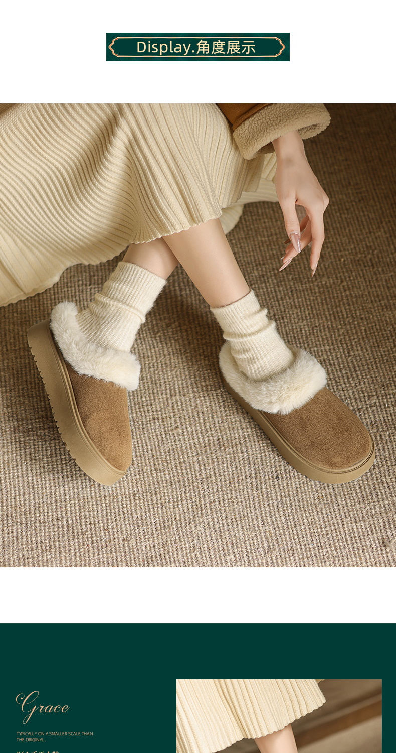 阿么手工女鞋厚底毛毛拖鞋女款秋冬防滑不累脚保暖雪地靴子4.5CM