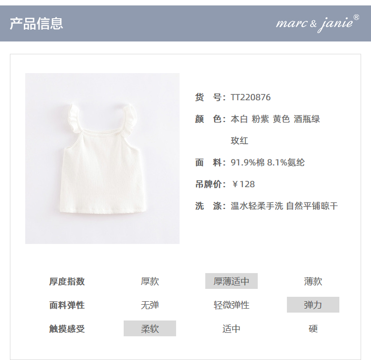 马克珍妮夏装新款 女童木耳边针织吊带背心220876