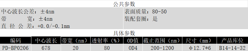 BP678/20K OD4@200-1200 T>80% Φ12.7*6 带通滤光片 (带套圈)