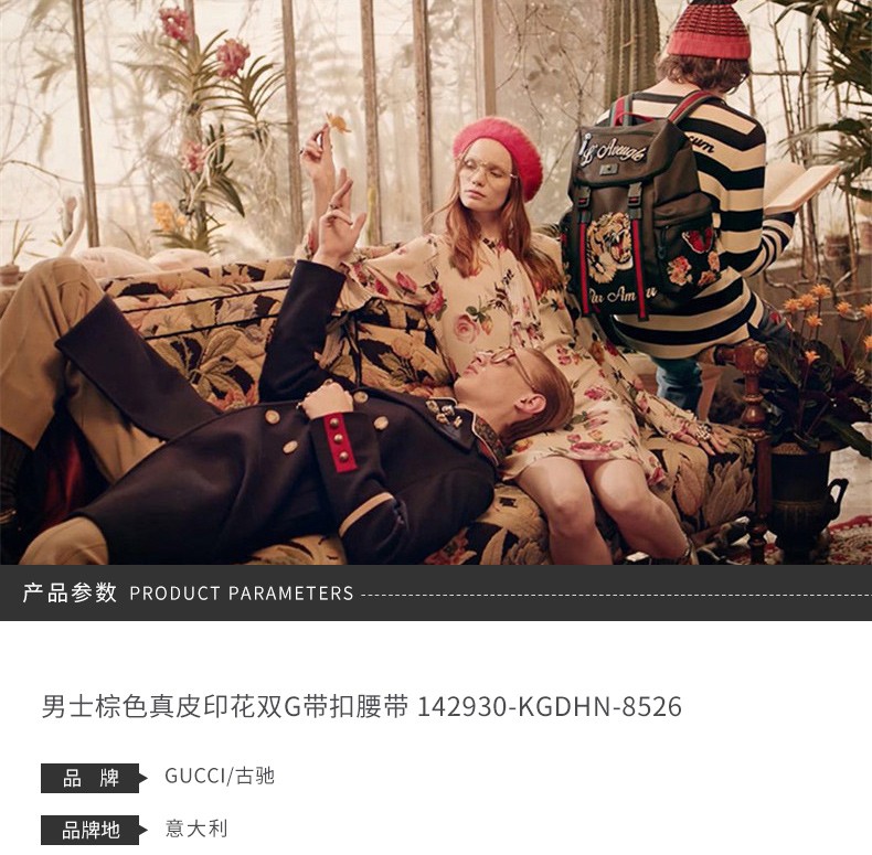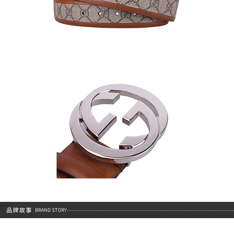 GUCCI/古驰 男士棕色真皮印花双G带扣腰带 142930-KGDHN-8526JPY带授权招加盟代理