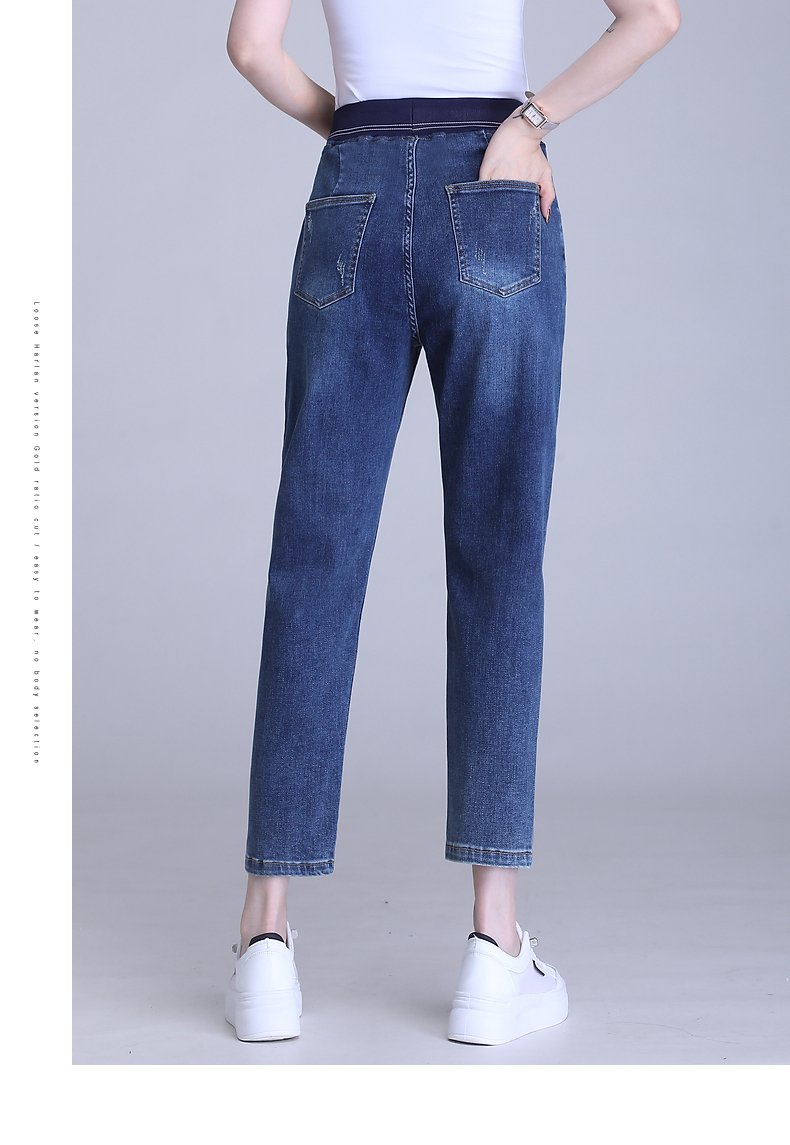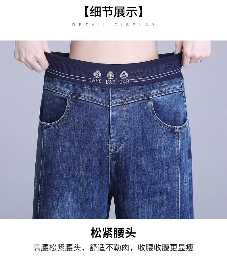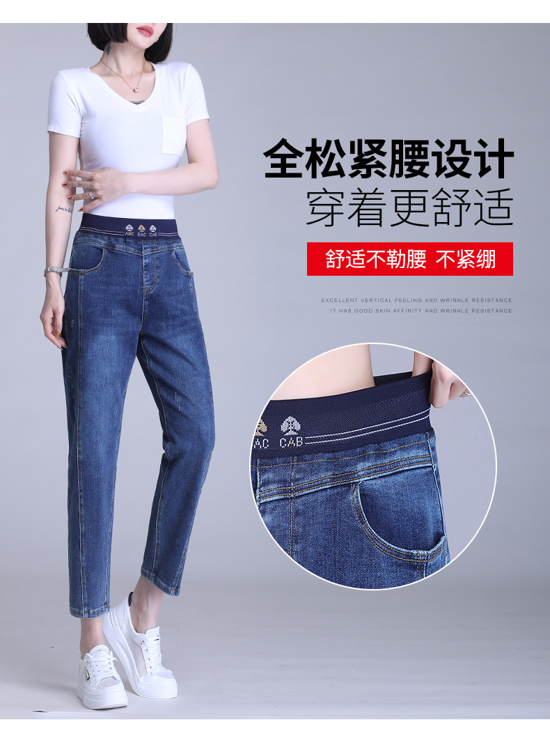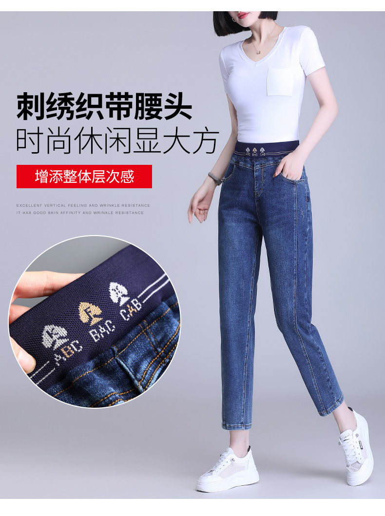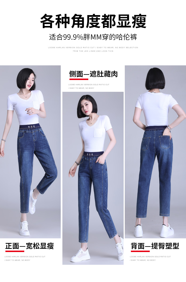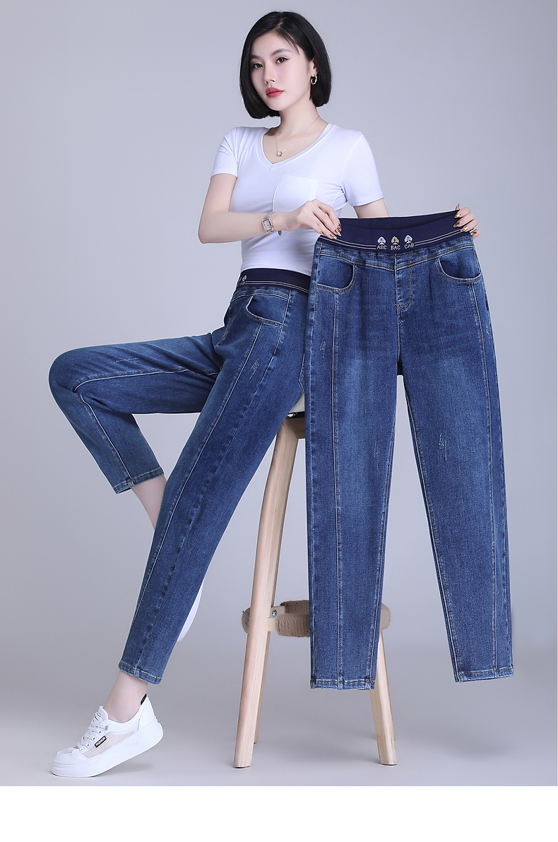 中年妈妈牛仔裤女2026新款春秋松紧高腰弹力松紧腰休闲哈伦女裤子