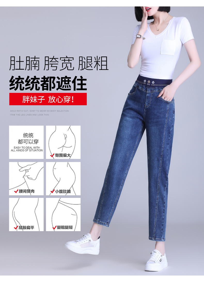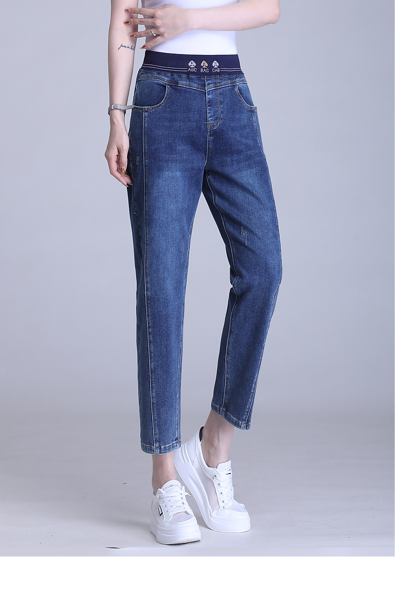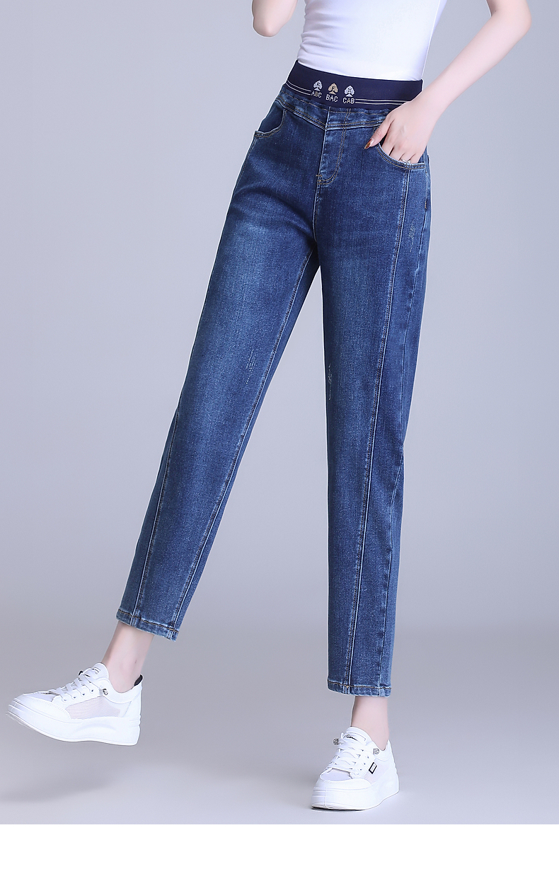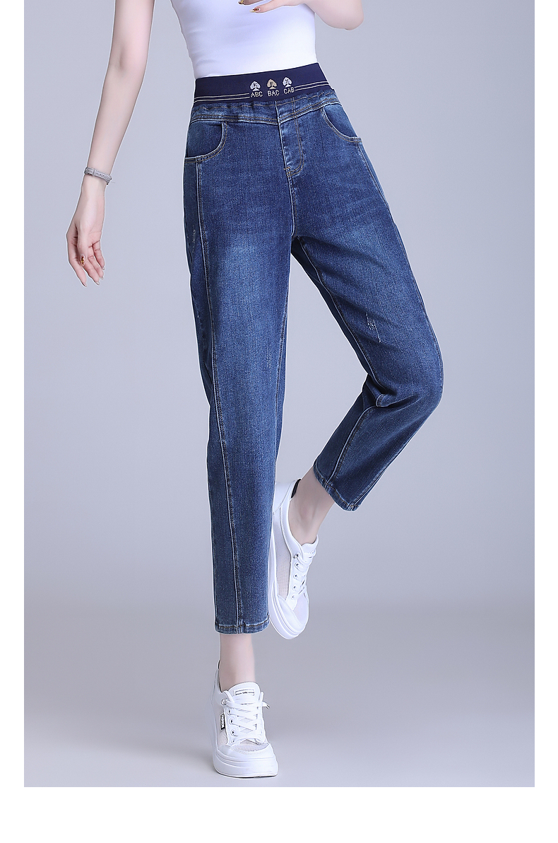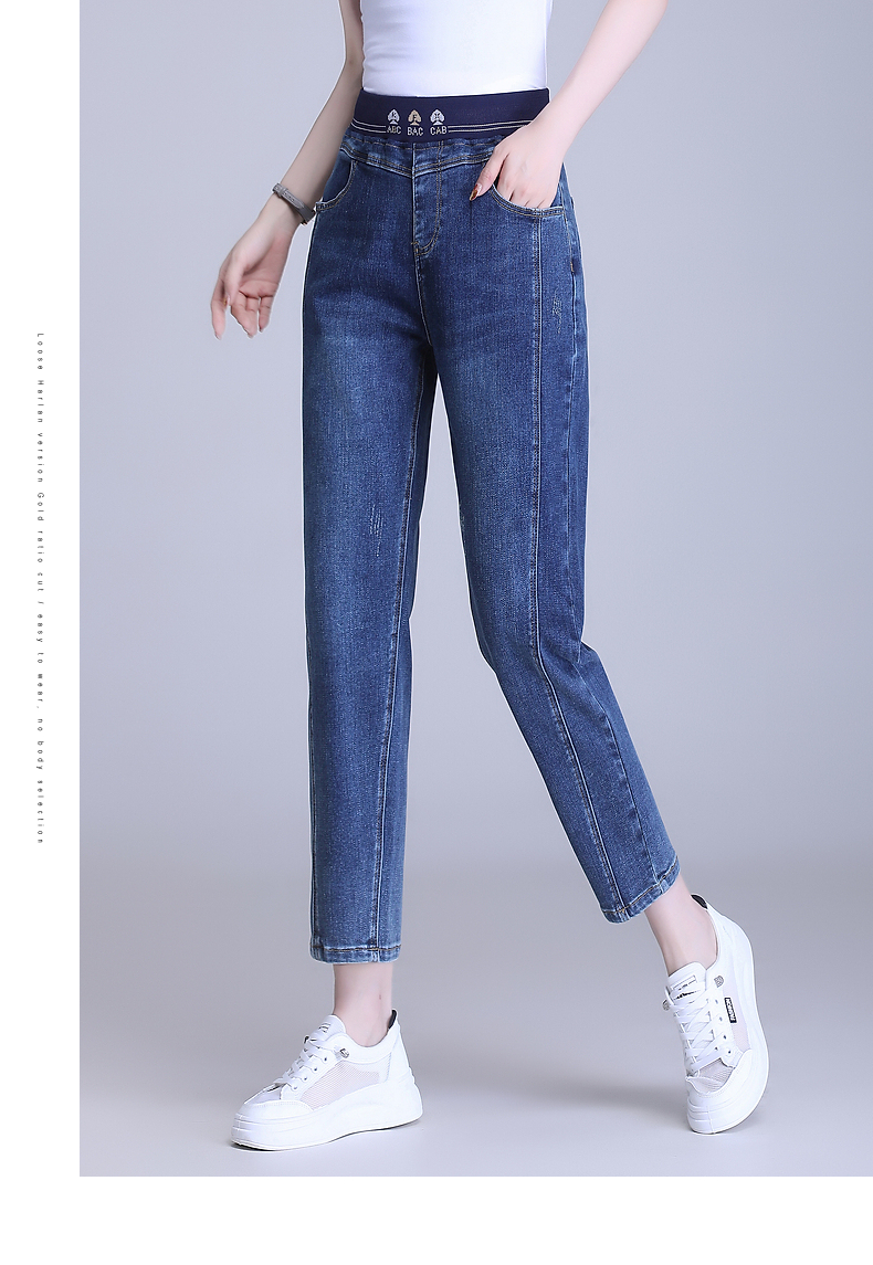 中年妈妈牛仔裤女2026新款春秋松紧高腰弹力松紧腰休闲哈伦女裤子