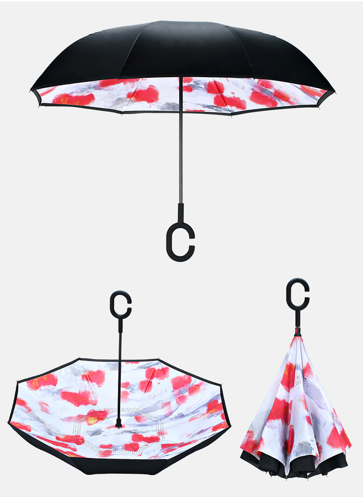 公益爱心『众』品牌 创意双层反向伞免持式汽车晴雨伞大号两用长柄 防晒反骨伞 心视觉