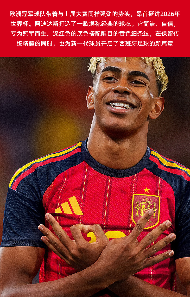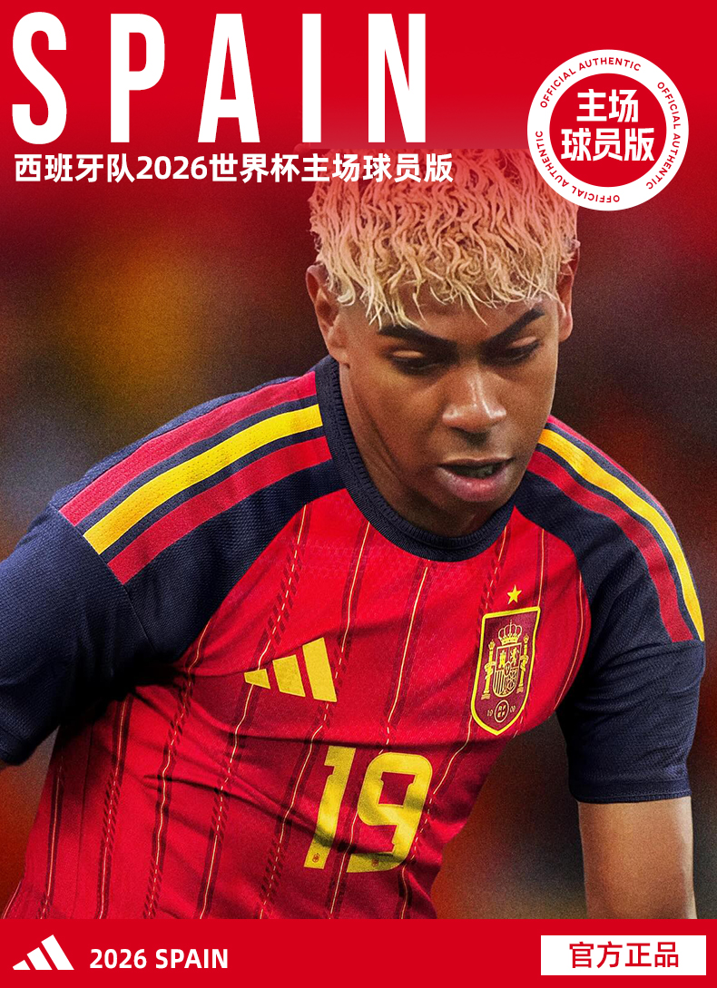 SFS阿迪达斯2026世界杯西班牙主场球员版球衣短袖足球服男 JN4366