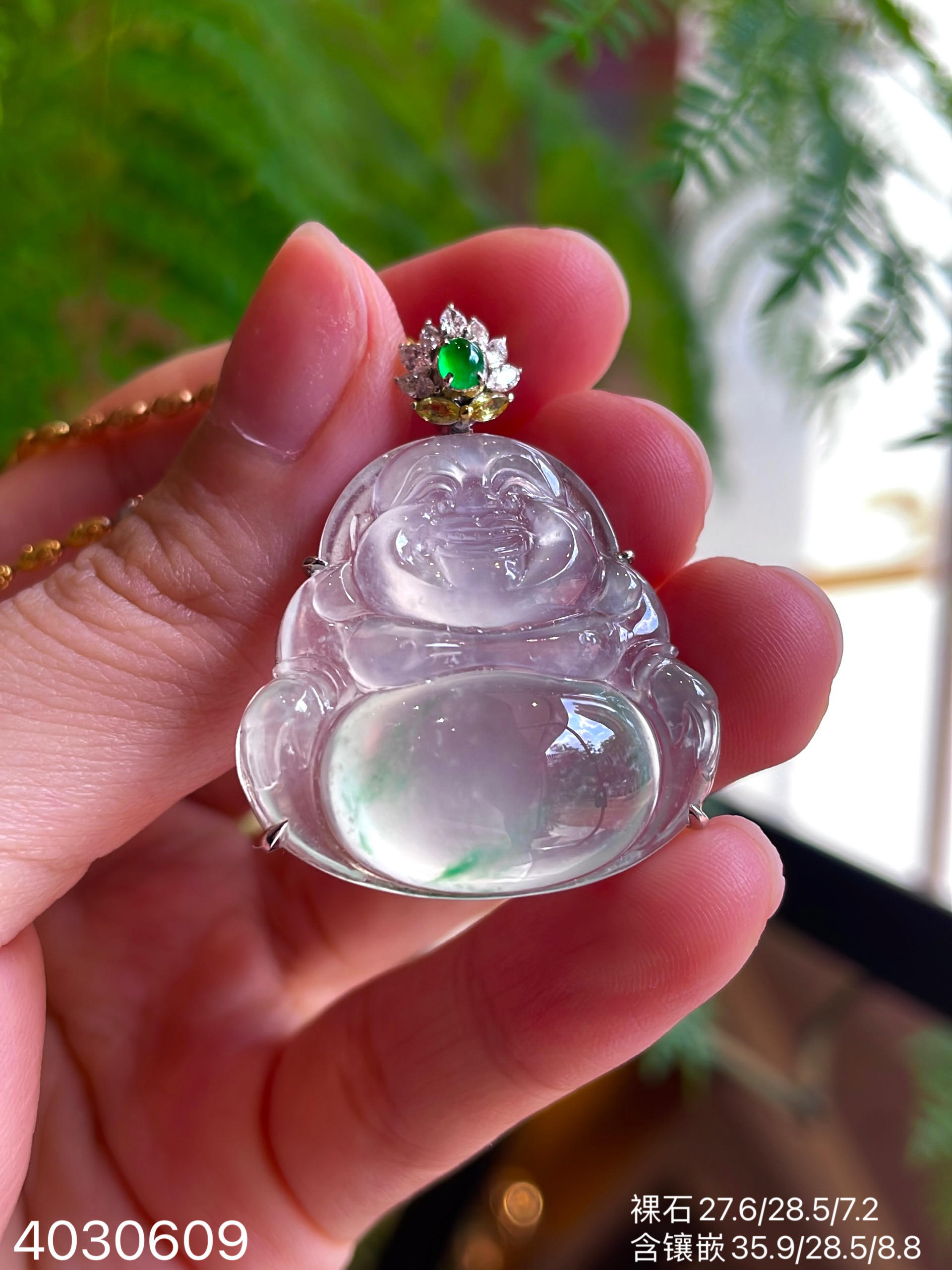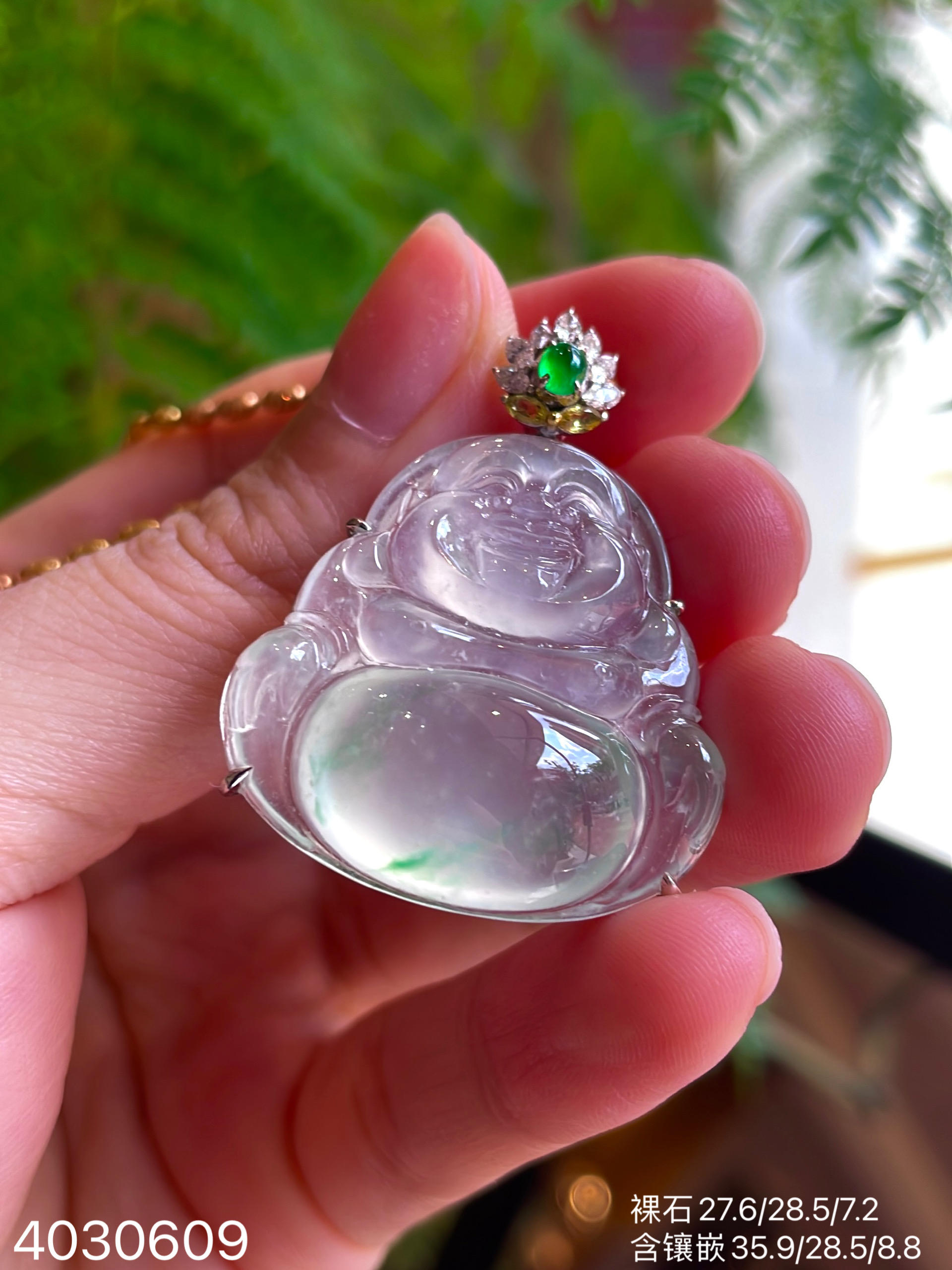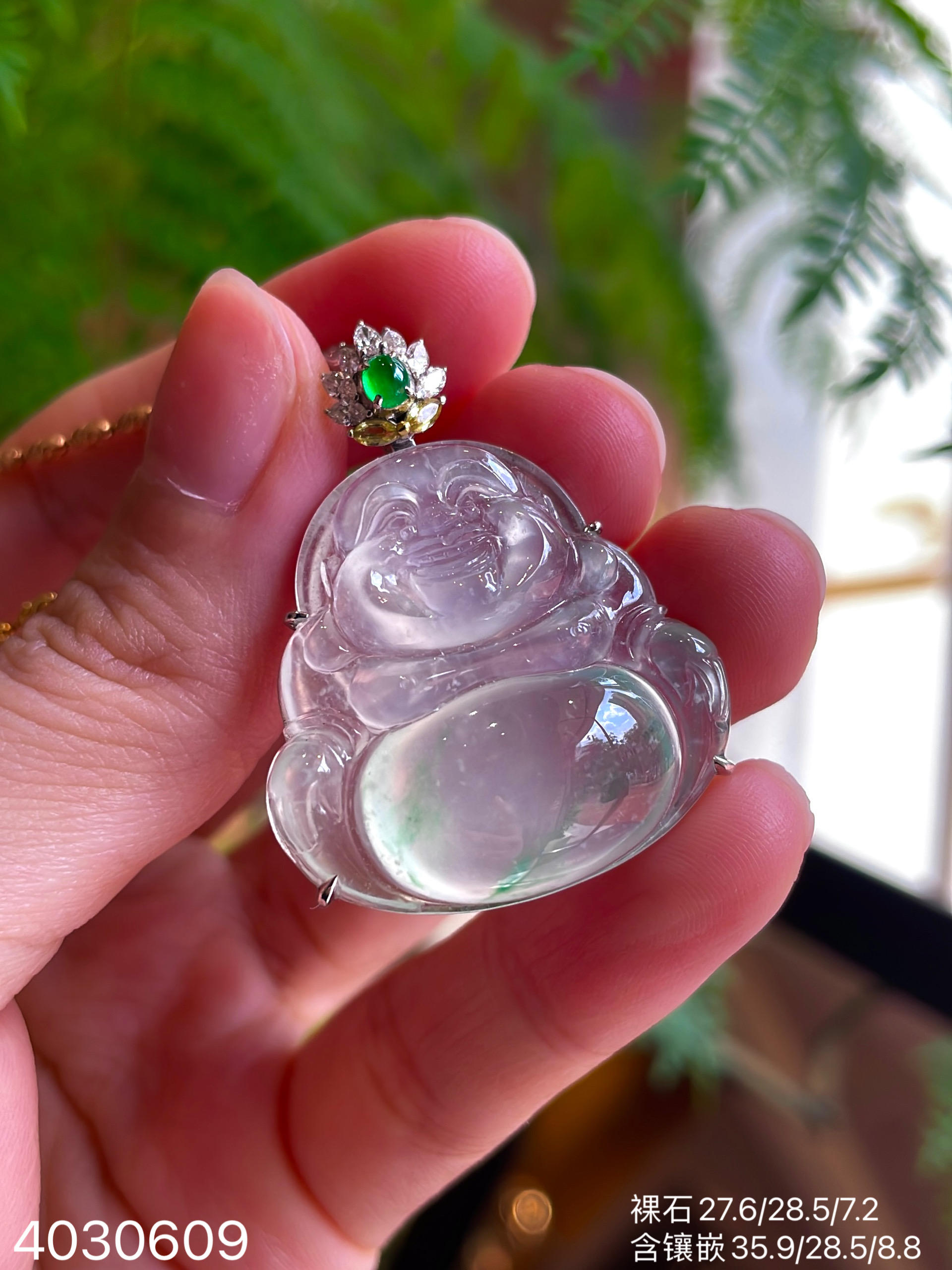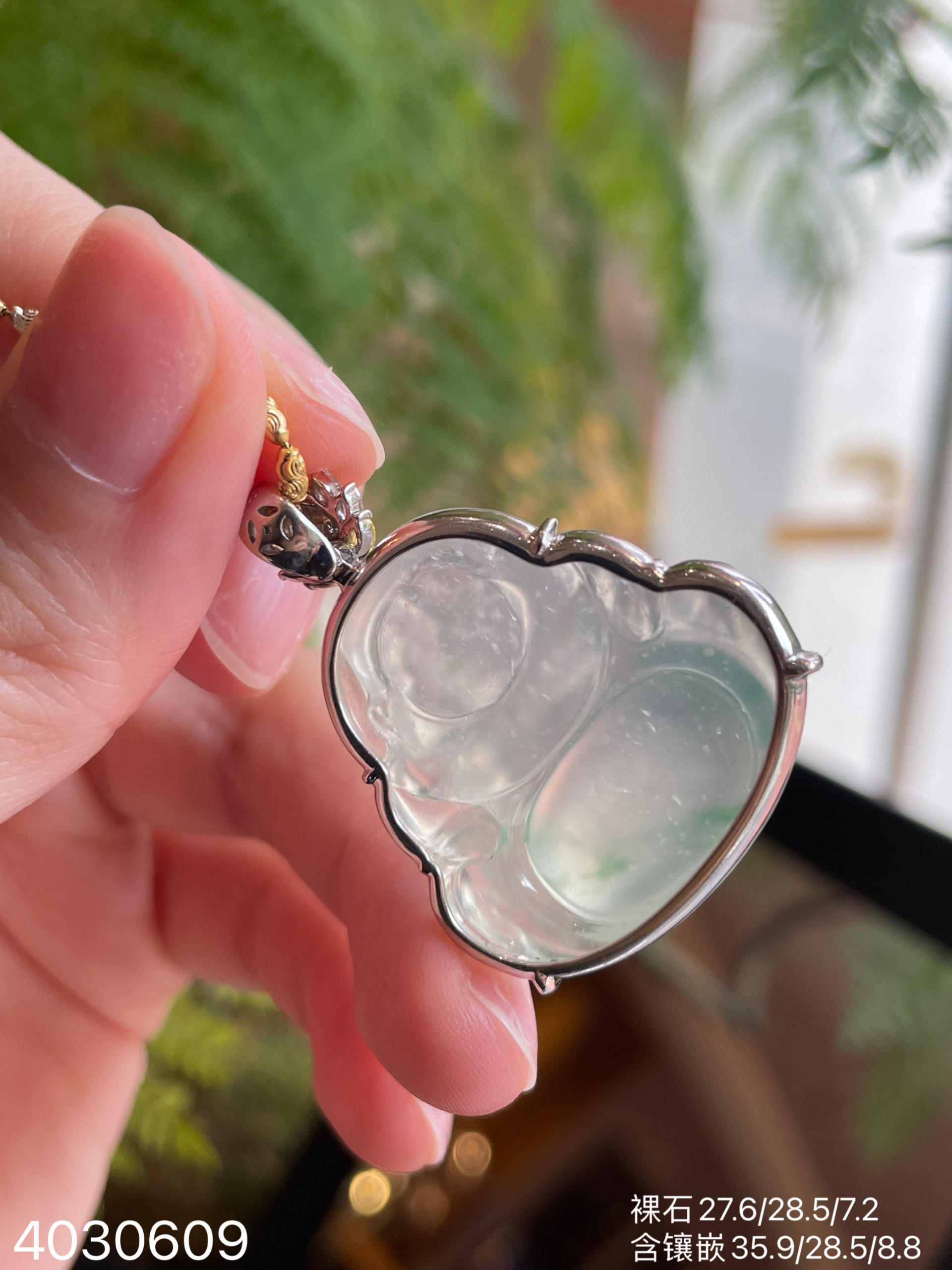 玻璃种飘翠玉兰花吊坠【6250203】具体价格微信咨询