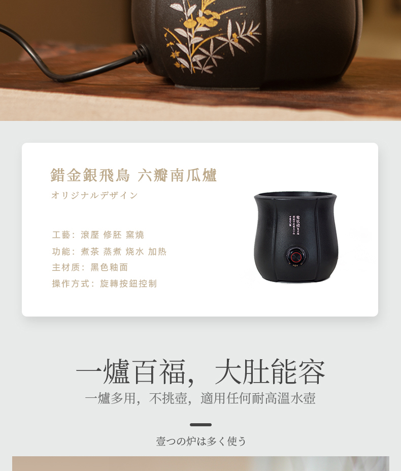 莺歌烧六瓣南瓜炉轻音电陶炉电茶炉烧水家用煮茶器错金银飞鸟红外垂直加热底座【厂家直发】