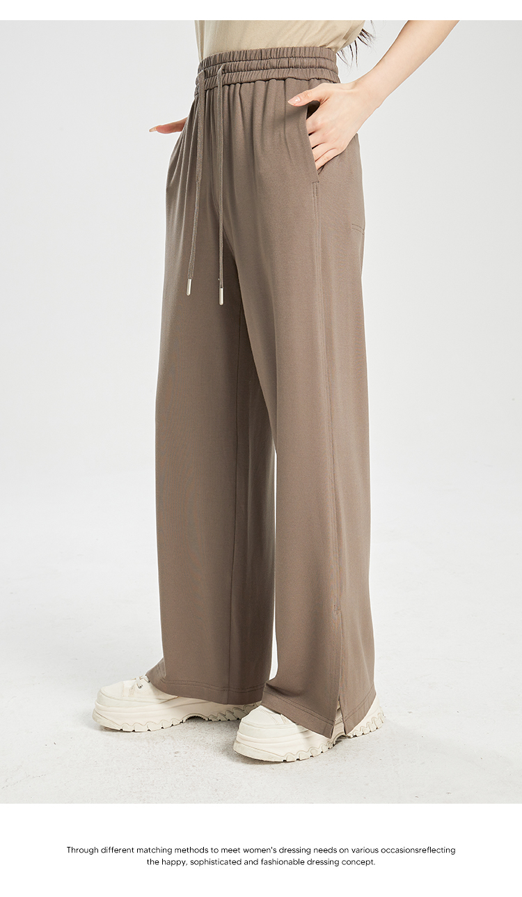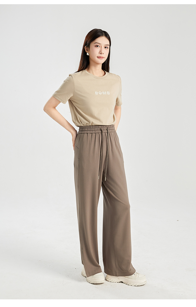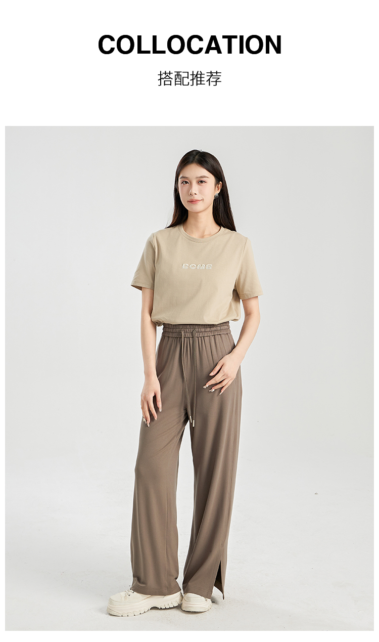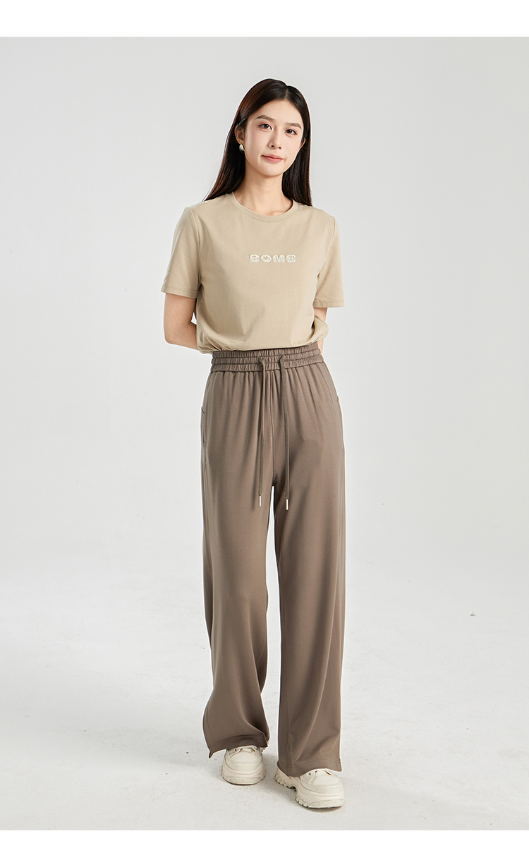 oldcolour夏季新款垂感高腰松紧系带直筒通勤休闲长裤女BR230705A1