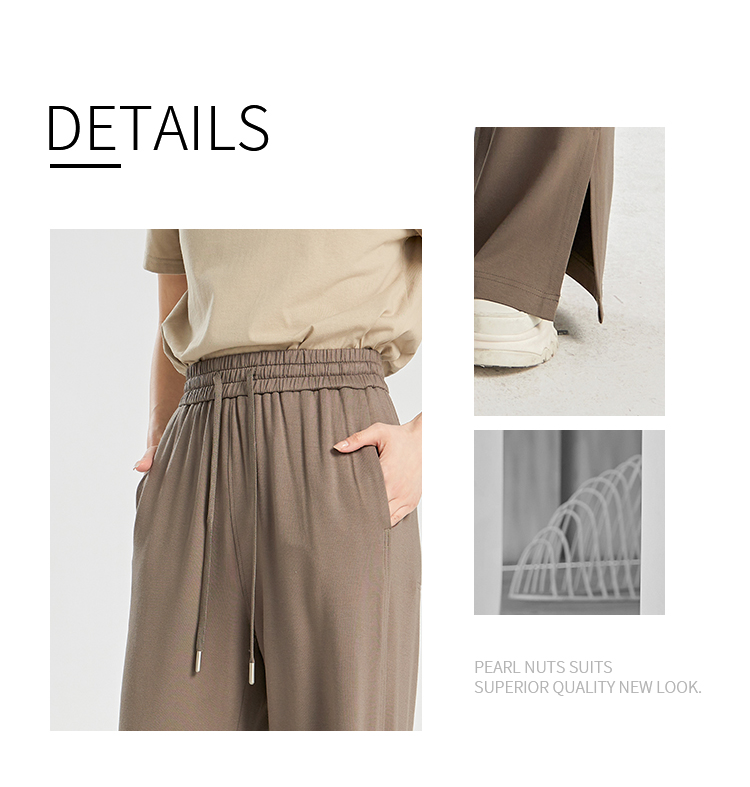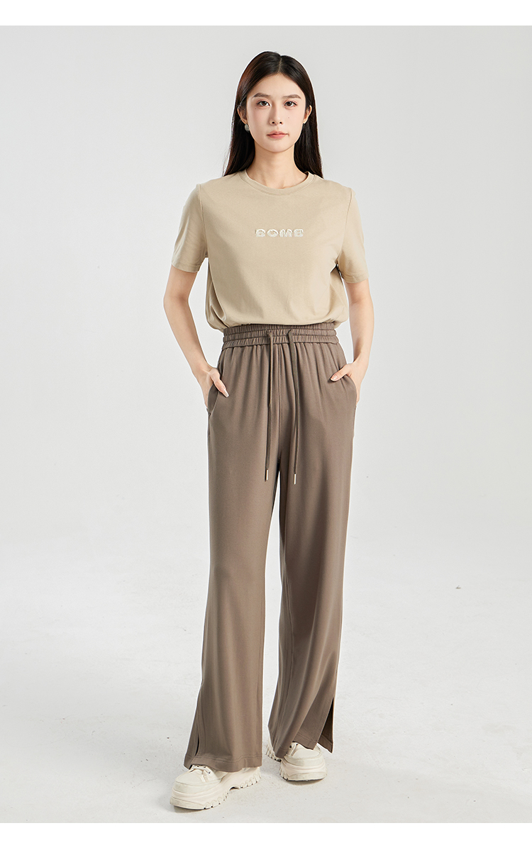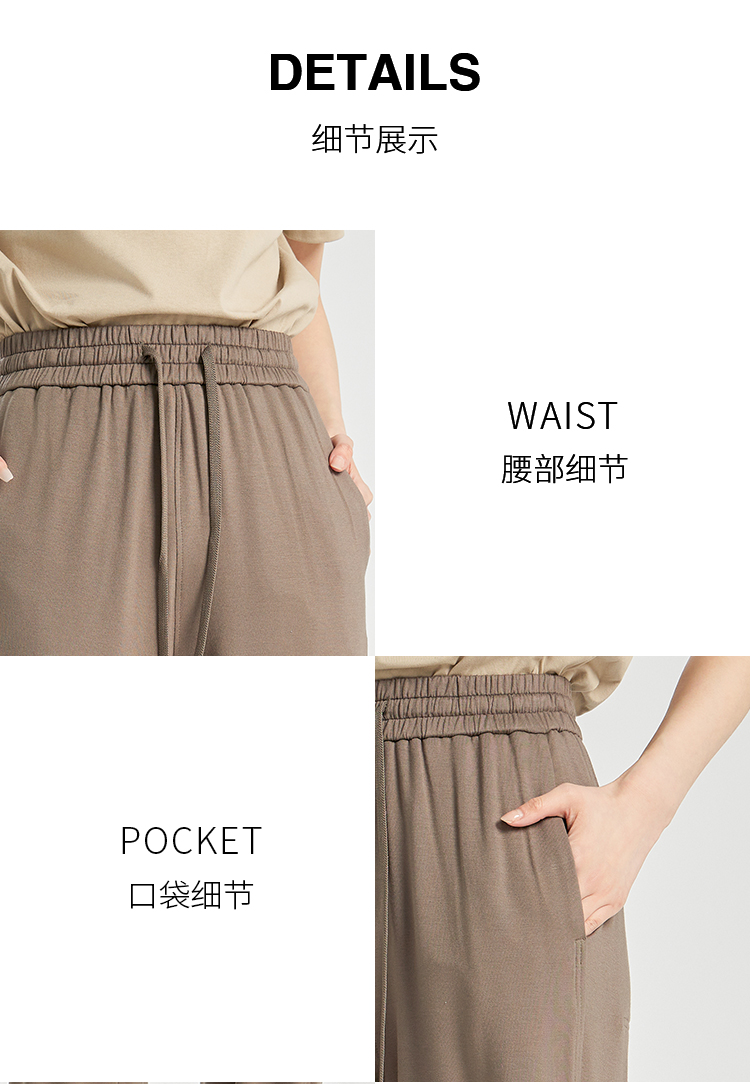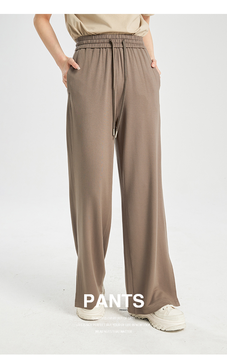 oldcolour夏季新款垂感高腰松紧系带直筒通勤休闲长裤女BR230705A1