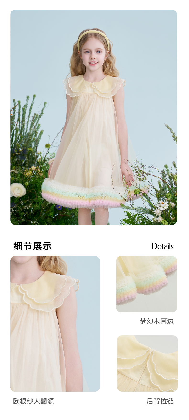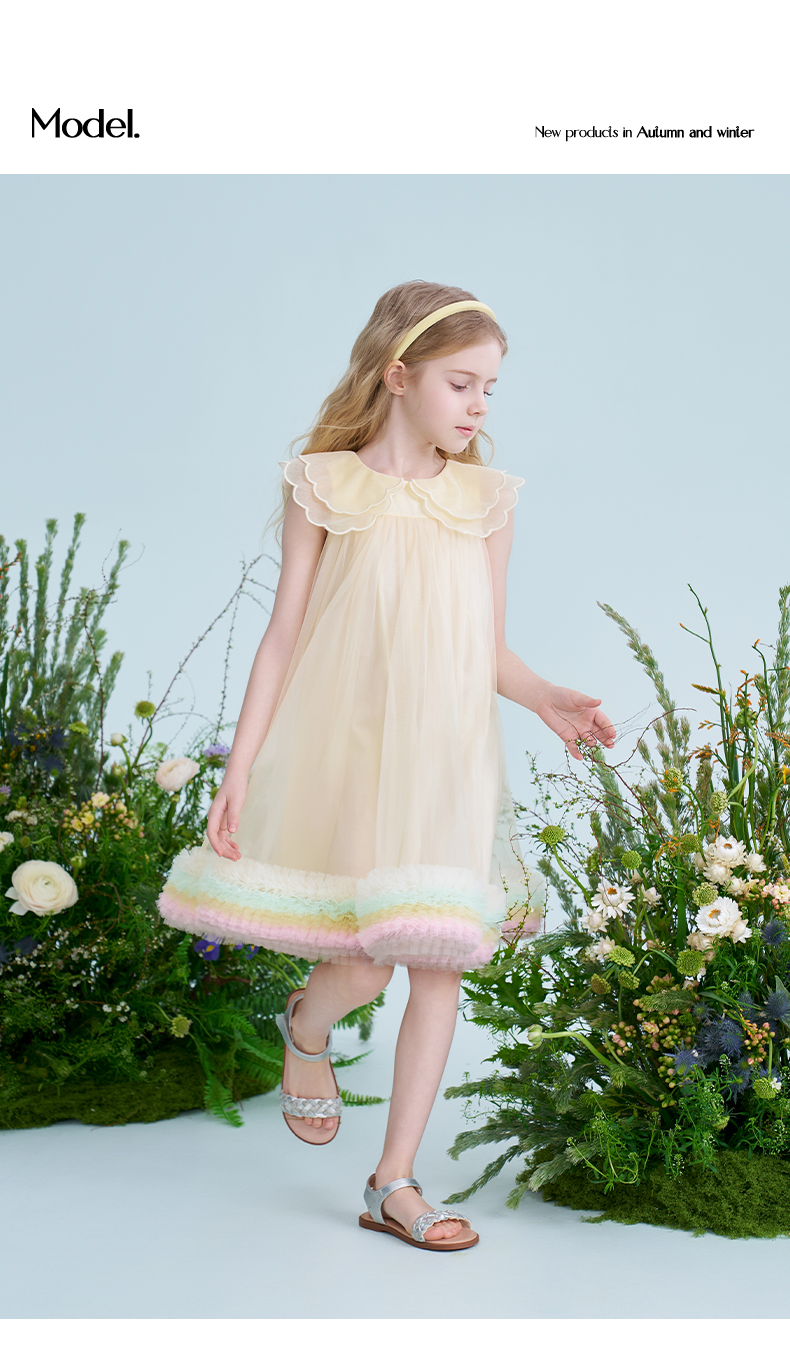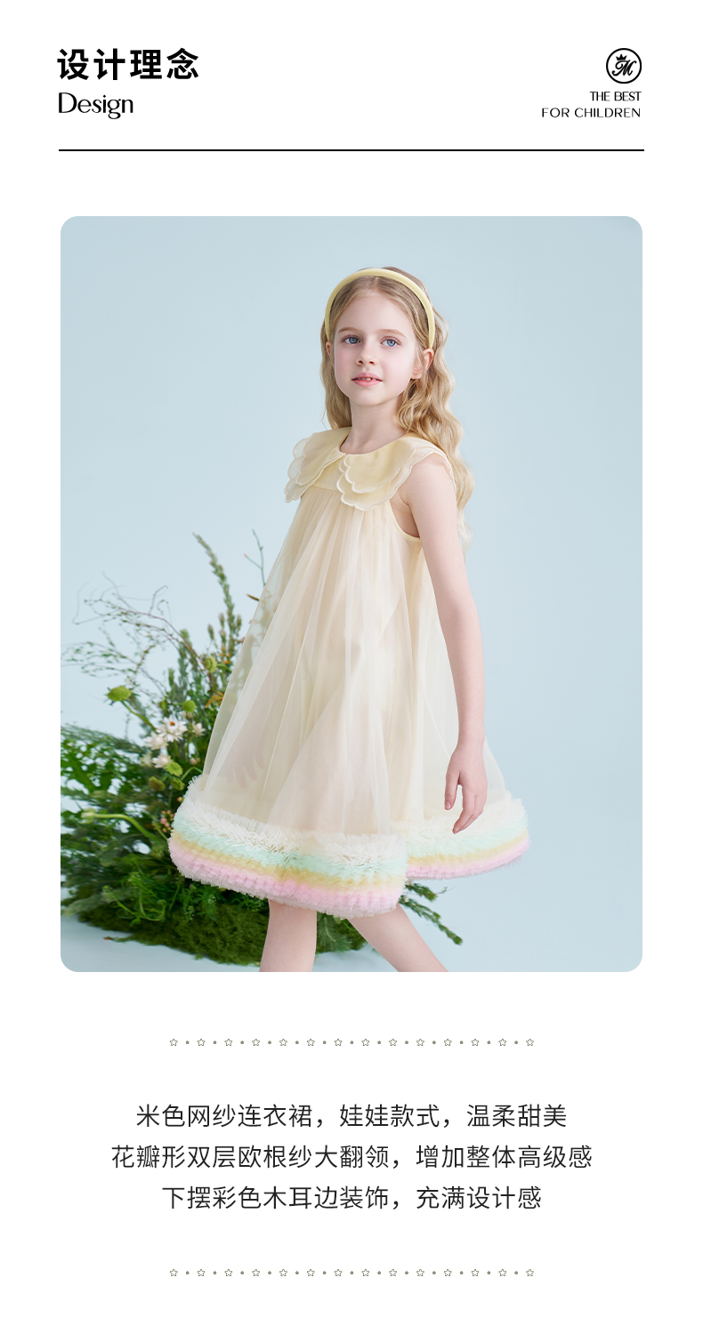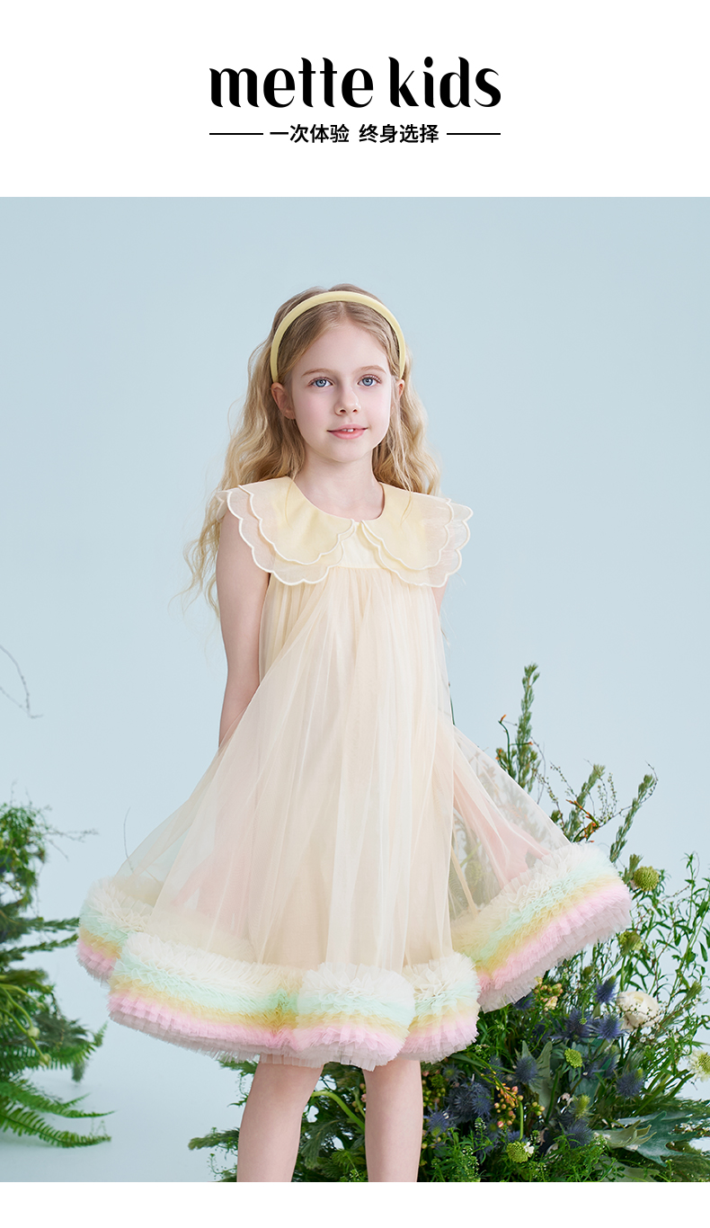 mettekids儿童连衣裙2025夏季新款女童礼服中大童网纱气质公主裙