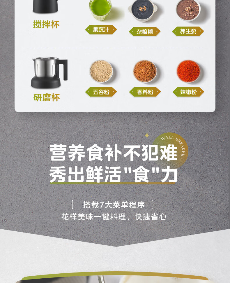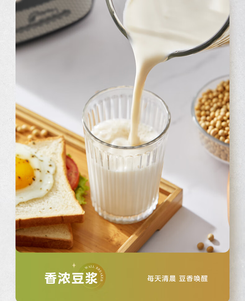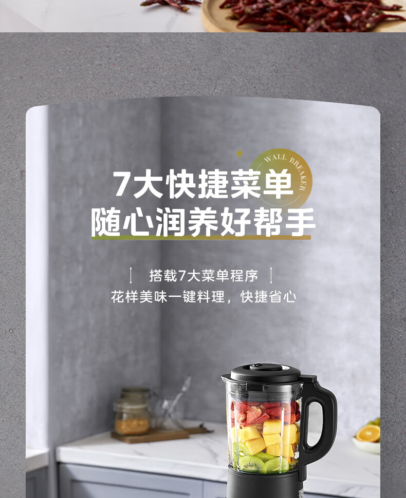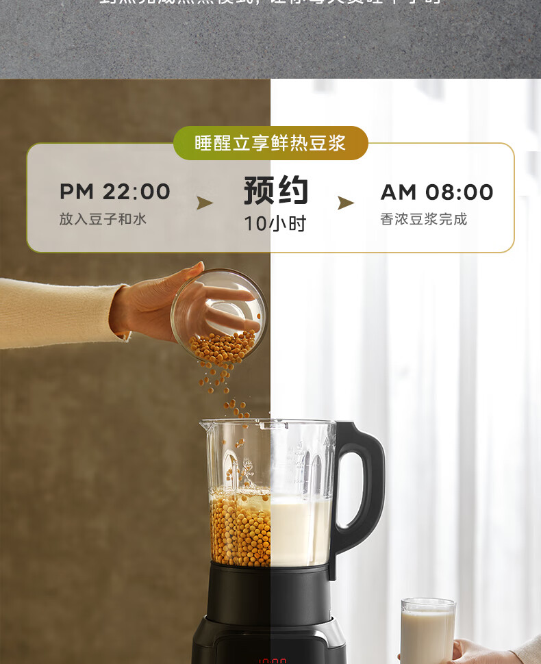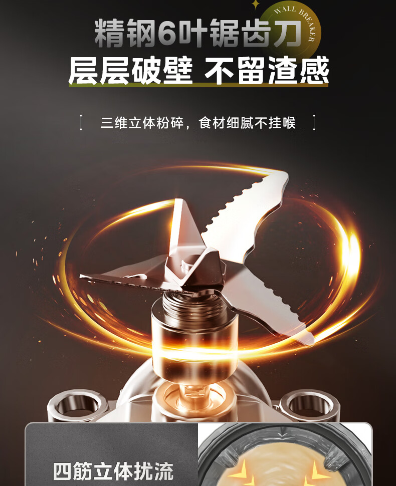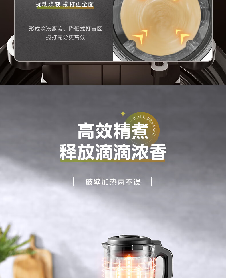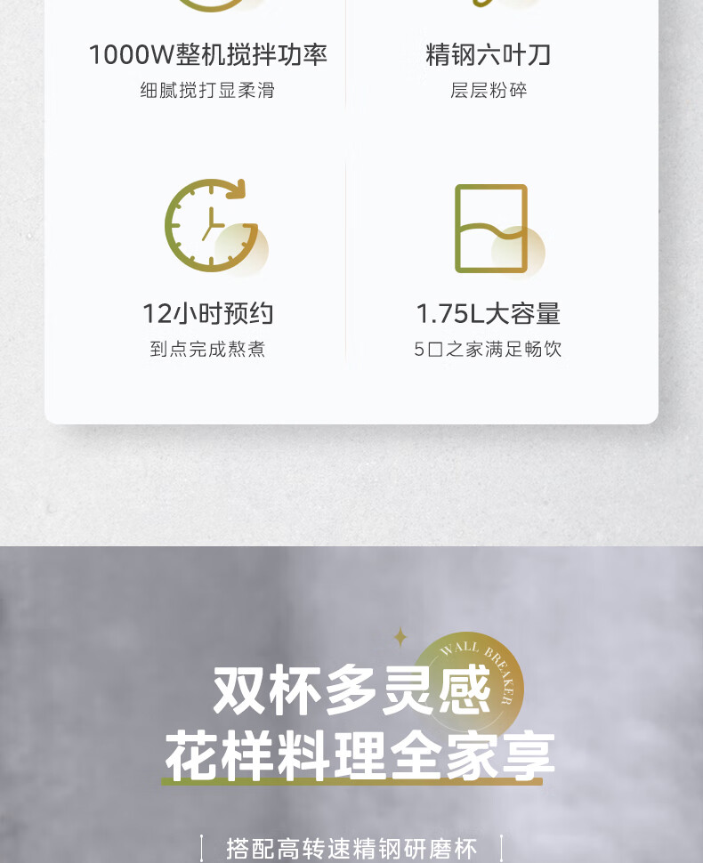 美的(Midea)破壁机料理机加热大功率豆浆研磨杯果汁双杯1000W烧汤奶昔BL1076高硼硅玻璃六页 黑色