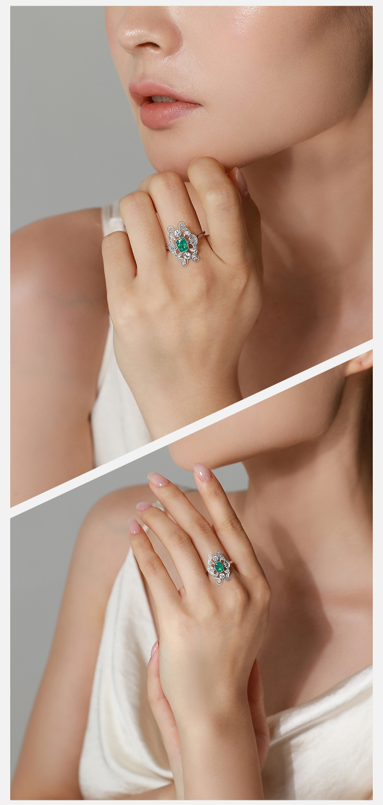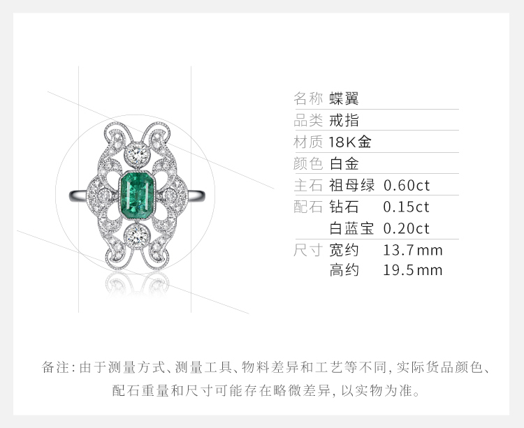 【蝶翼】JULEE JULEE茱俪珠宝 18K白金祖母绿钻石 白蓝宝戒指