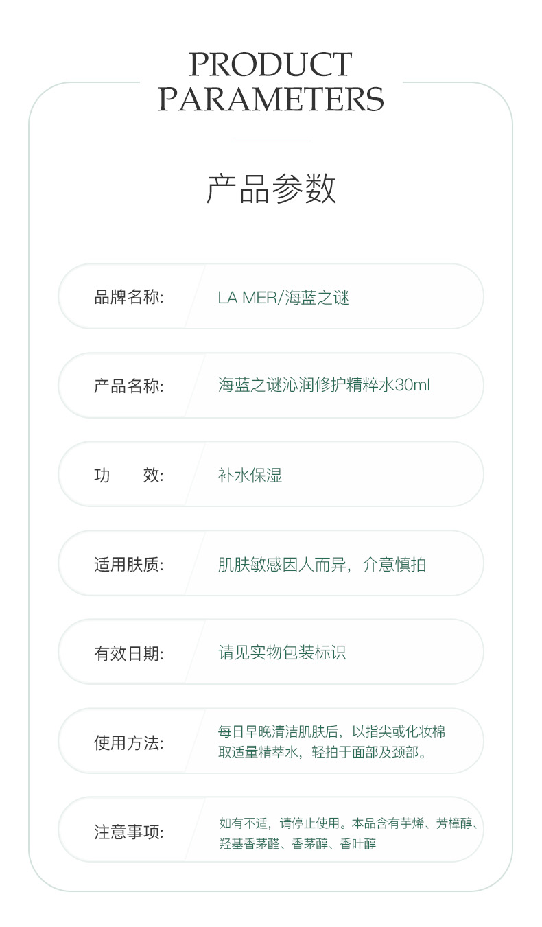 【小样】海蓝之谜沁润修护精萃水30ml/102341 紧致修护淡纹焕亮