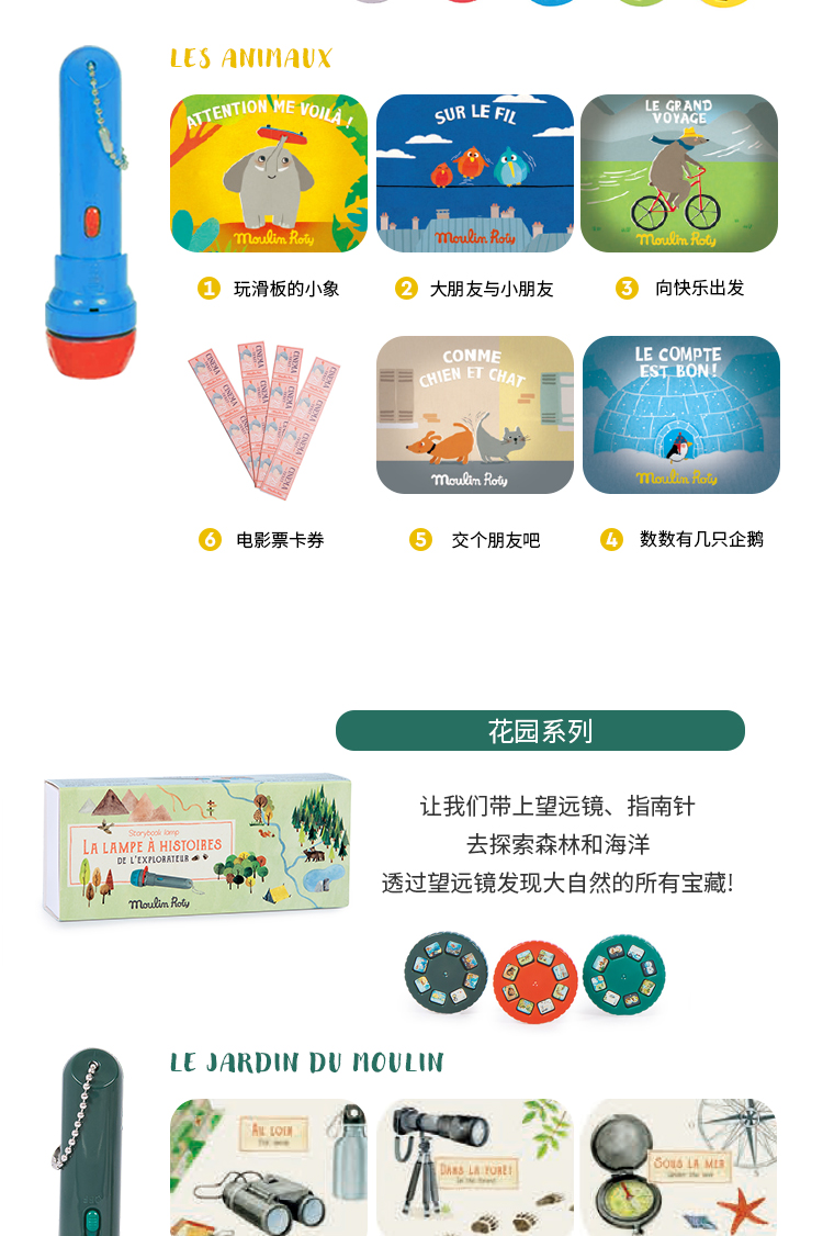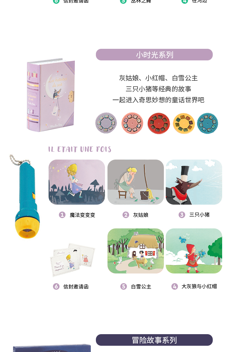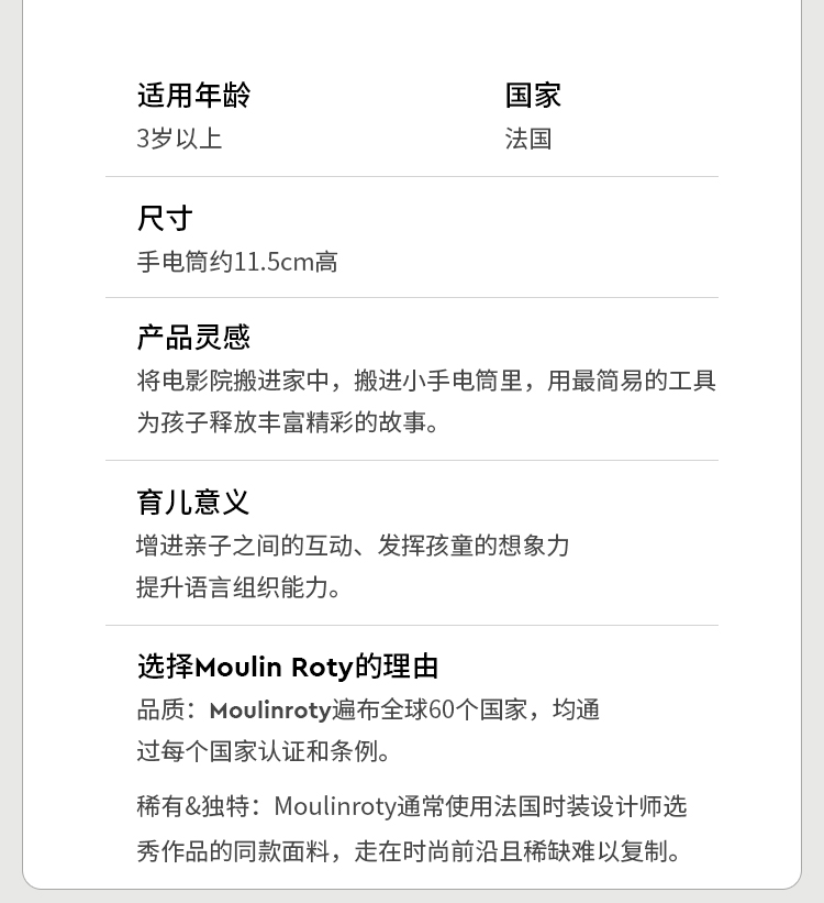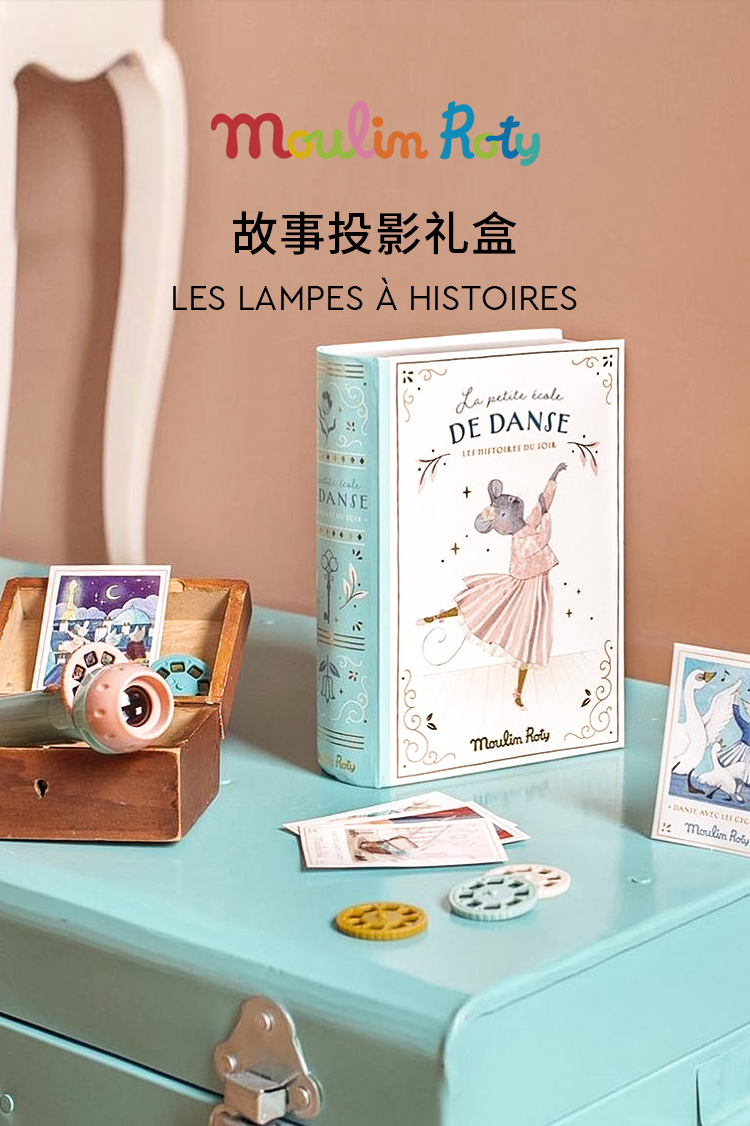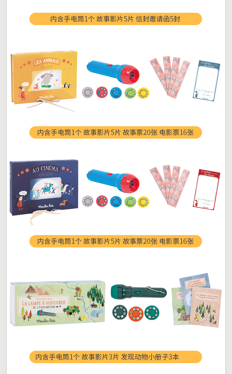 Moulin Roty 《小时光系列》故事 投影手电筒(礼盒版) 适合4岁以上 亲子互动 激发想象力 提升语言组织能力 法国品牌-711364