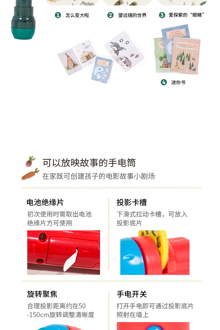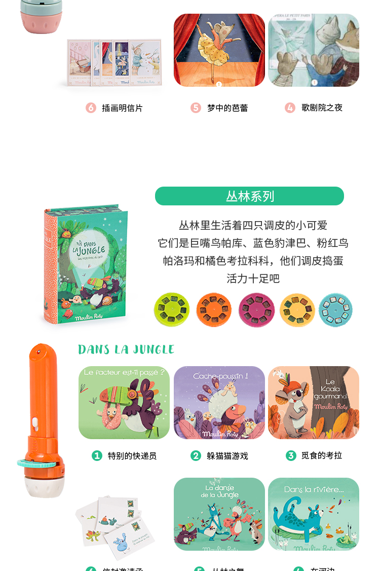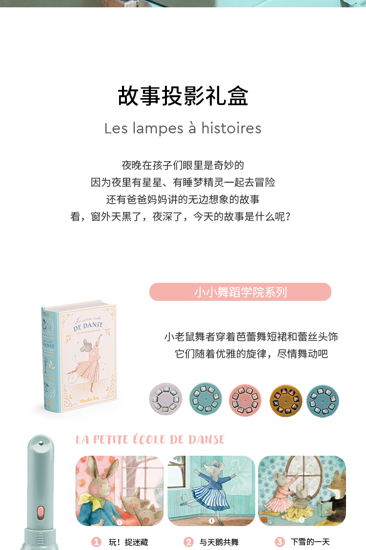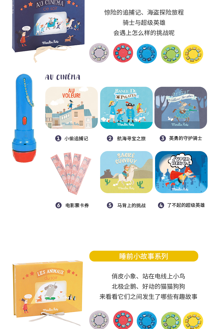 Moulin Roty 《小时光系列》故事 投影手电筒(礼盒版) 适合4岁以上 亲子互动 激发想象力 提升语言组织能力 法国品牌-711364