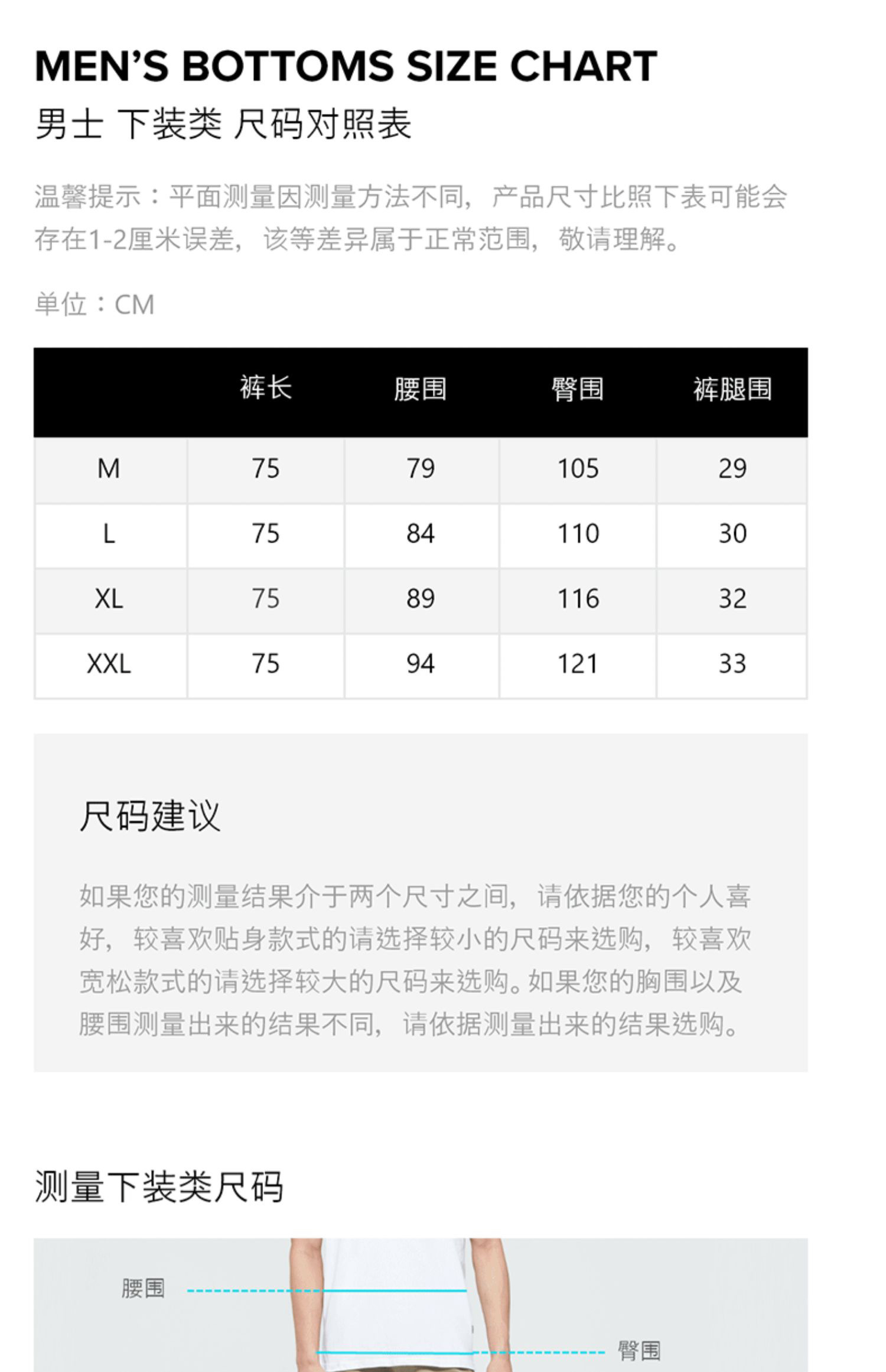 M:腰围平铺80拉伸90,裤长95