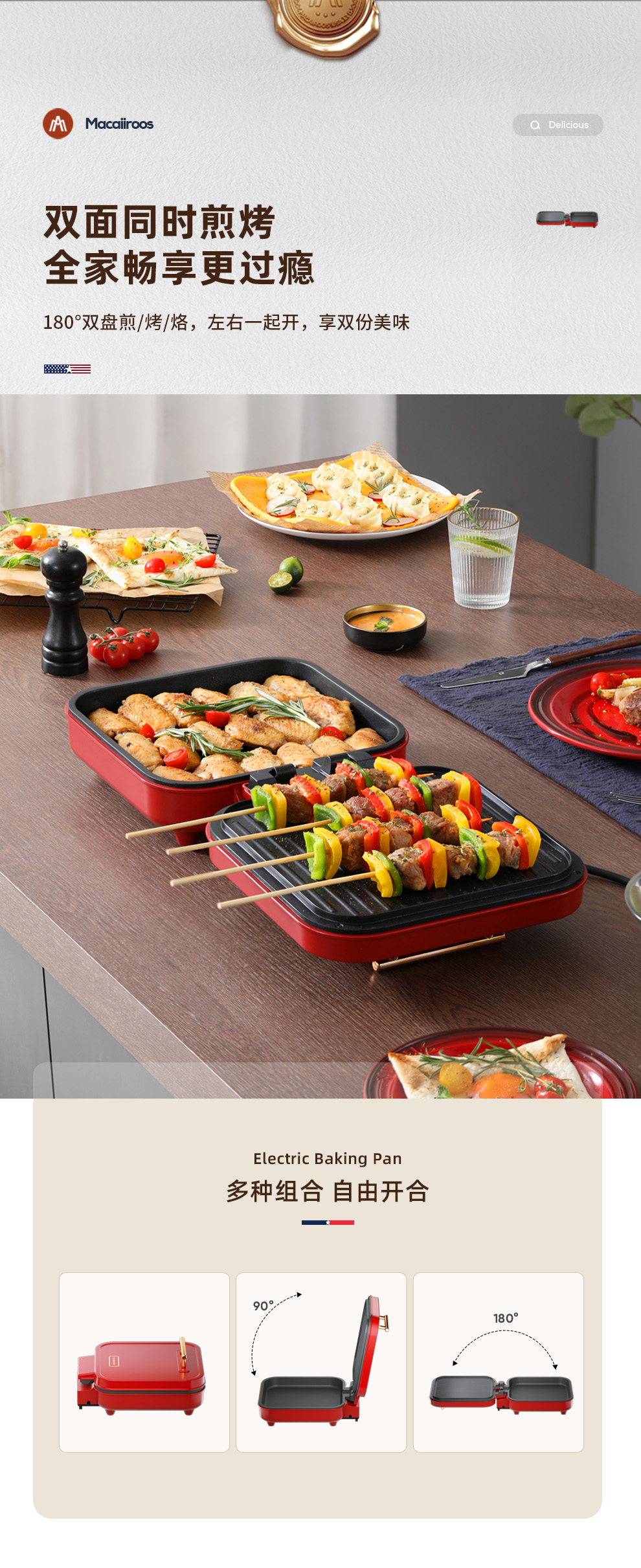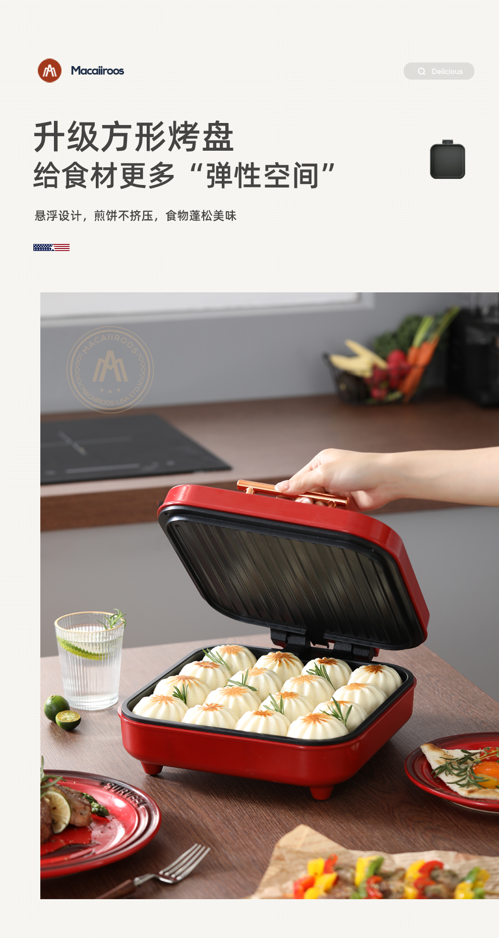 迈卡罗 (MACAIIROOS)多功能电饼铛前煎烤双面加热方盘大火力煎饼锅三明治早餐机电饼铛 MC-BD122