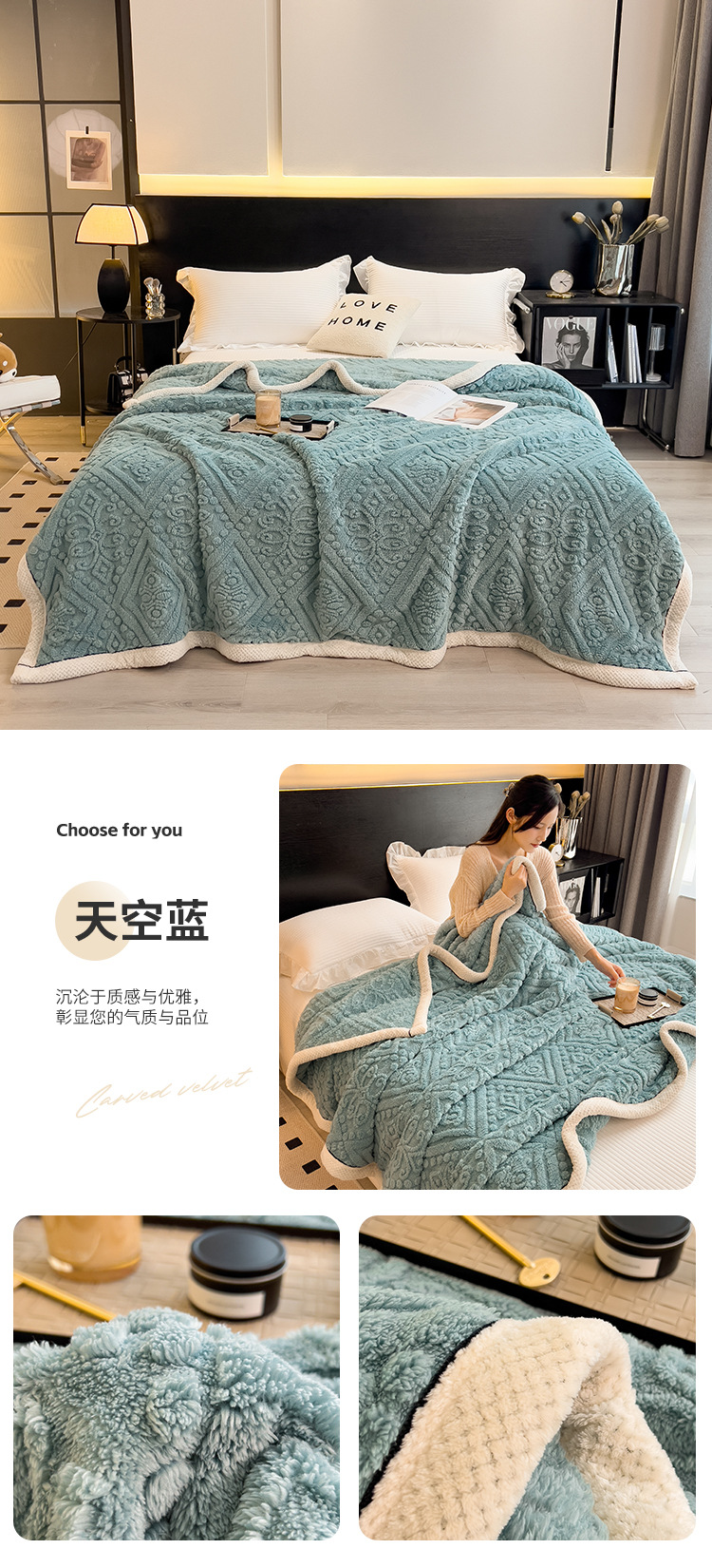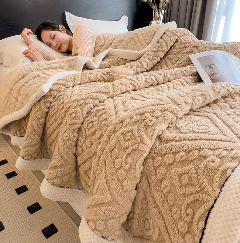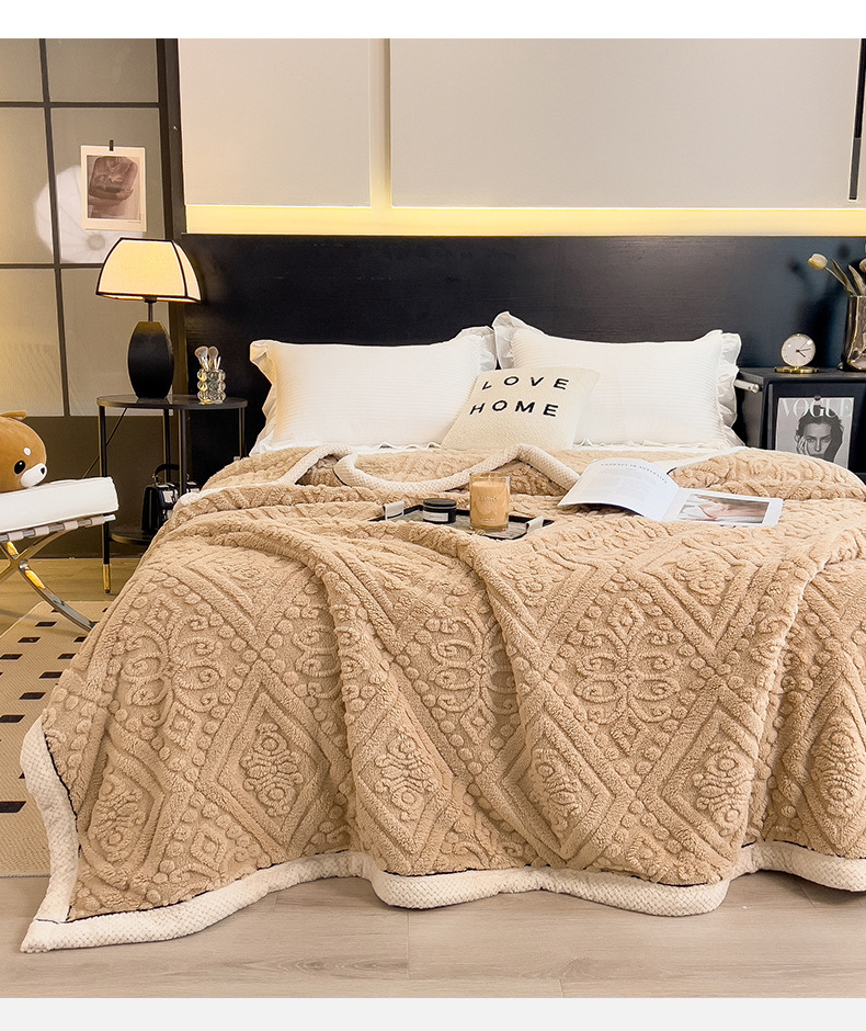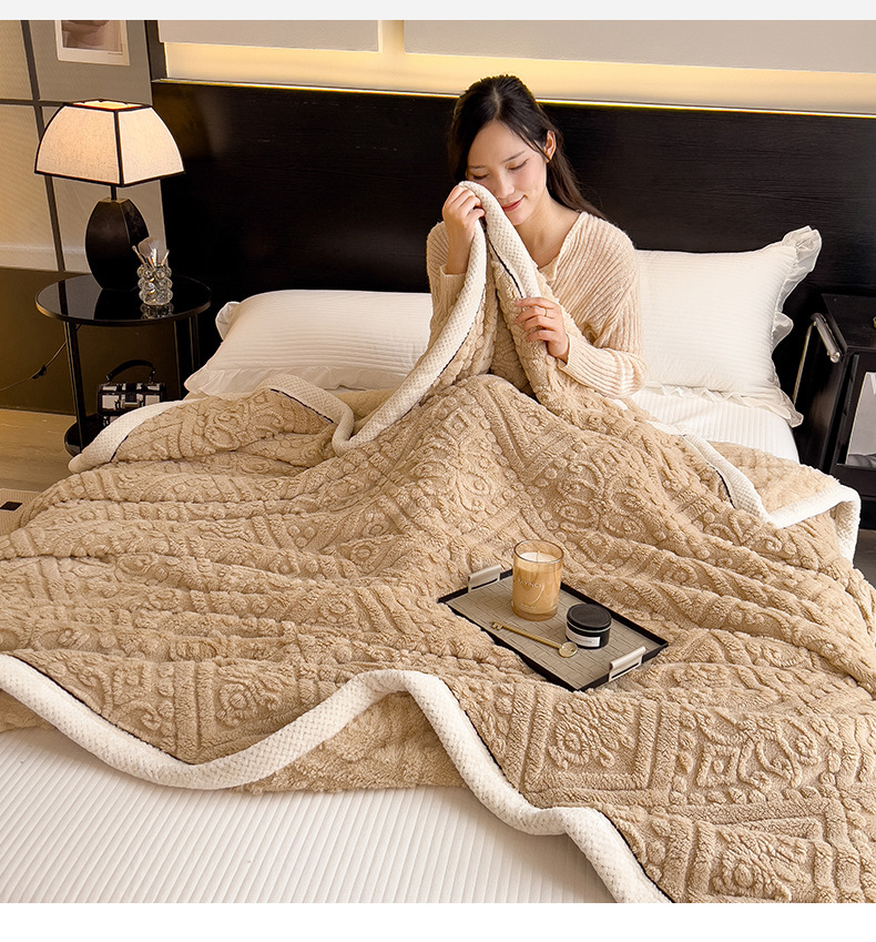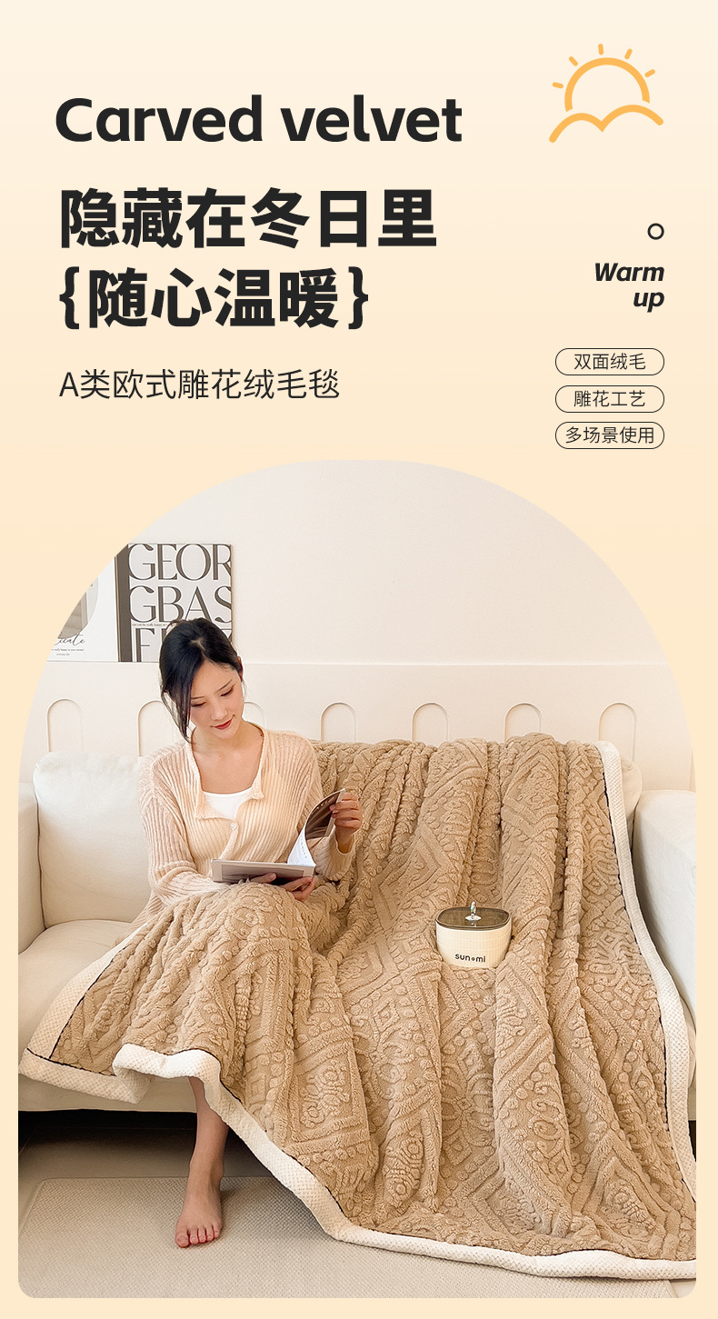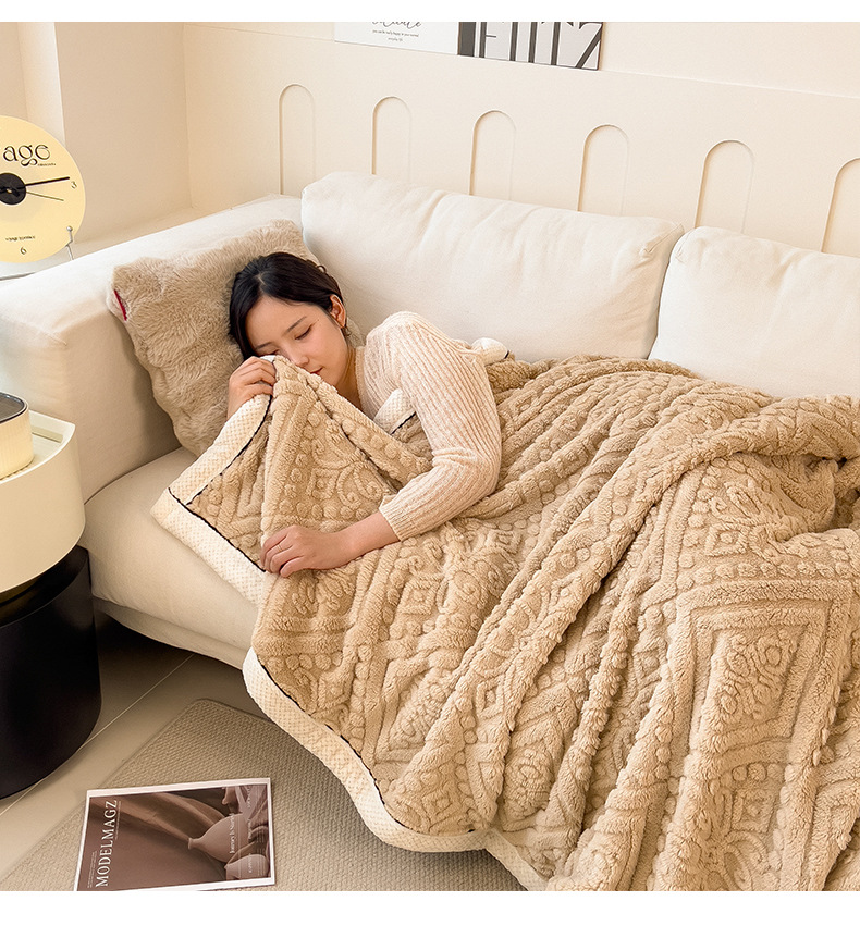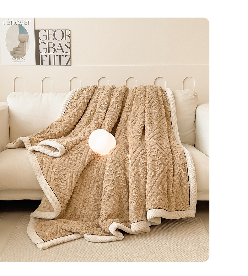 冬季【雕花绒毛包边毯被子】加厚盖毯沙发午睡空调毯 办公室居家单人小毯