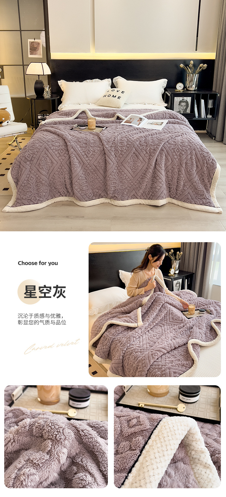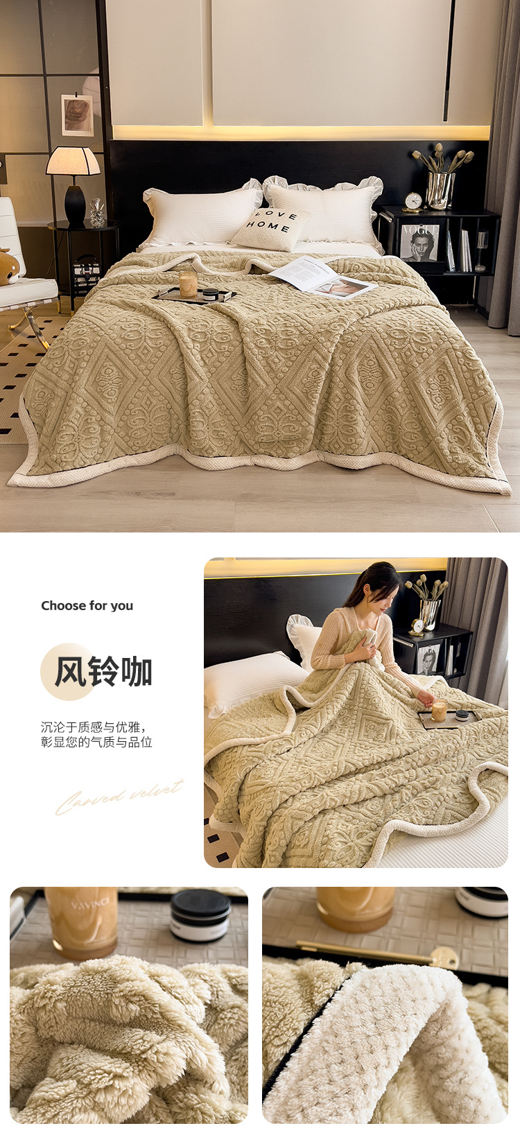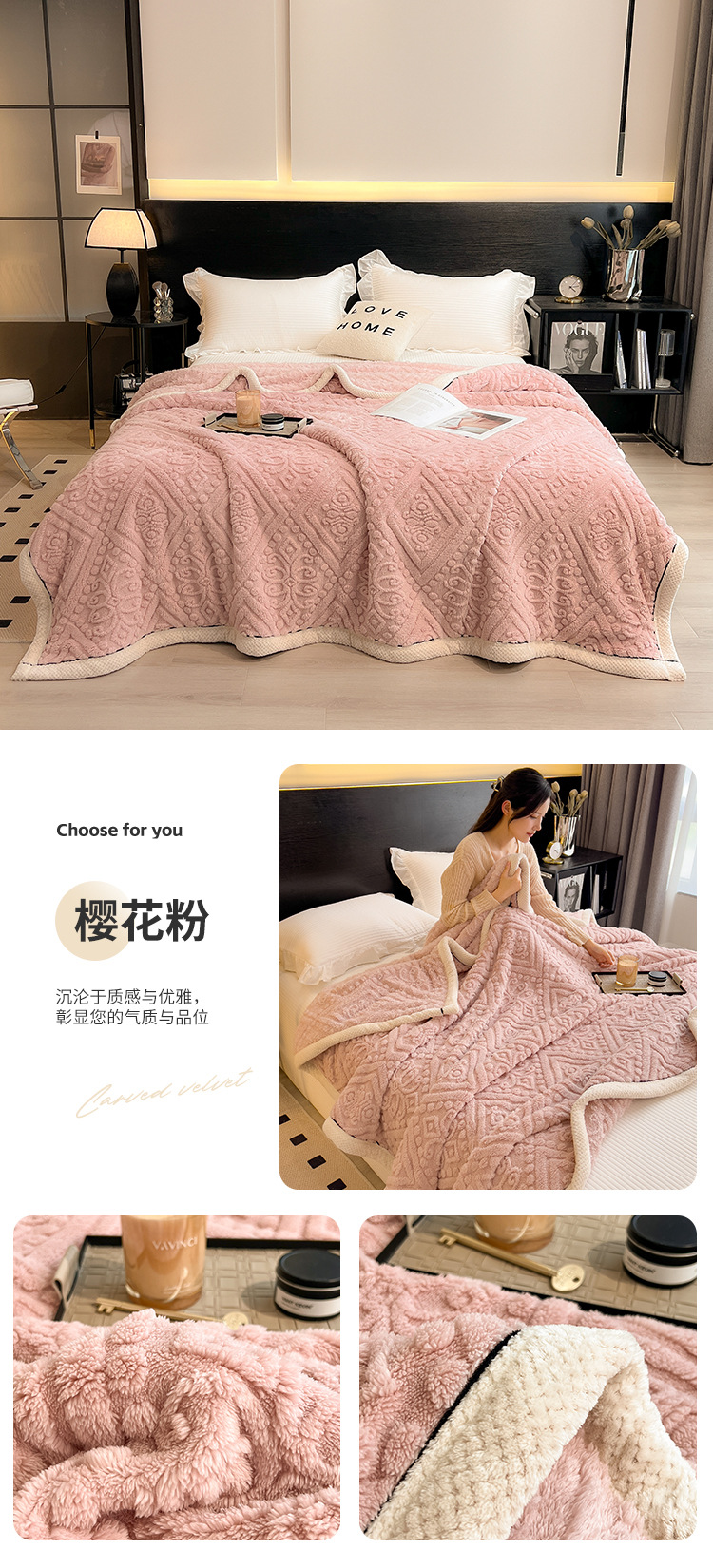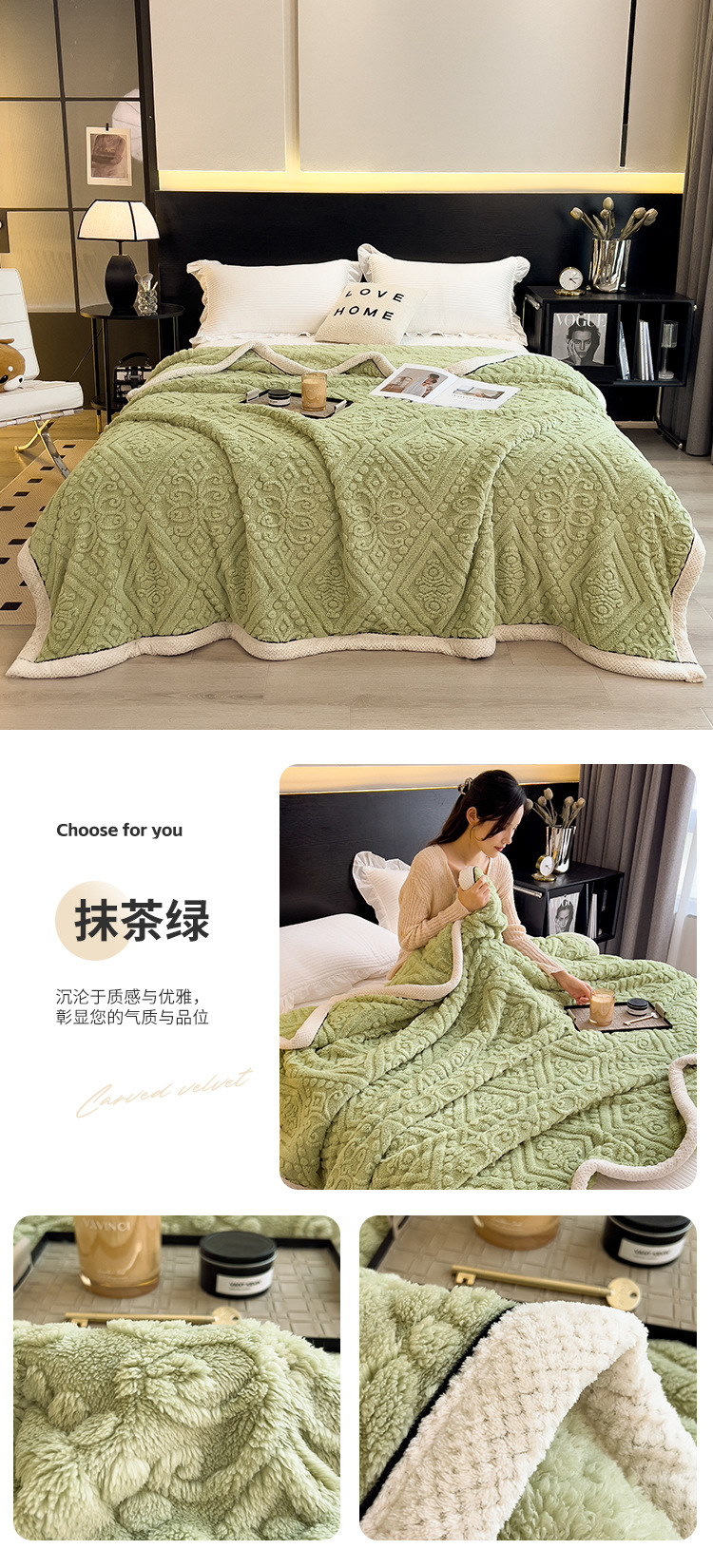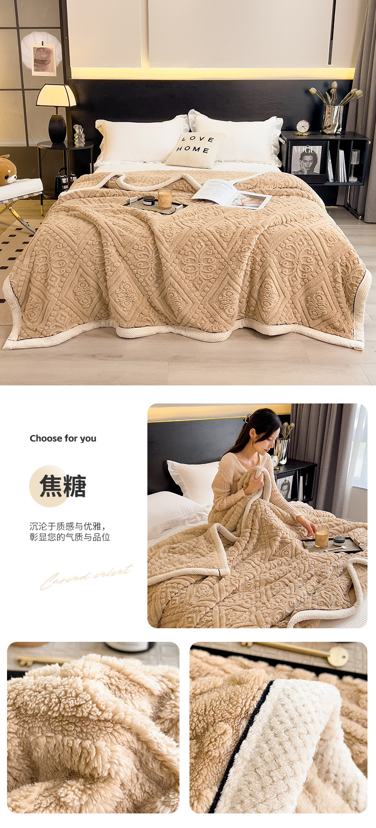 冬季【雕花绒毛包边毯被子】加厚盖毯沙发午睡空调毯 办公室居家单人小毯
