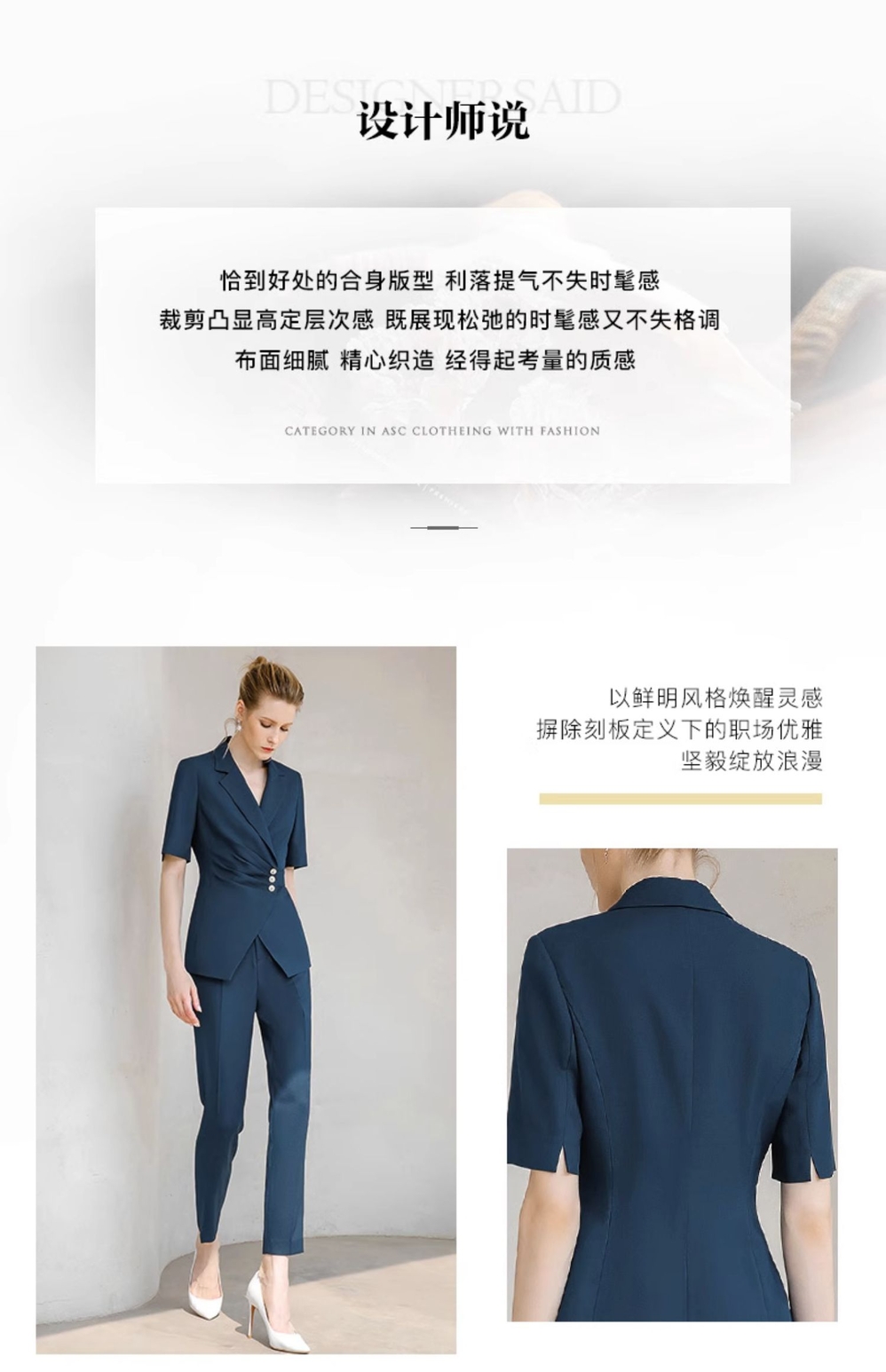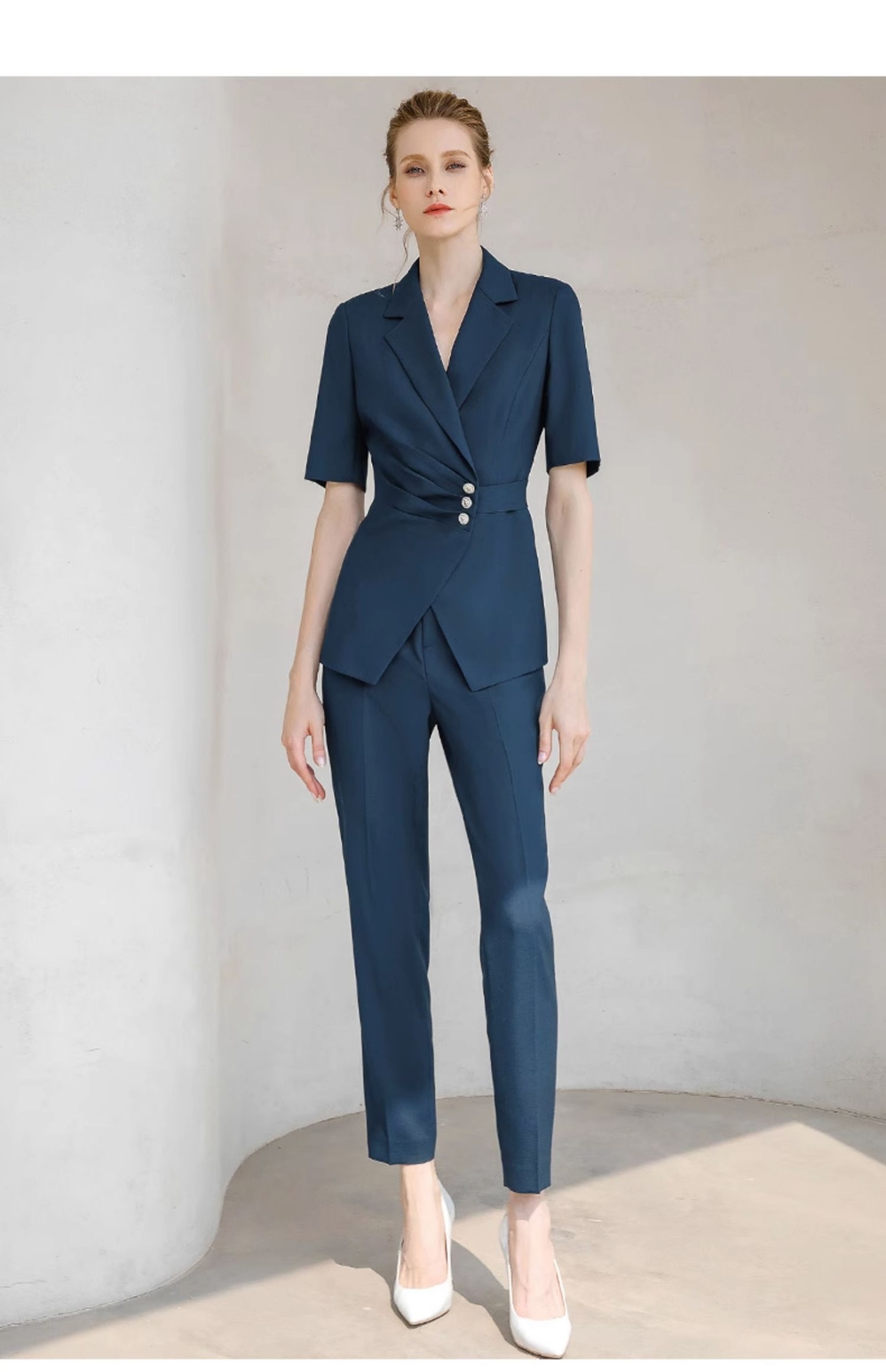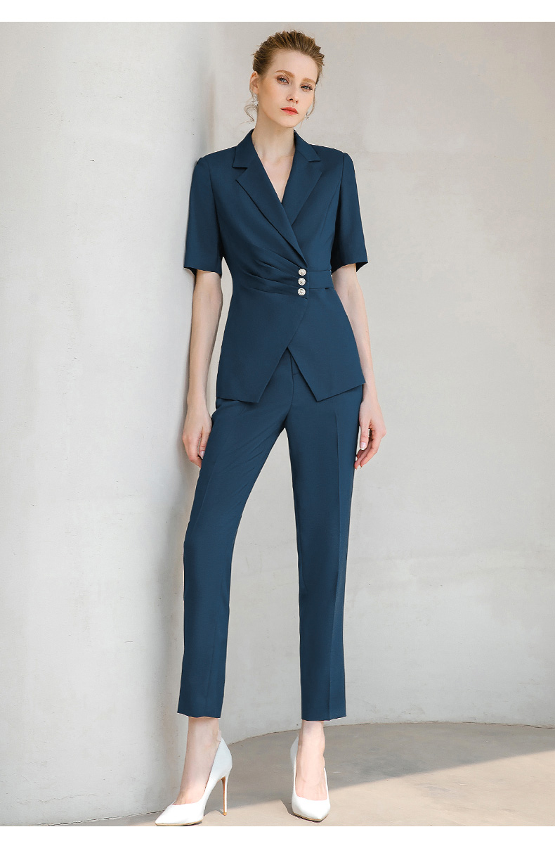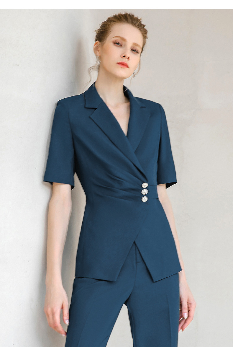 IWY/高端孔雀蓝色西服短袖女西装套装通勤高级通勤设计感ol工作服232020CP1