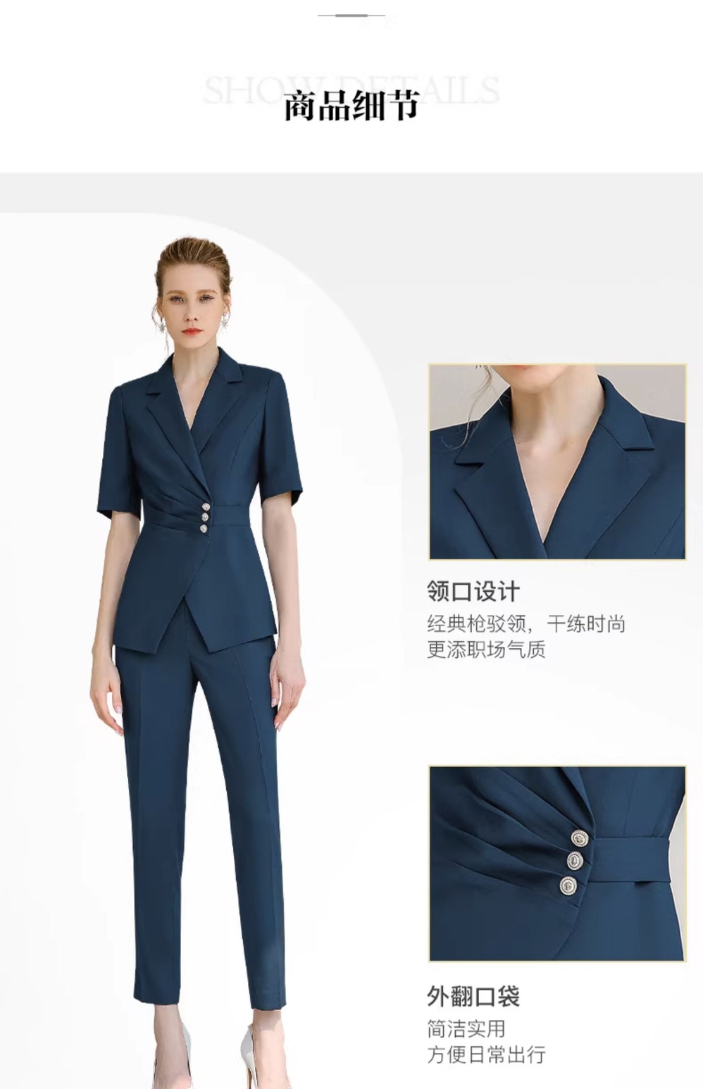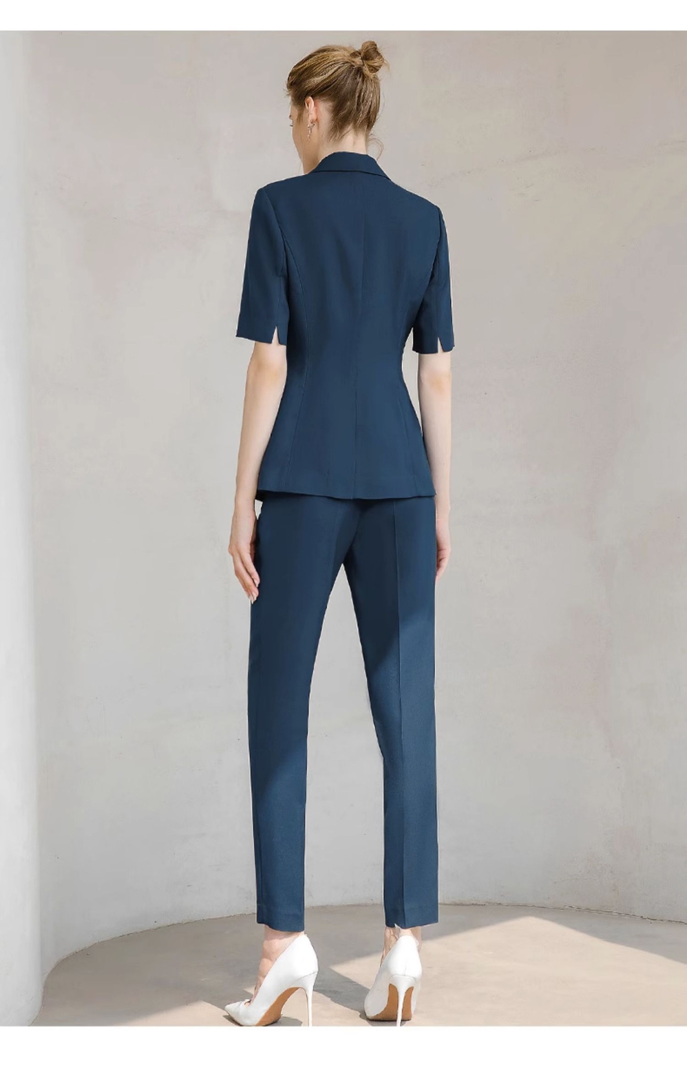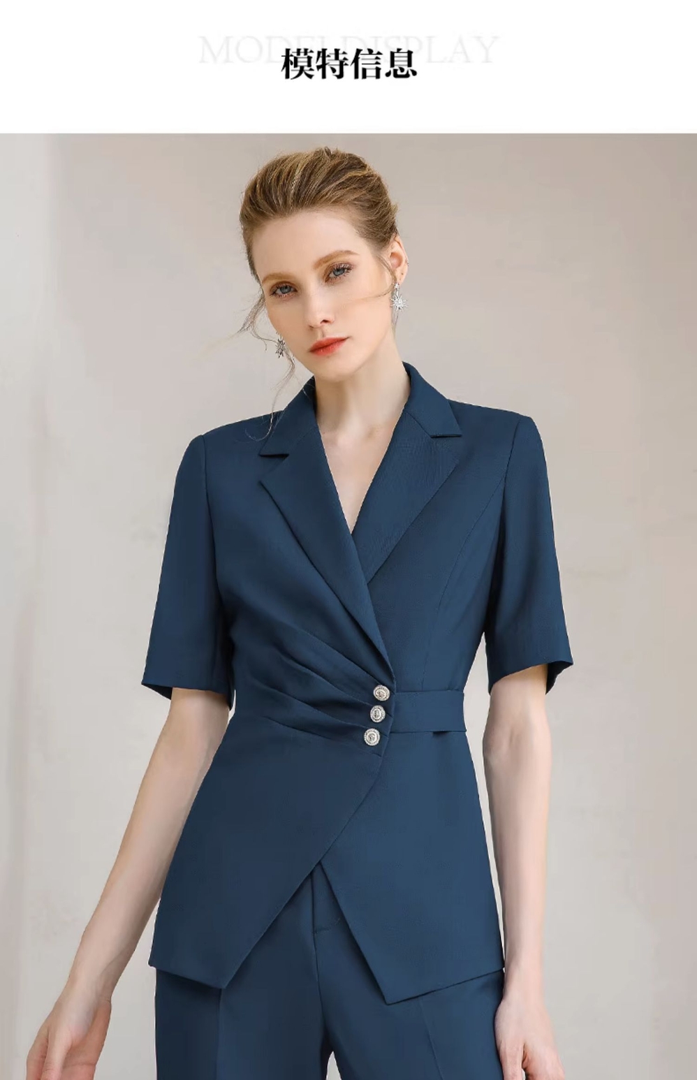 IWY/高端孔雀蓝色西服短袖女西装套装通勤高级通勤设计感ol工作服232020CP1