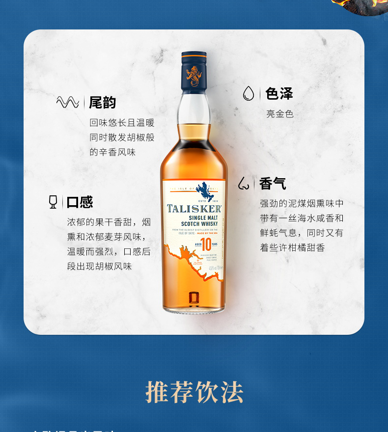 【单瓶】泰斯卡10年单一麦芽苏格兰威士忌 700ml 45.8%vol 英国原瓶进口
