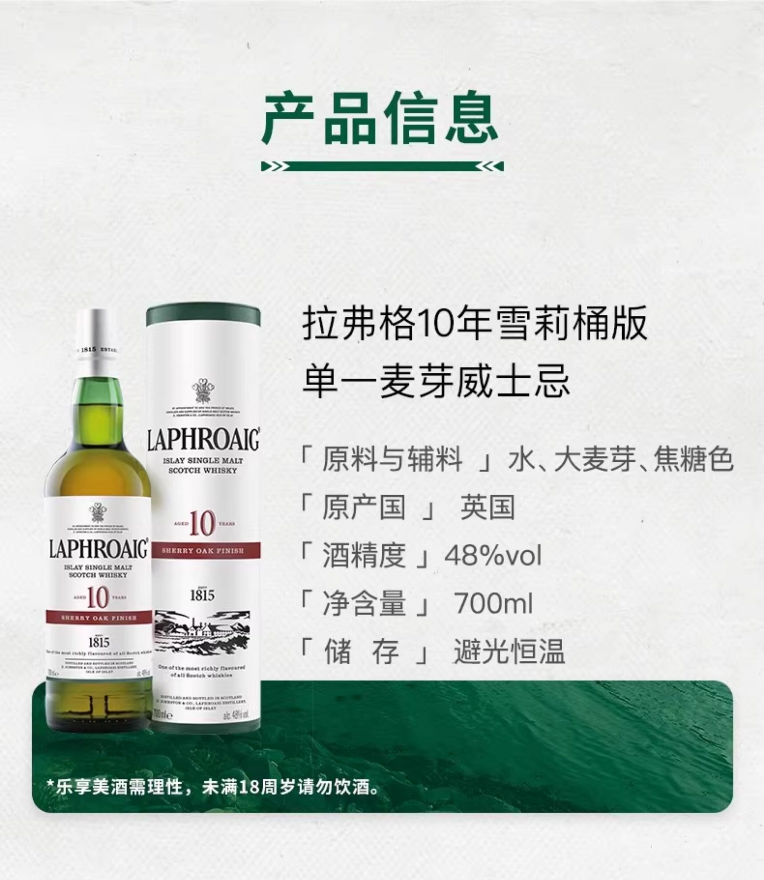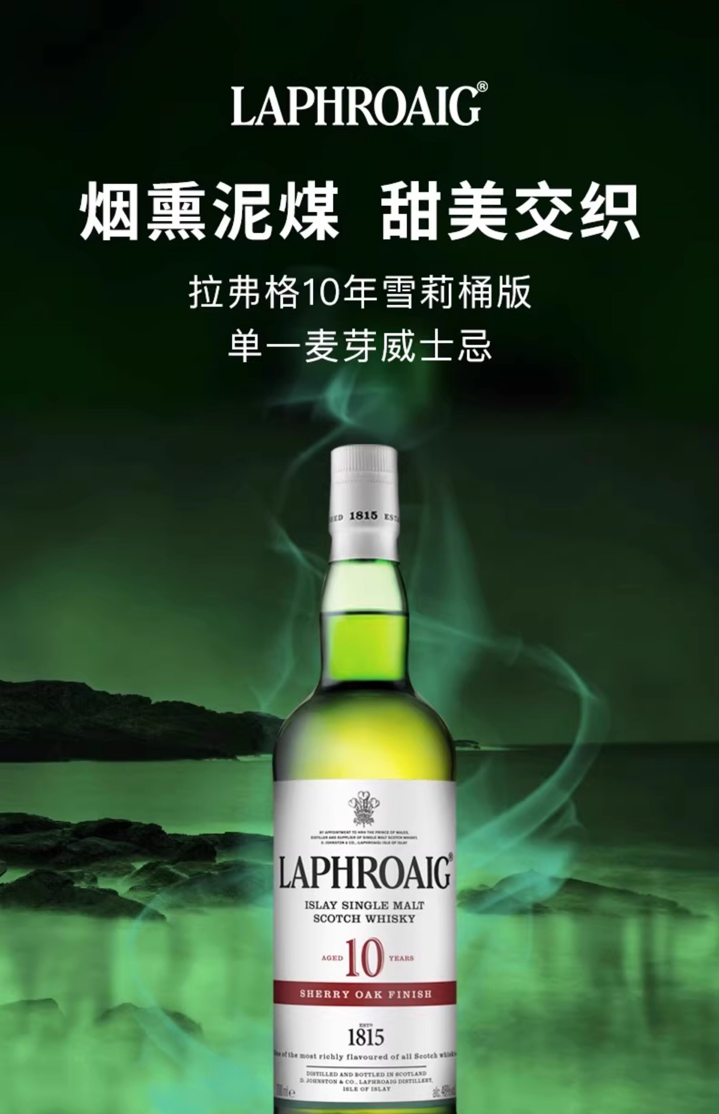 拉弗格(Laphroaig)10年雪莉桶单一麦芽苏格兰威士忌(新包装)