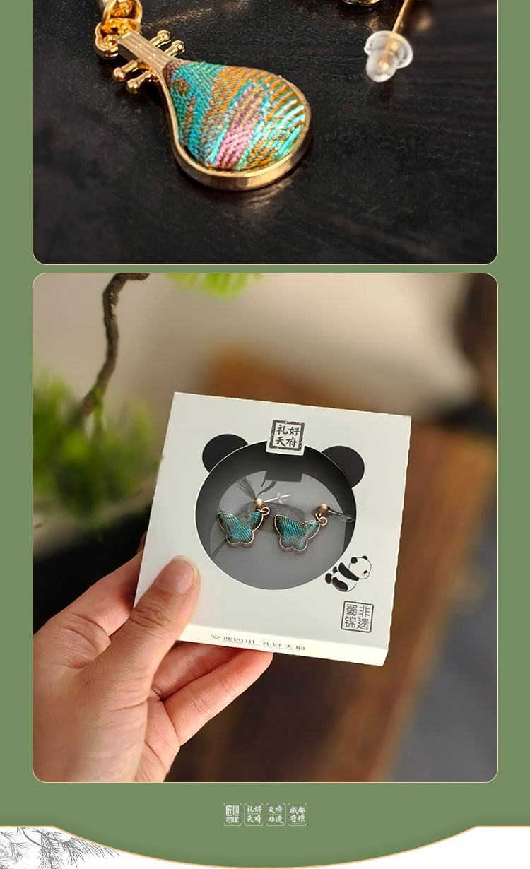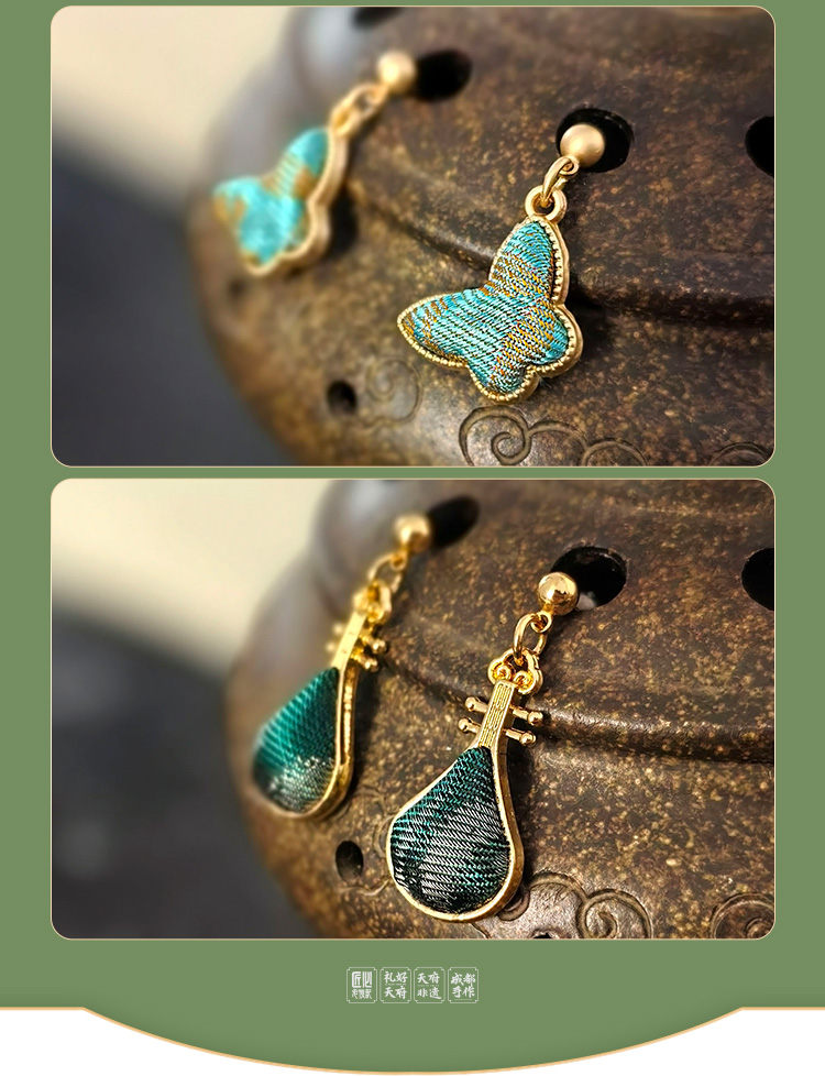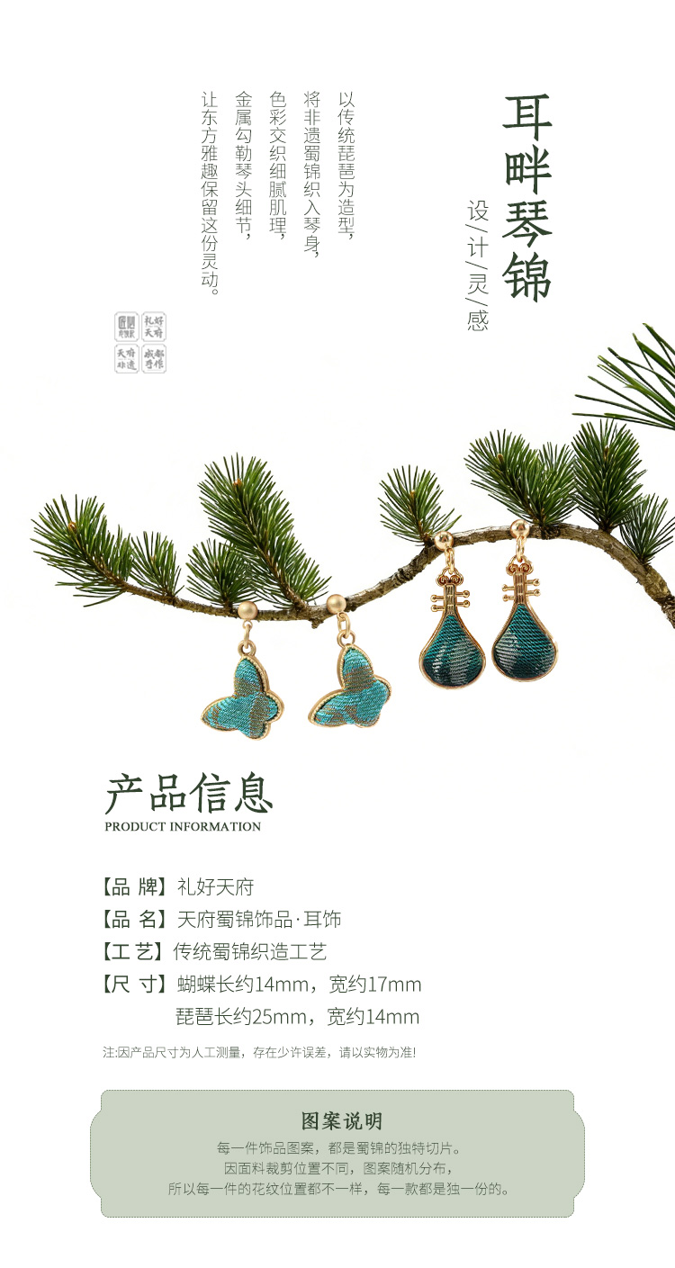 【蜀锦饰品:耳饰】礼好天府非遗蜀锦耳环 雅韵琵琶/锦蝶翩翩多款可选 刺绣国风配饰 中国特色礼品 日常百搭耳钉耳饰 中国风特色礼物节日伴手礼
