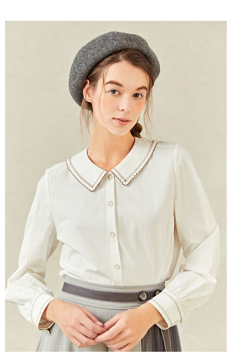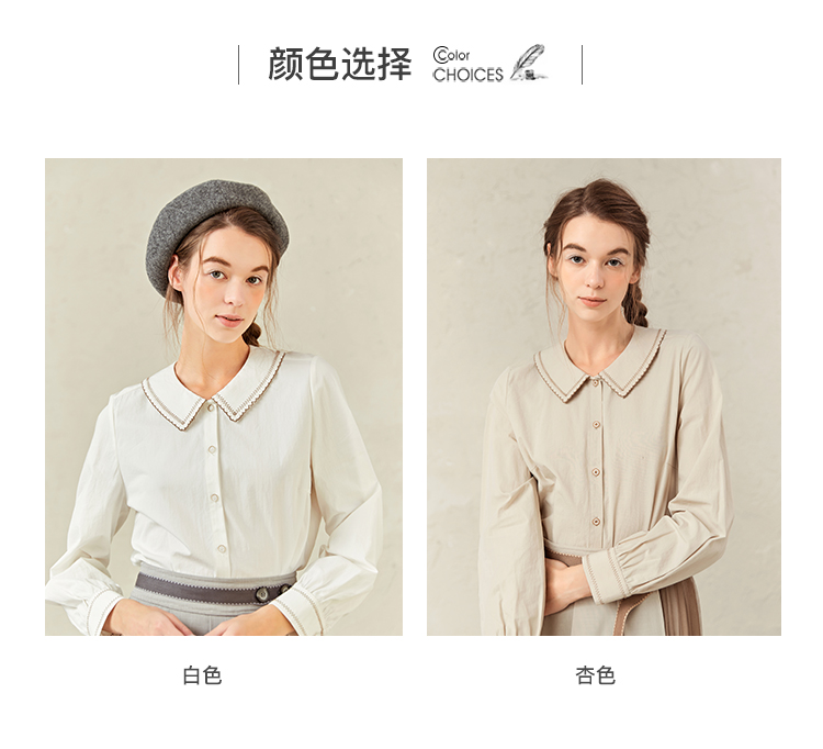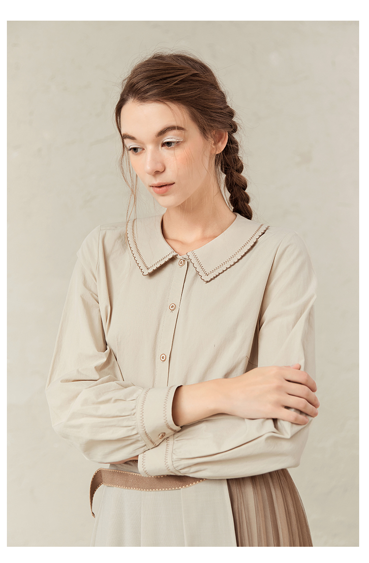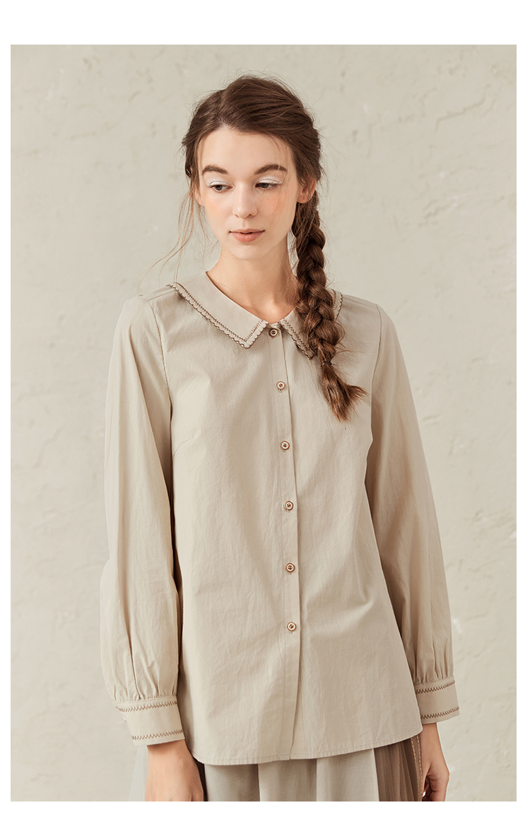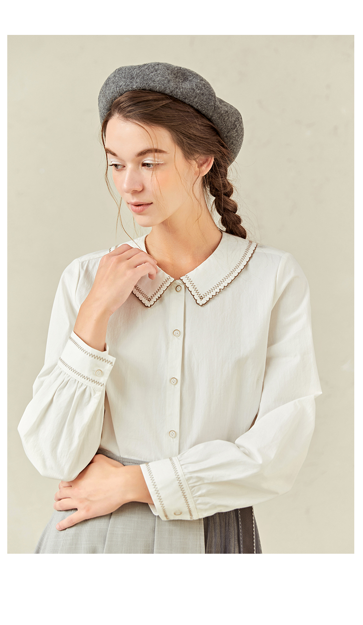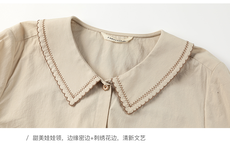 Famecoco范可儿灯笼袖女上衣春装娃娃领衬衫F221BA012