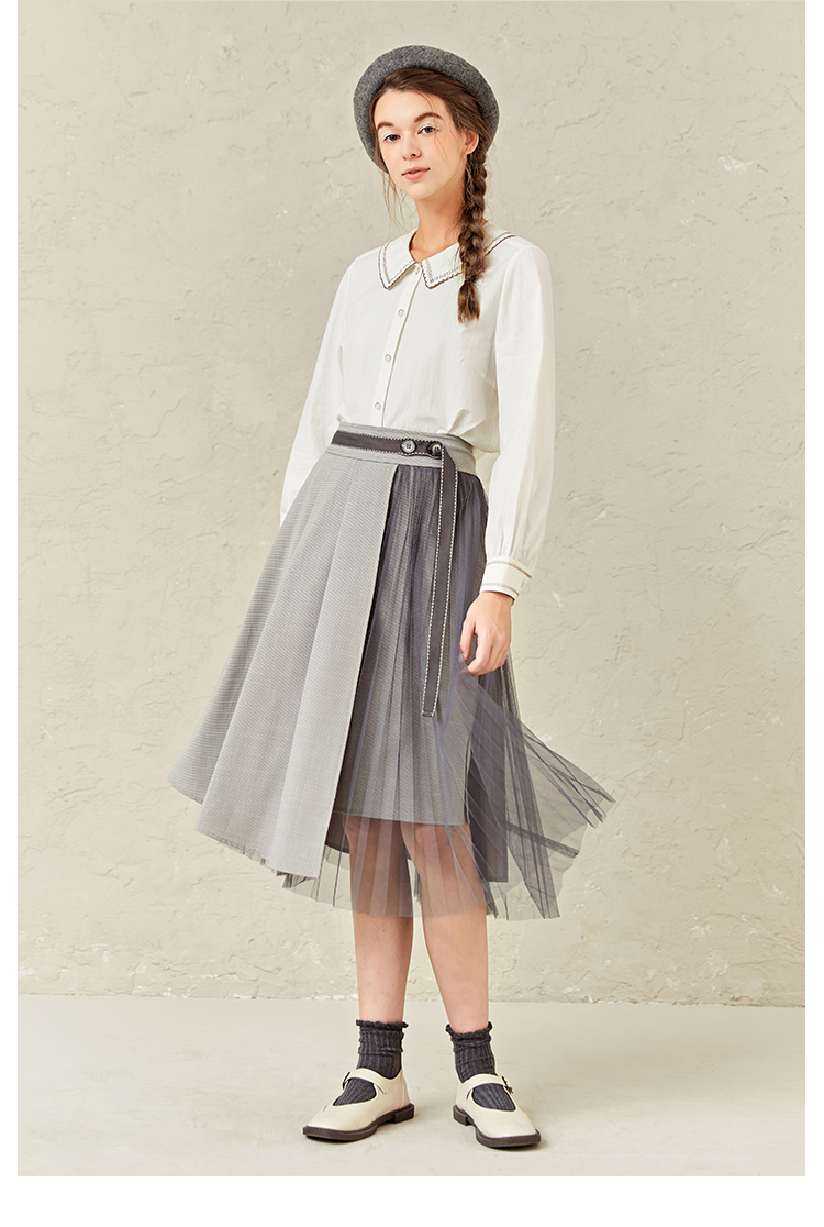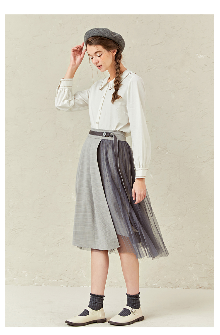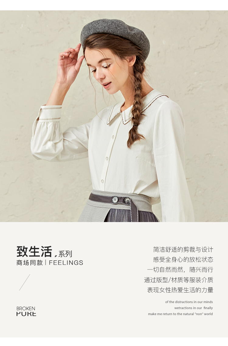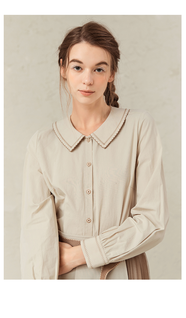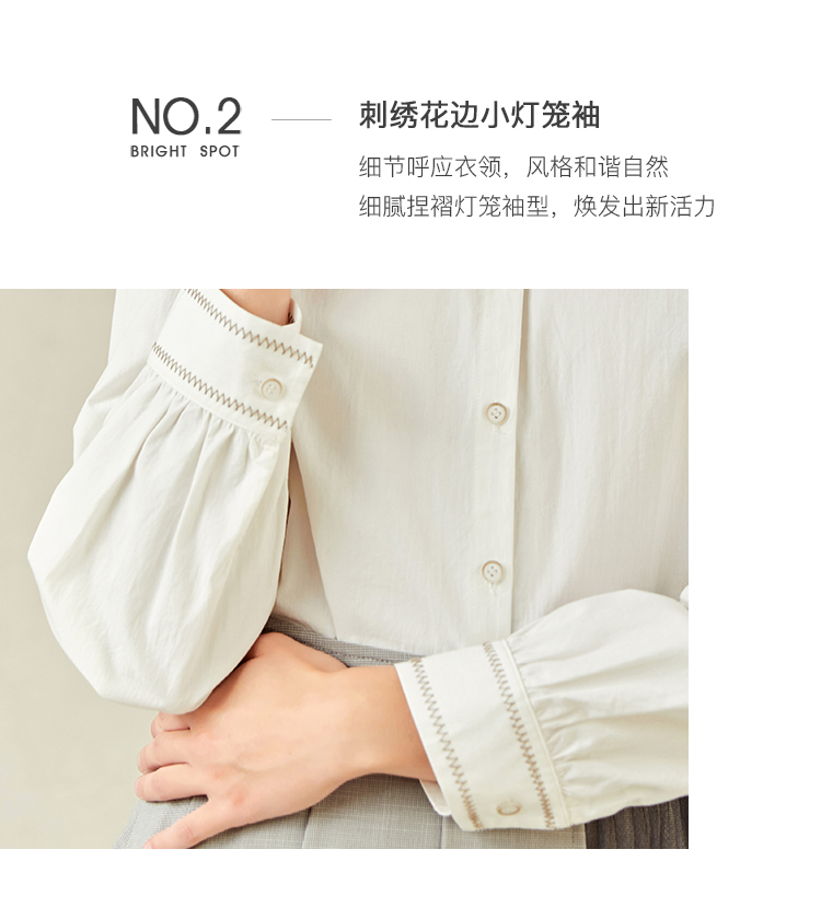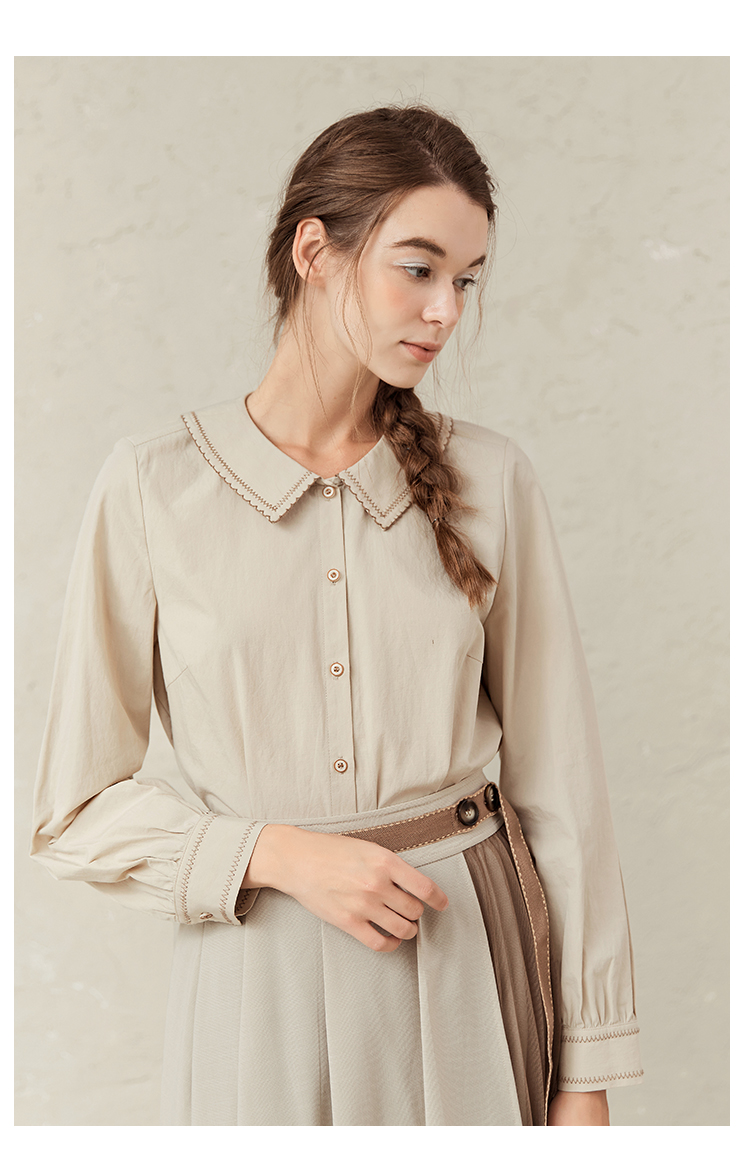 Famecoco范可儿灯笼袖女上衣春装娃娃领衬衫F221BA012