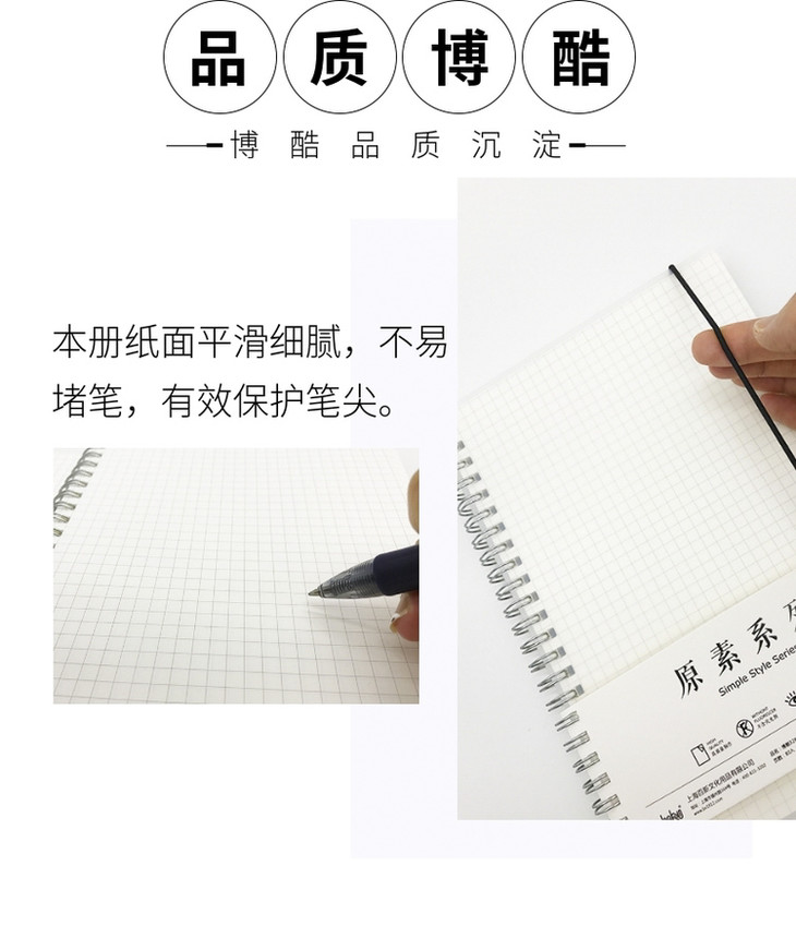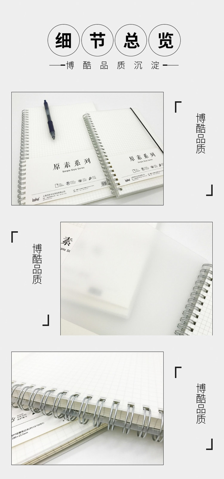 博酷80入方眼格/横线/空白PP双圈笔记本