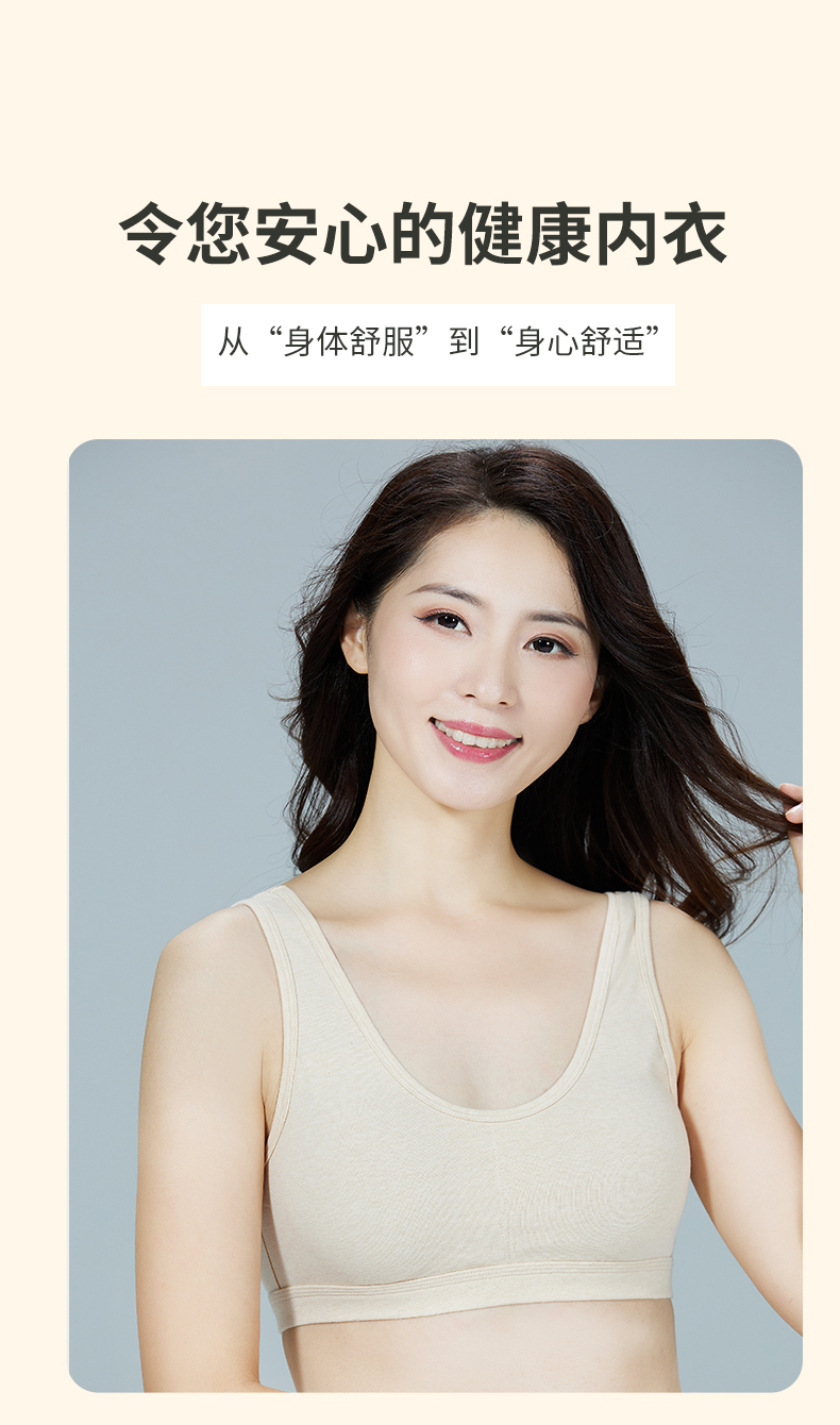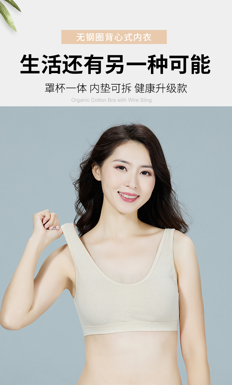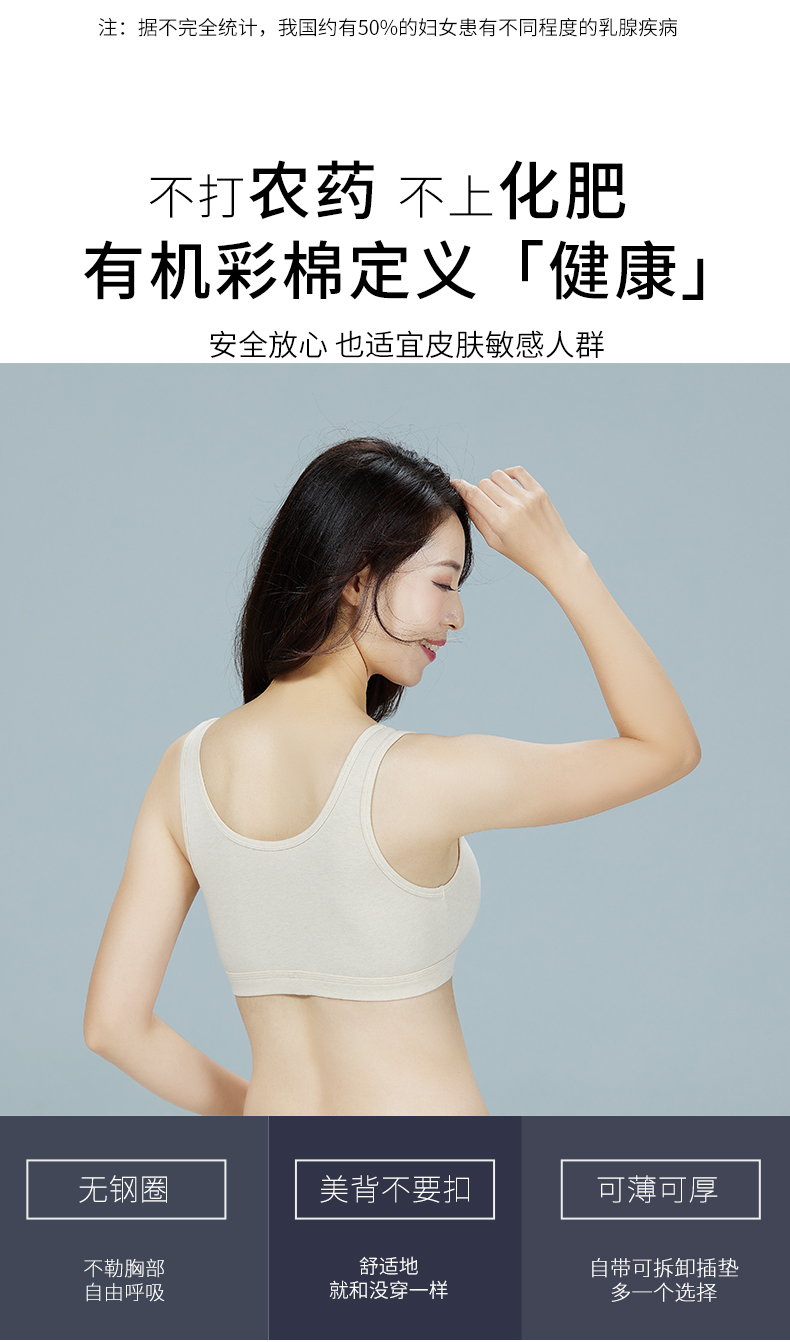 有机彩棉 纯棉里料 背心式内衣 美背运动吊带文胸,